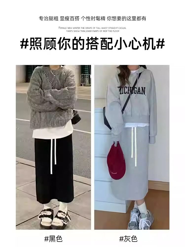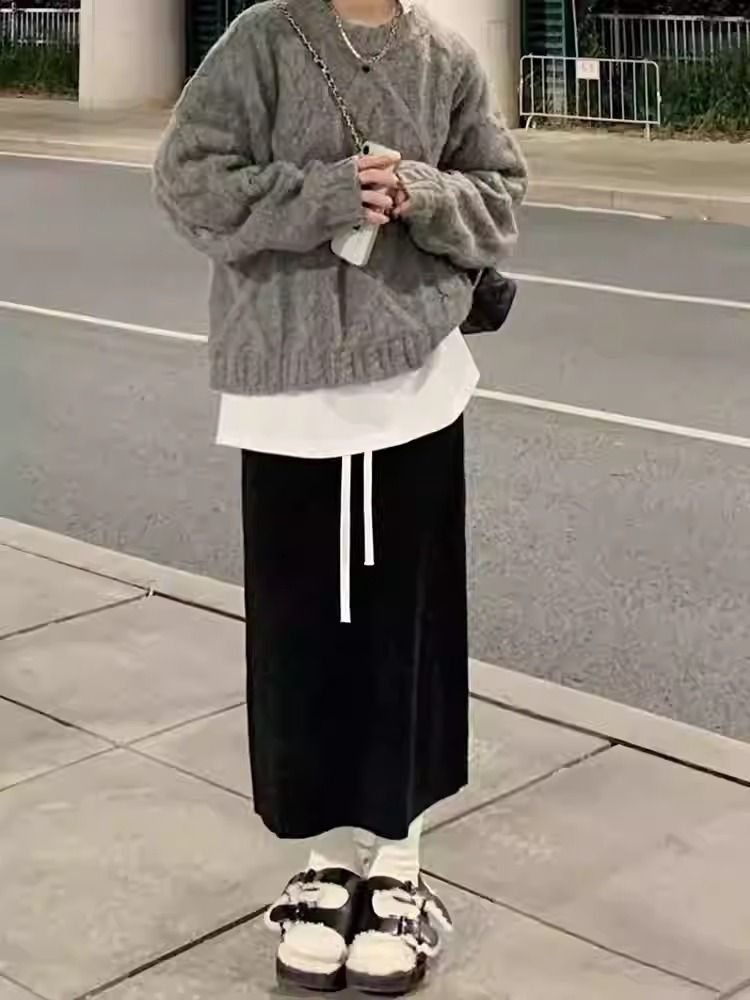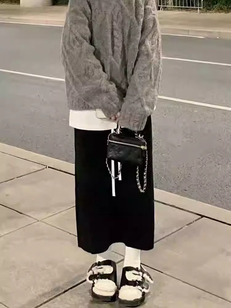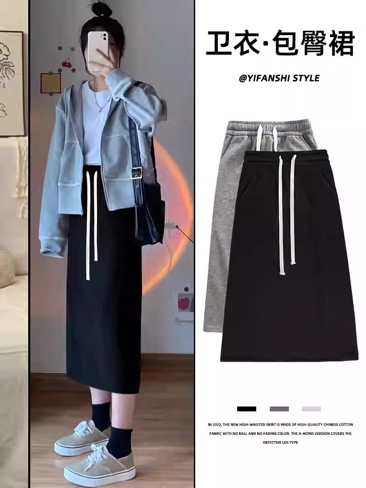 纯棉华棉复合 秋装半身裙女开叉显瘦显高裙子女口袋