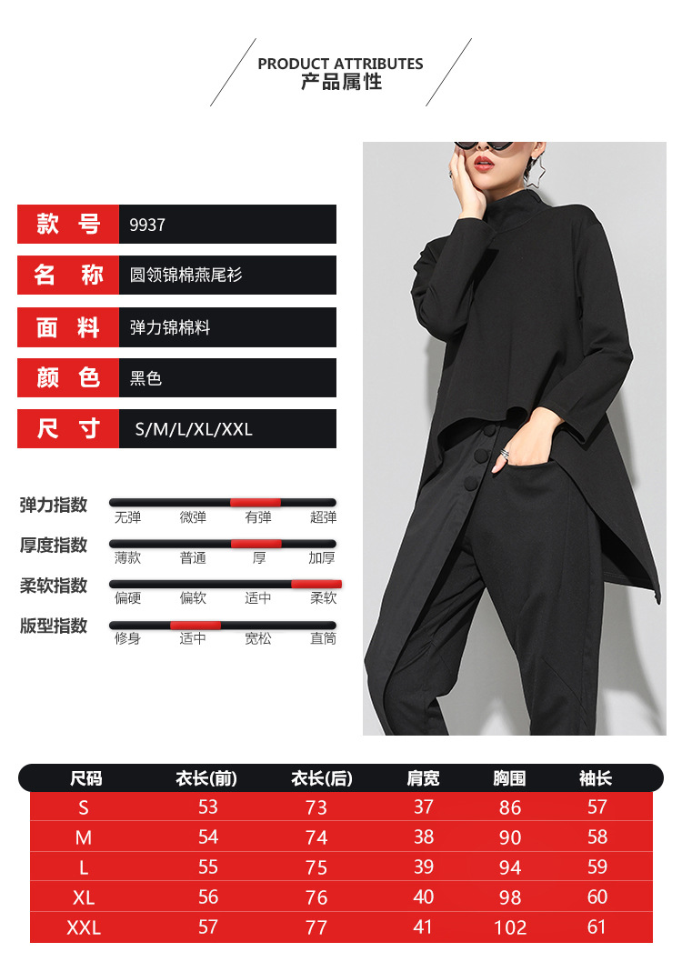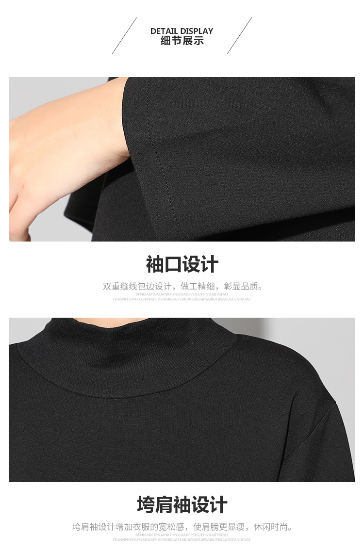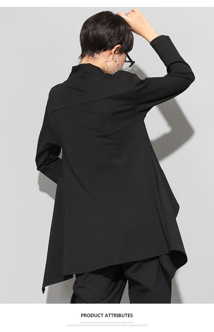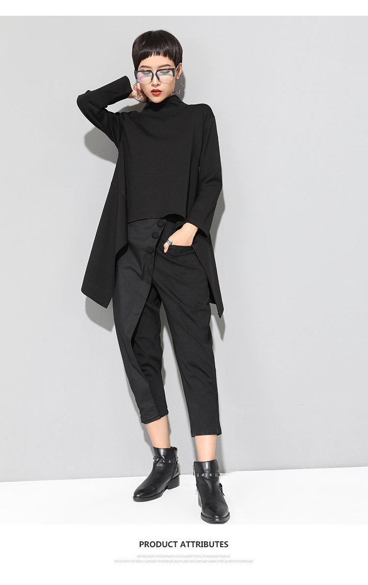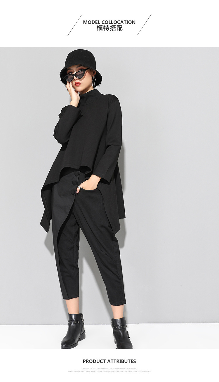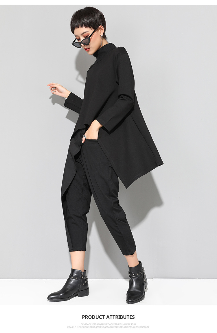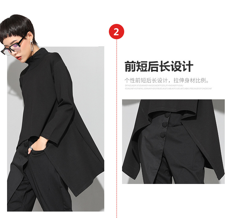 유럽과 미국의 트렌디한 여성용 가을/겨울 신상 베이스 레이어 티셔츠를 실제 촬영한 사진입니다. 활용도가 높고 슬림핏이며, 앞쪽은 짧고 뒤쪽은 긴 디자인입니다.