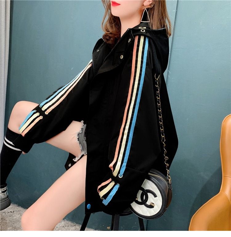 오리지널 품질의 이중 안감, 후드가 달린 느슨한 중간 길이의 트렌치 코트로 봄과 가을에 완벽합니다.