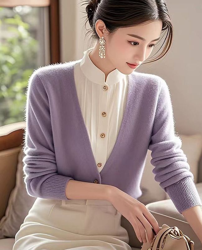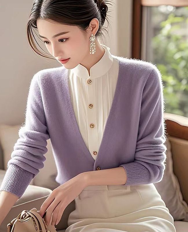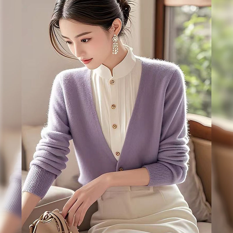 여성을 위한 레트로하고 예술적인 투피스 니트 스웨터, 2025년 가을/겨울 신상, 성숙하고 우아한 컬러블록 베이스 레이어 탑