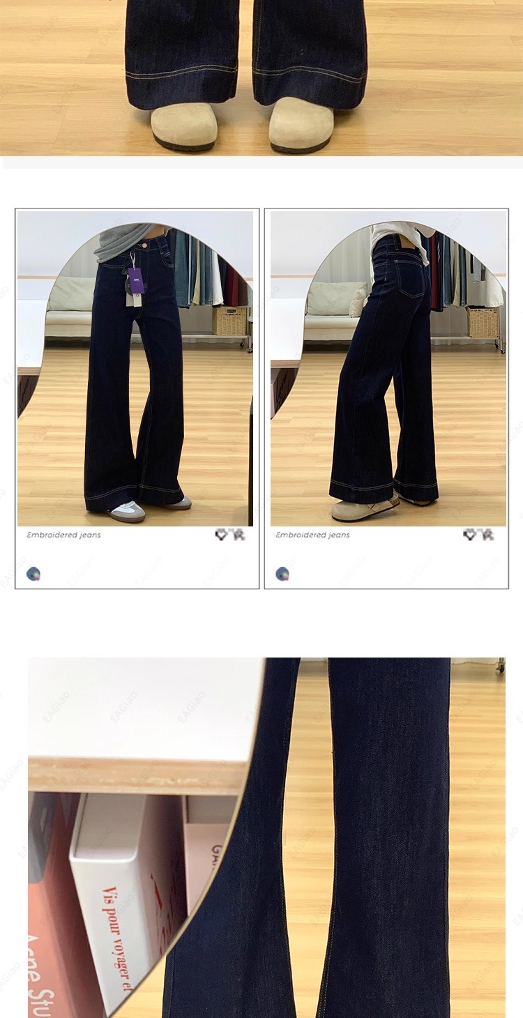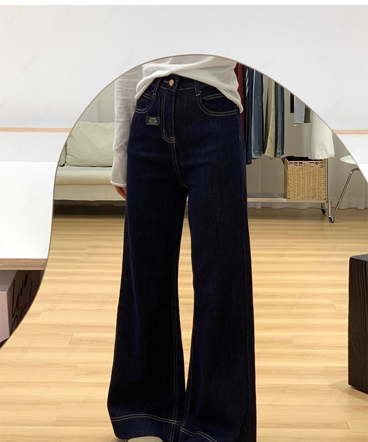여성용 다크 블루 와이드 레그 진, 2025 봄/가을 신상, 루즈핏, 슬림핏, 활용도 높음, 페티트핏, 바닥까지 내려오는 길이