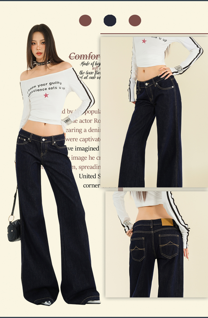 25th ootd!|美式原色阔腿牛仔裤秋冬新款低腰显瘦宽松直筒拖地裤