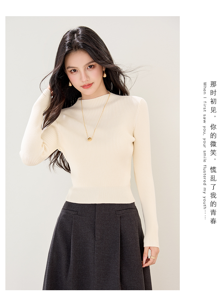 하이넥 디자인의 새로운 가을, 겨울용 여성용 베이스 레이어 긴팔 단색 풀오버 스웨터의 실제 사진입니다.
