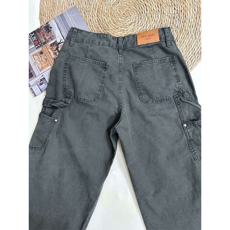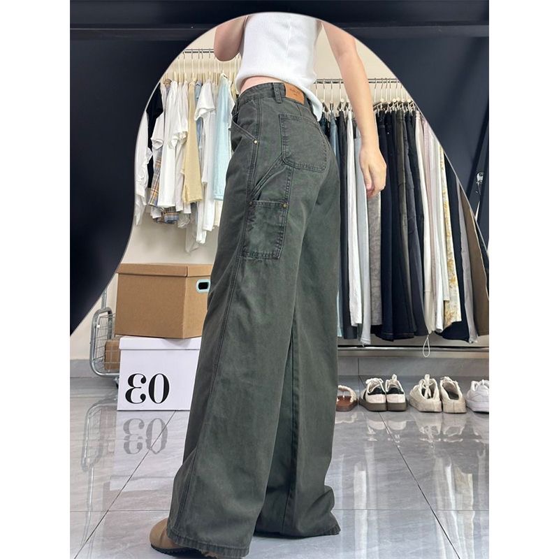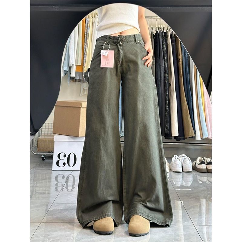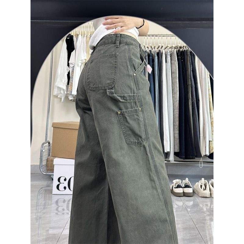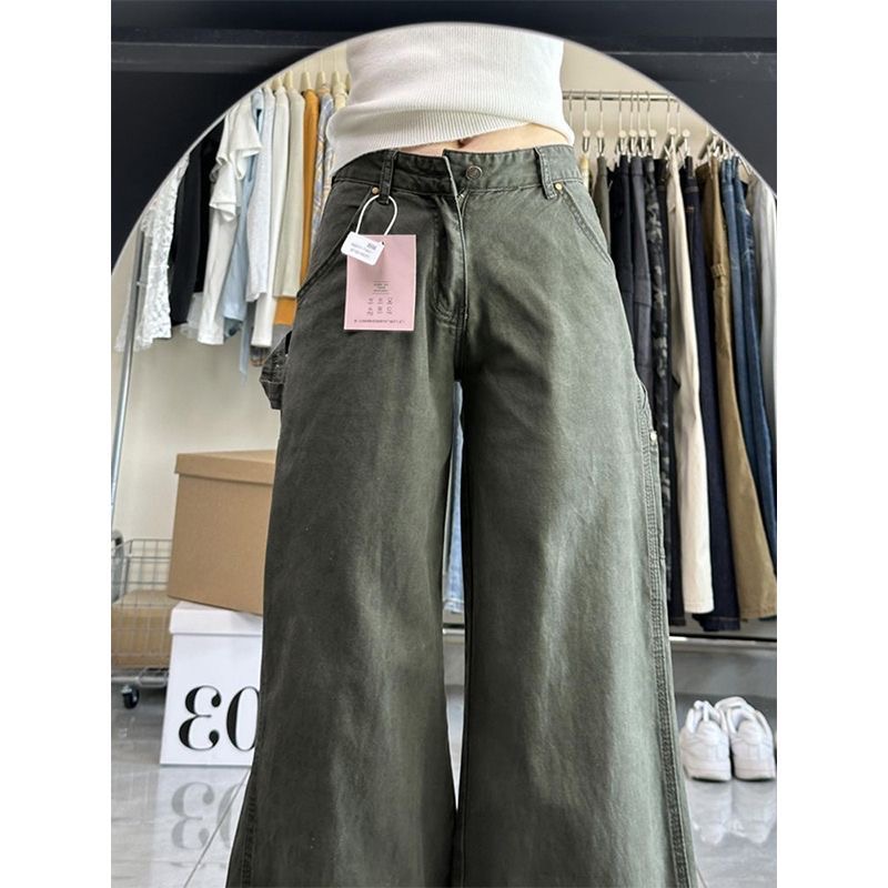 여성용 소형 미국 레트로 와이드 레그 카고 청바지, 하이웨이스트, 느슨한 핏, 스트레이트 레그, 바닥 길이의 바지, 가을에 완벽합니다.