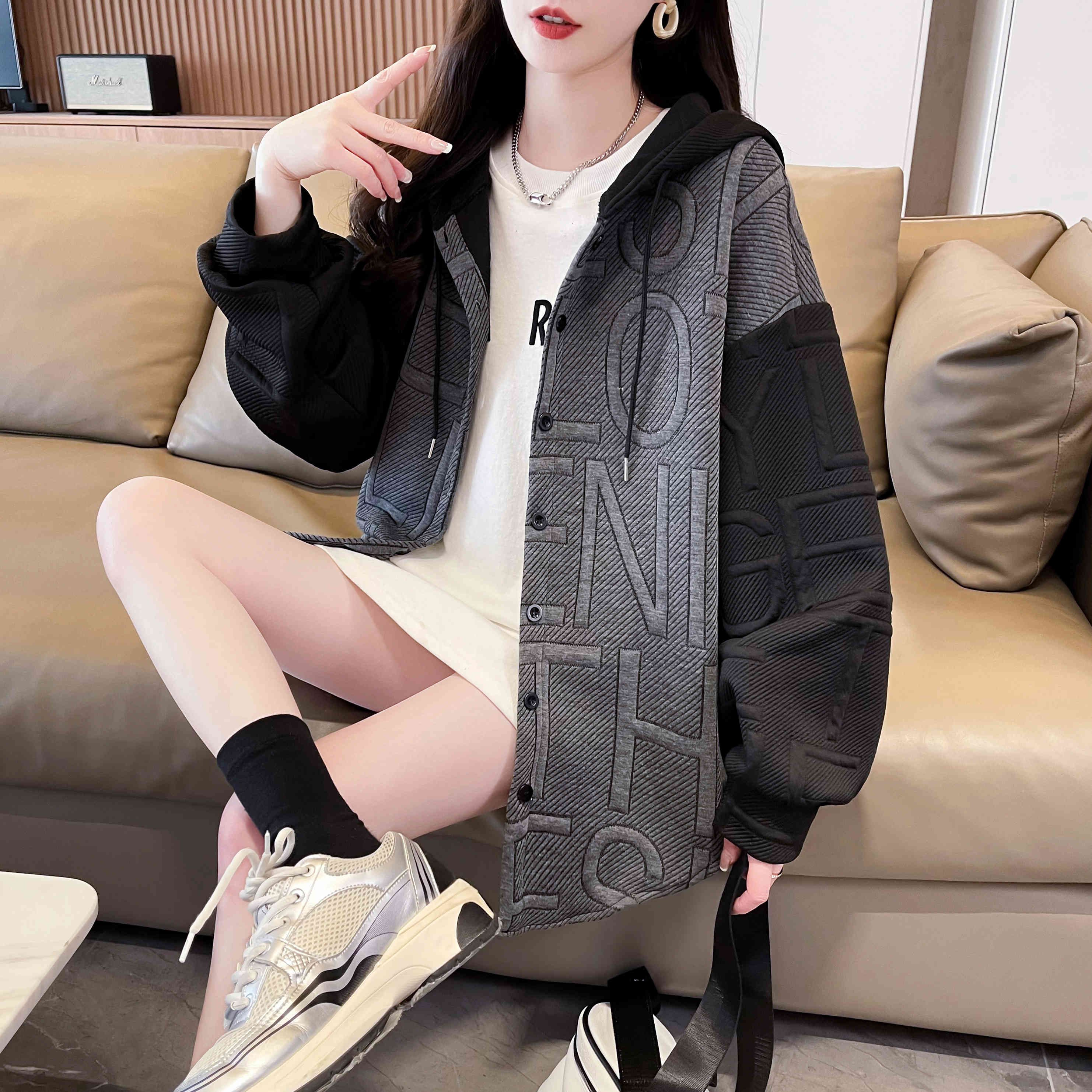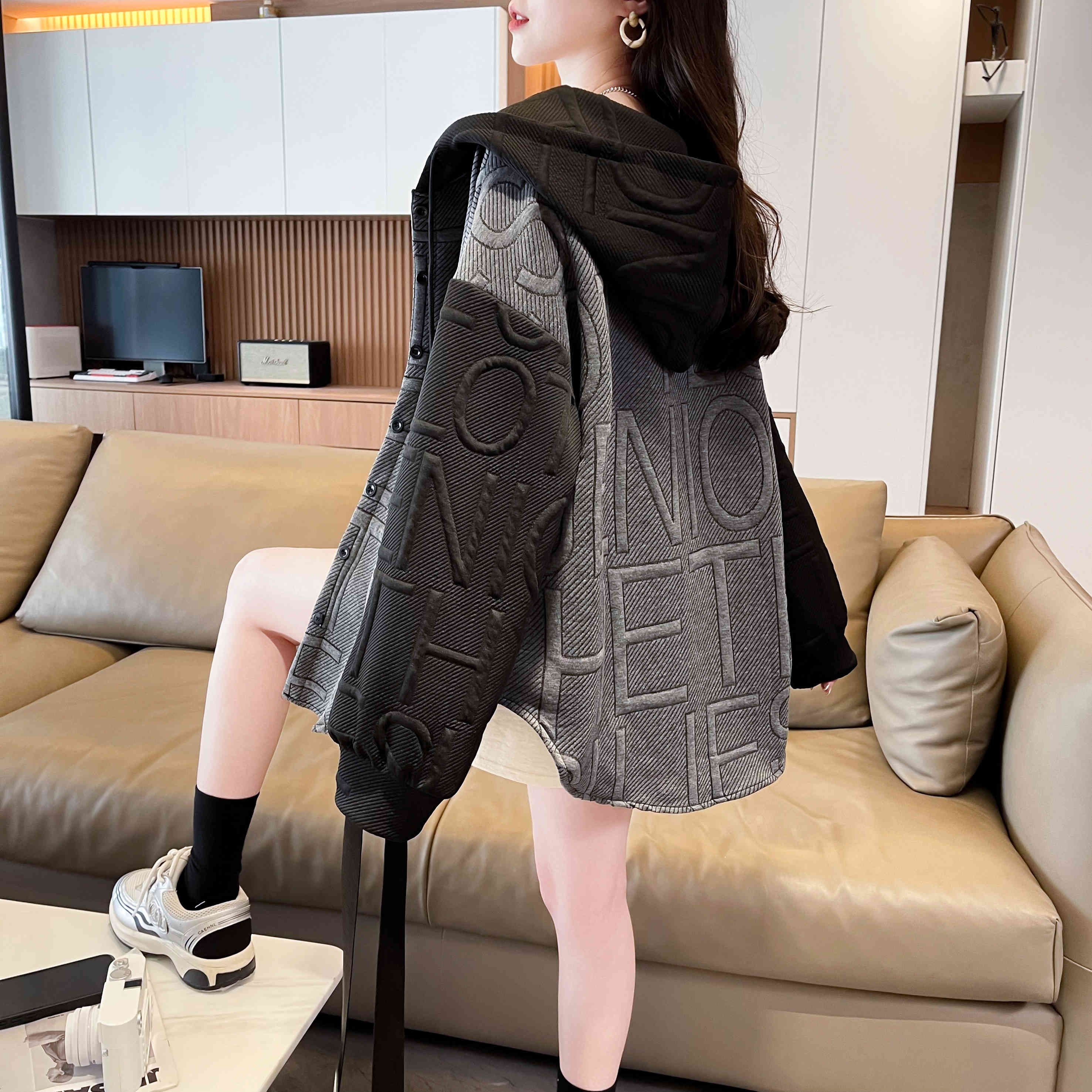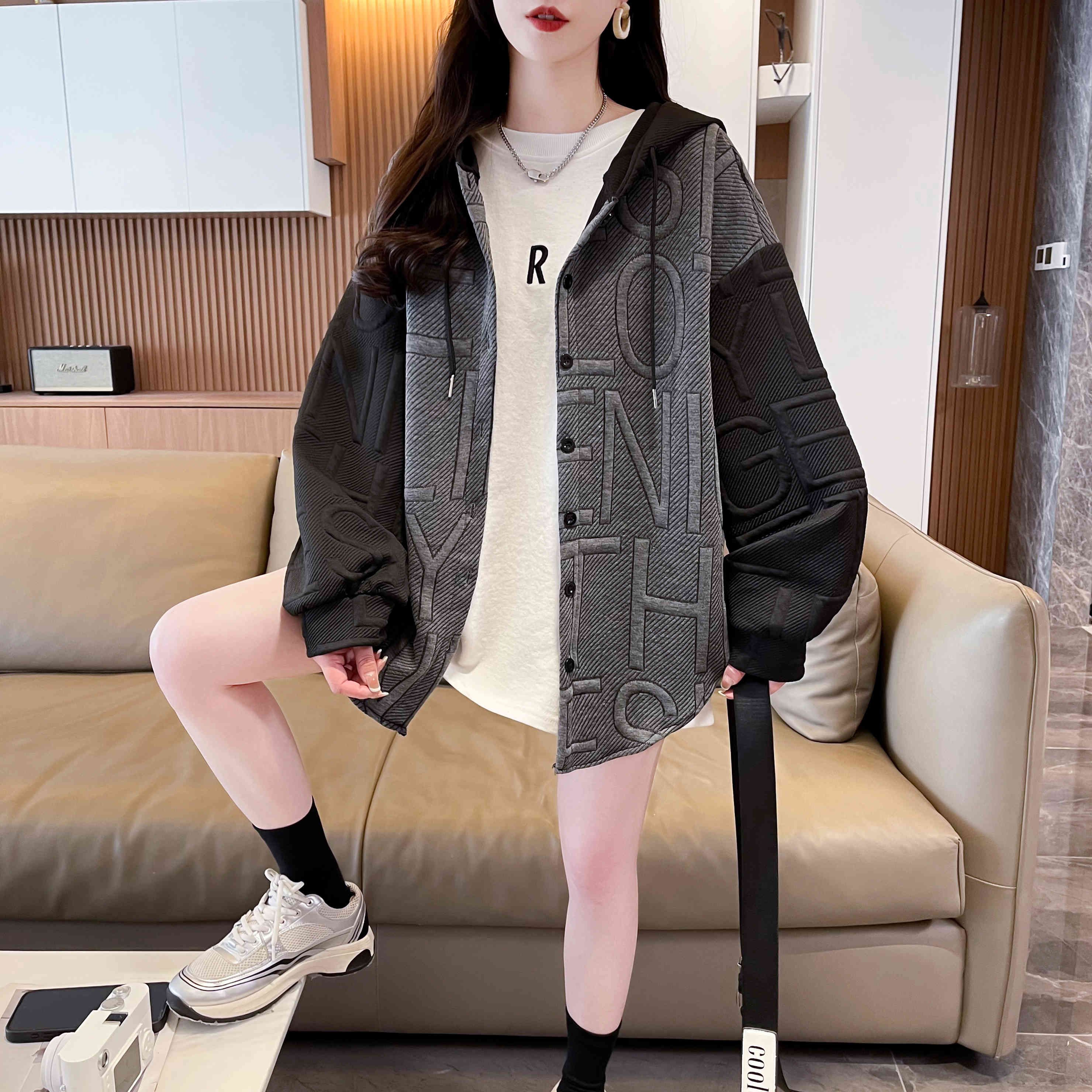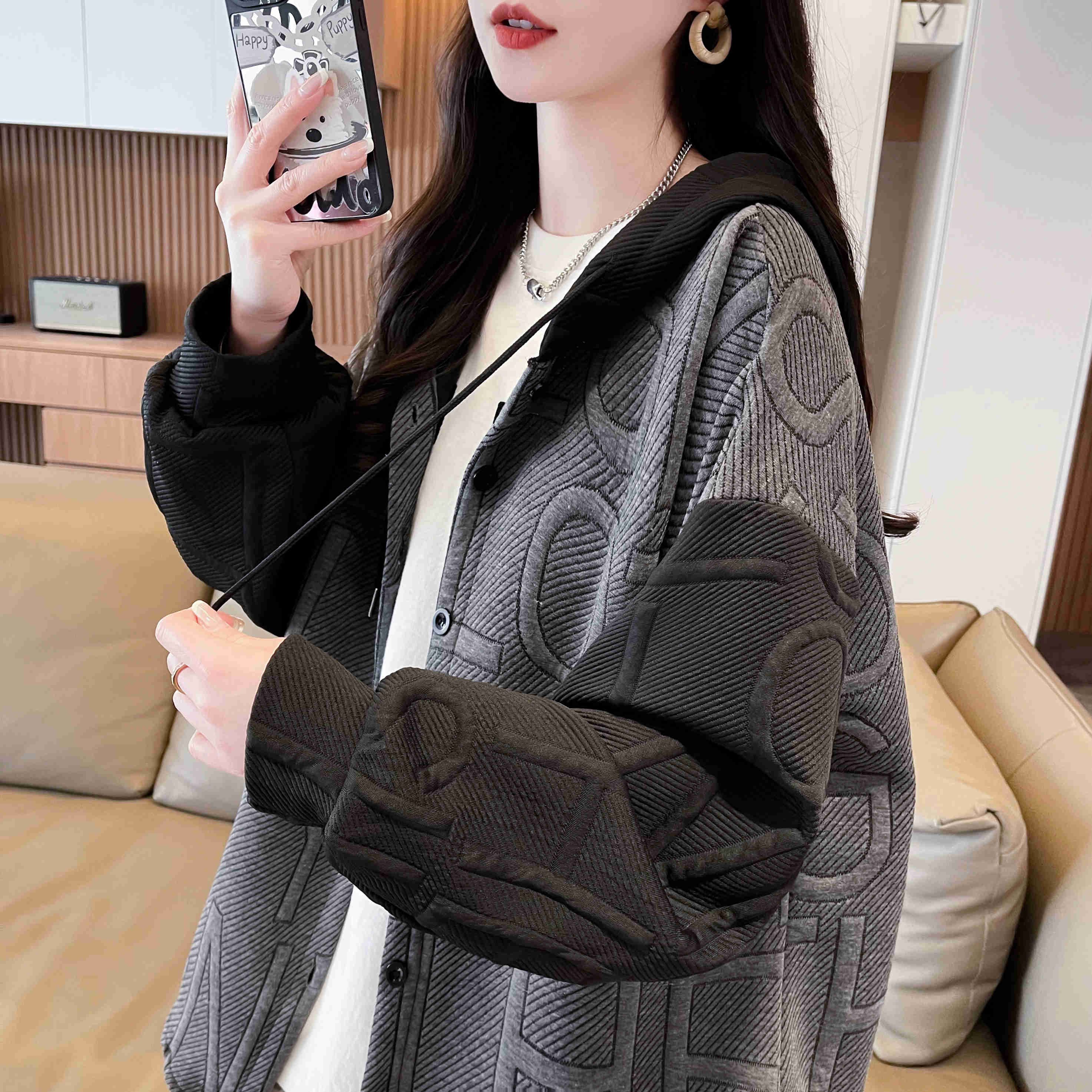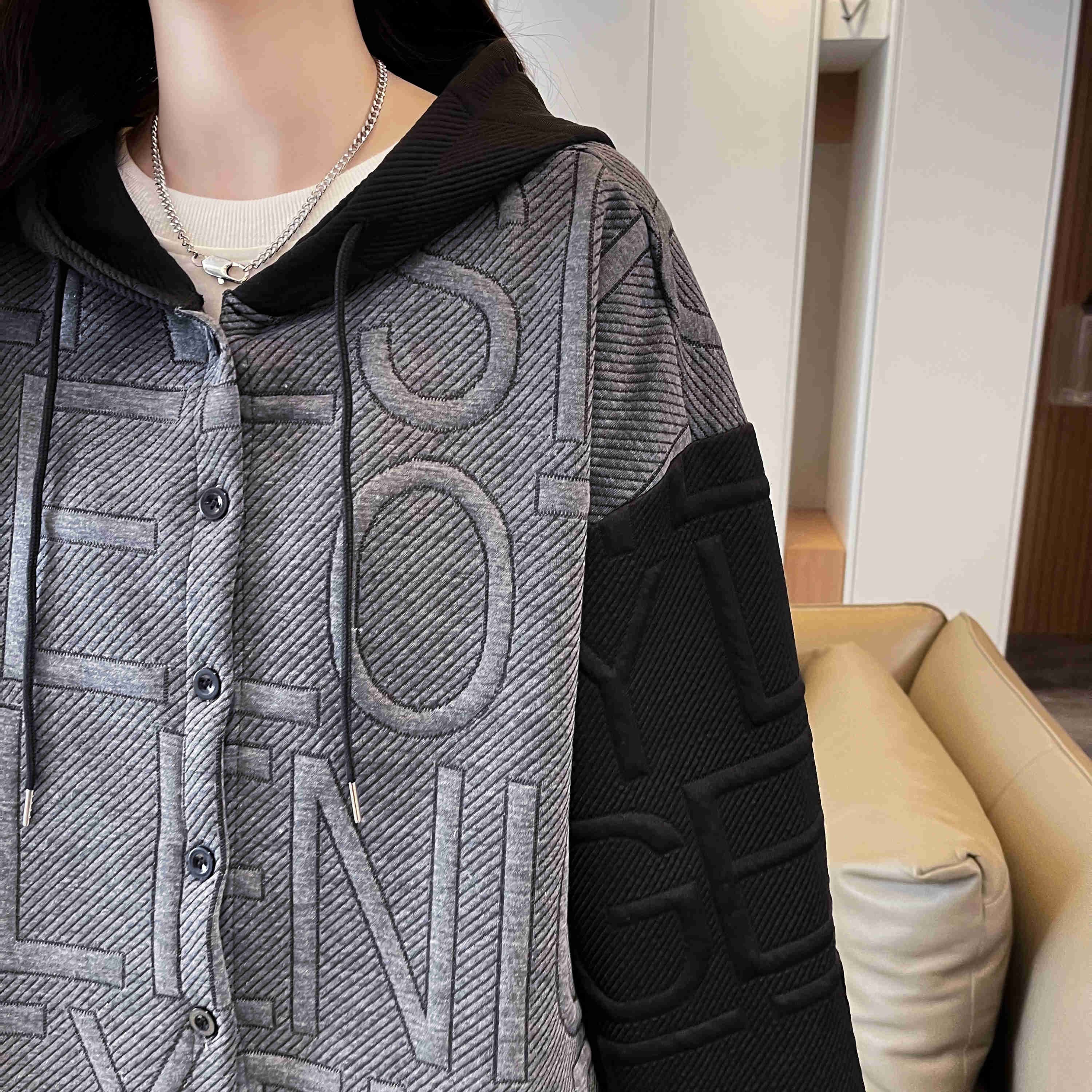 자카드 원단 2025 봄/가을 캐주얼 루즈 디자인 후드 재킷