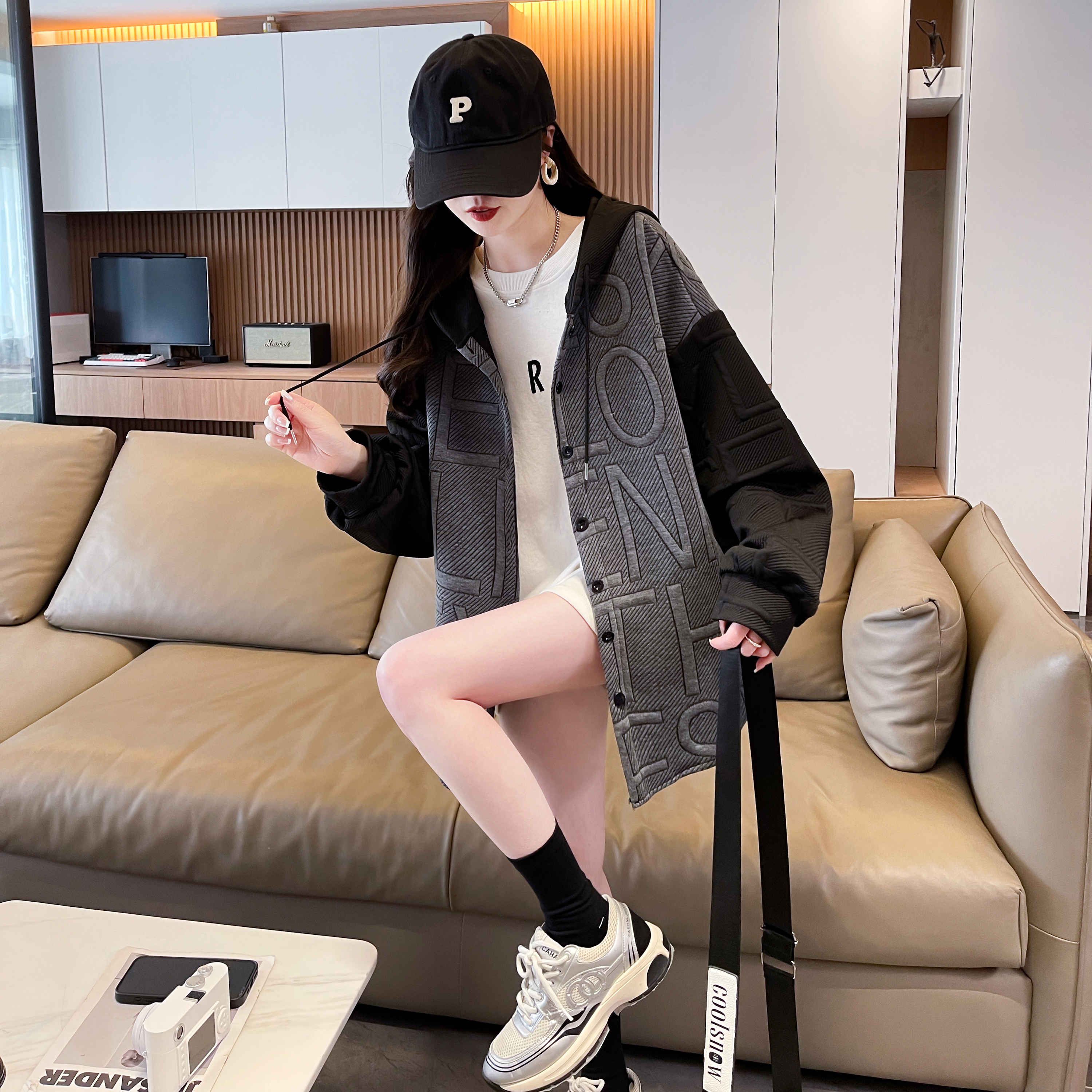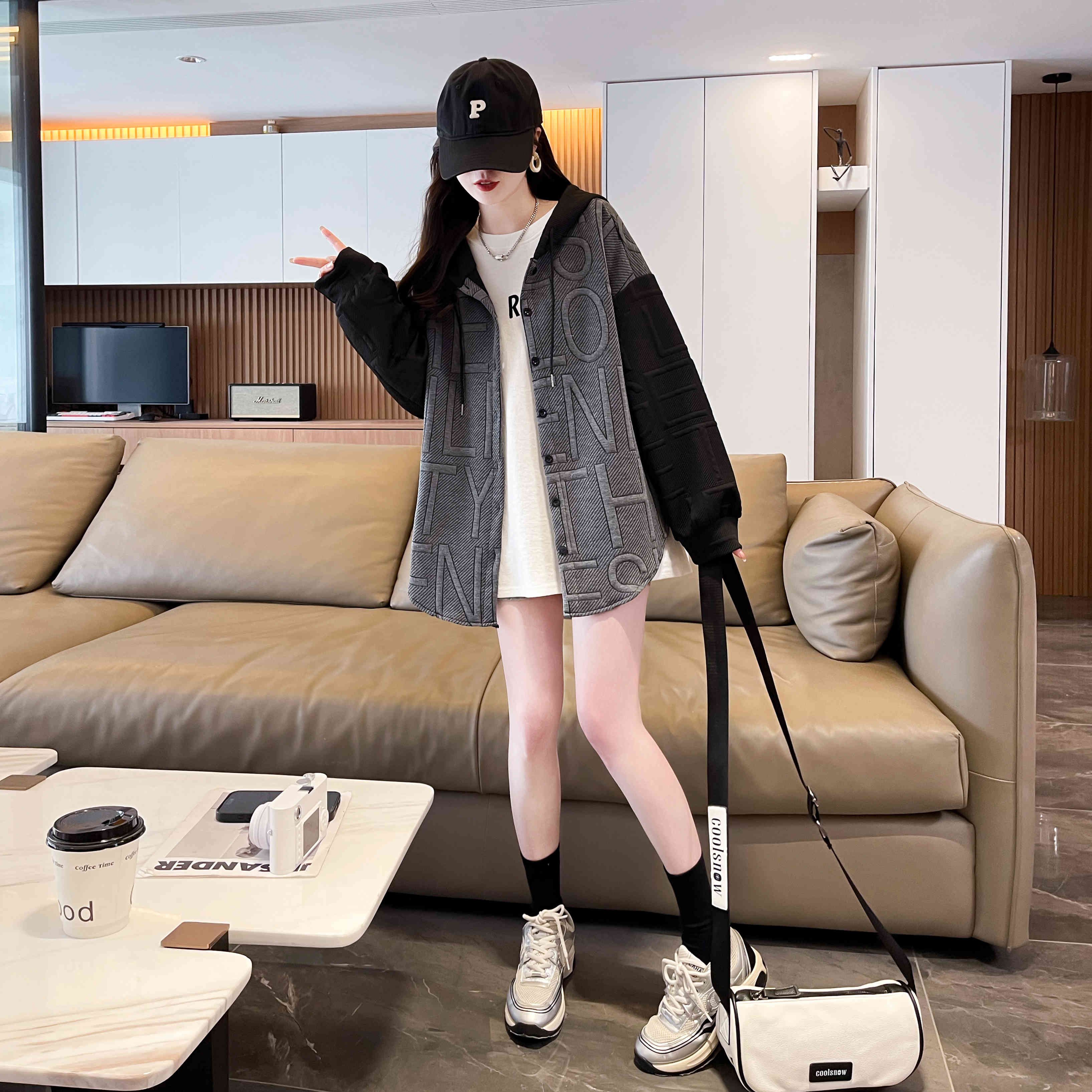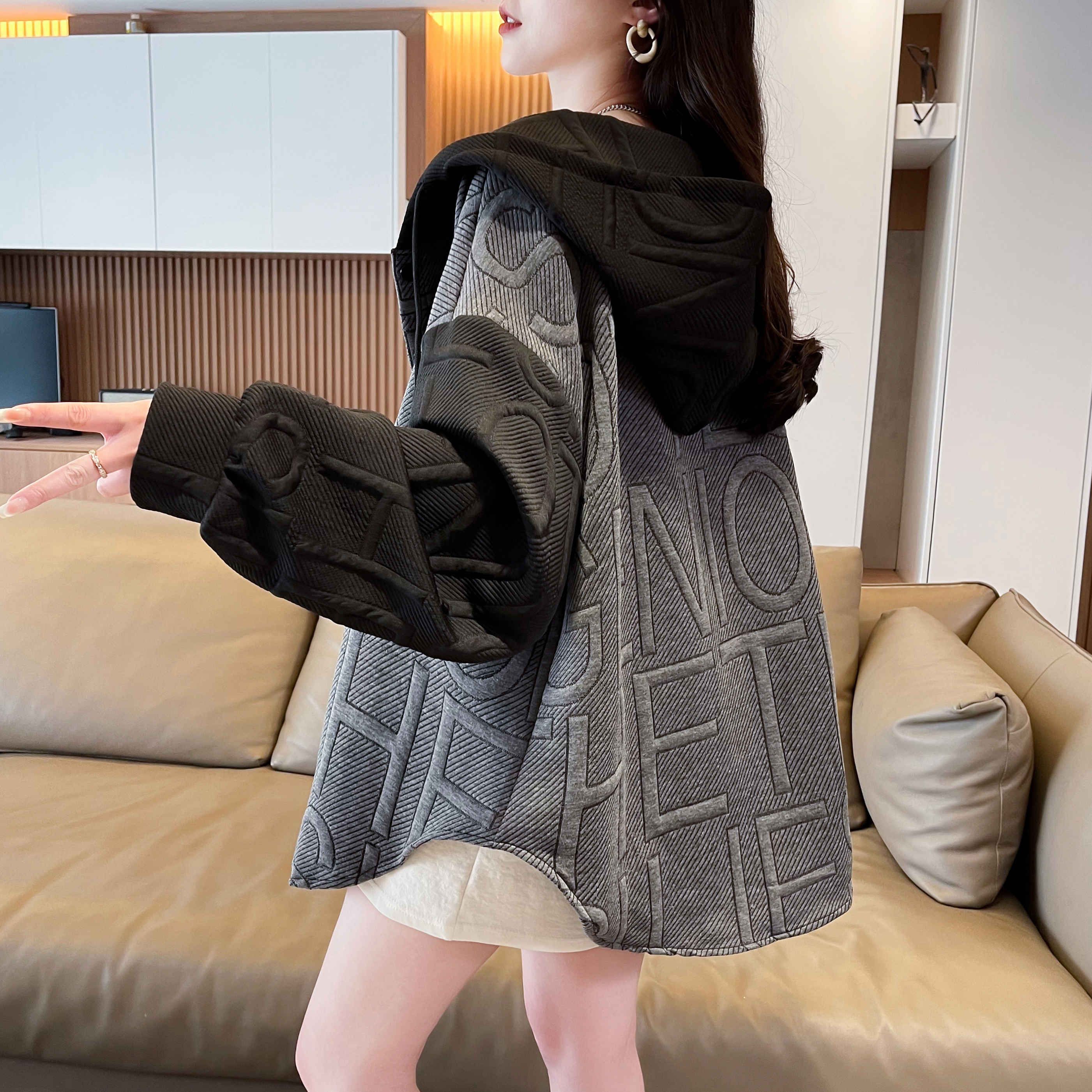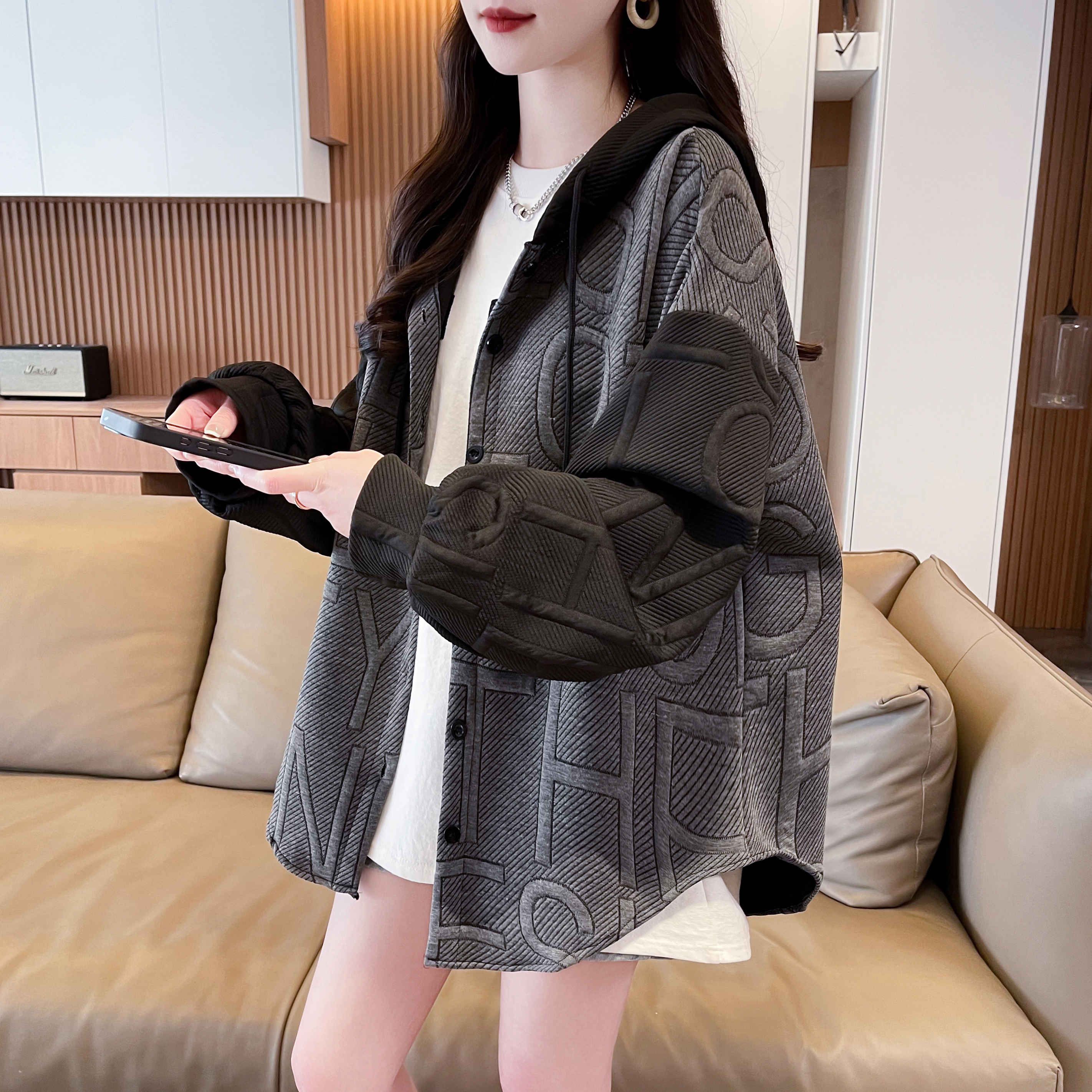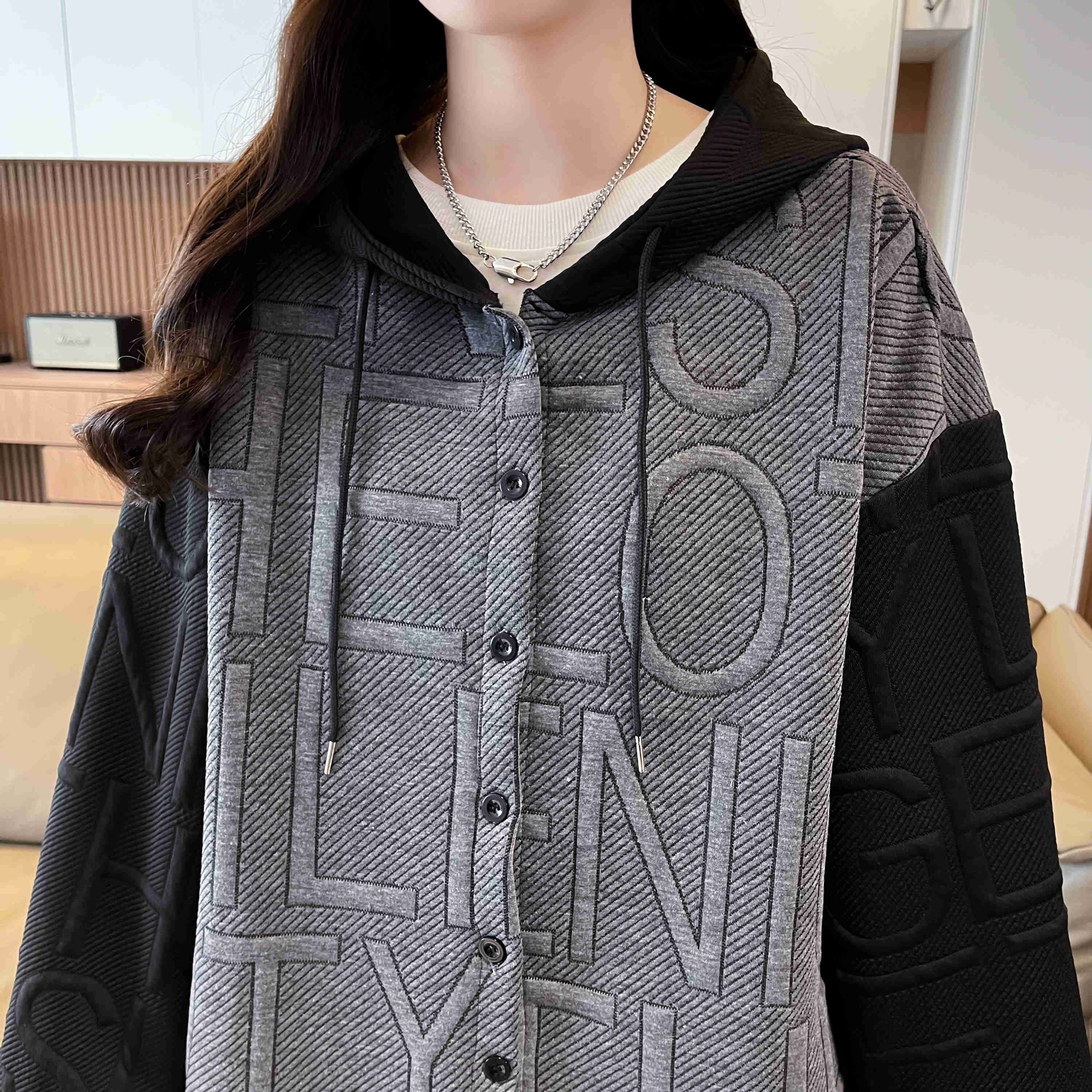 자카드 원단 2025 봄/가을 캐주얼 루즈 디자인 후드 재킷