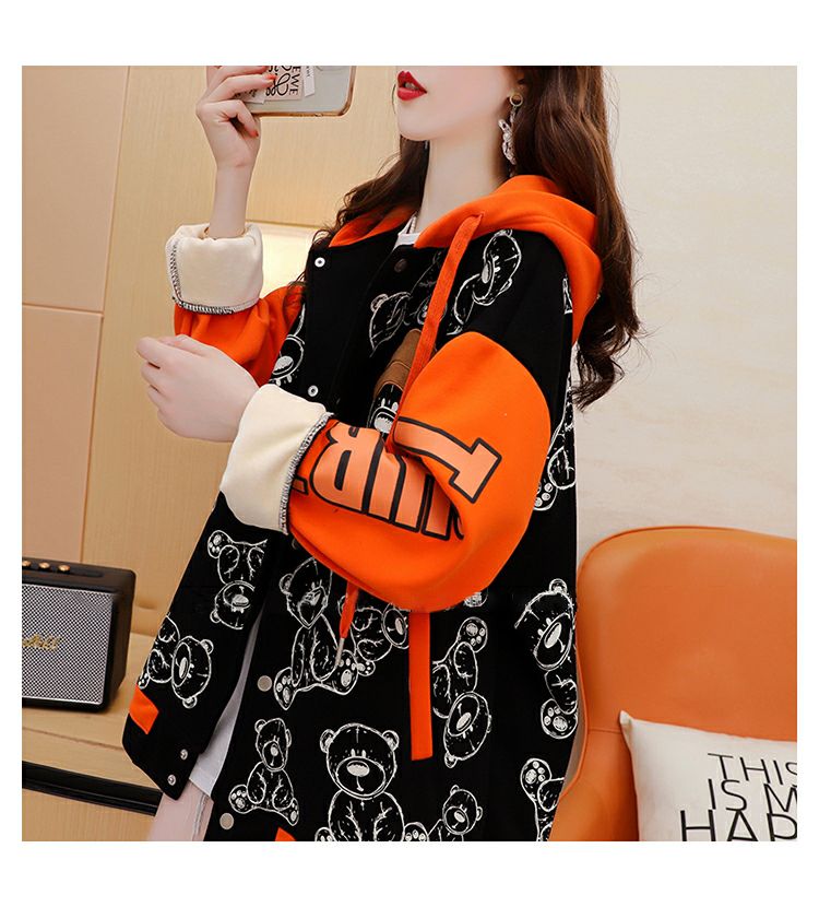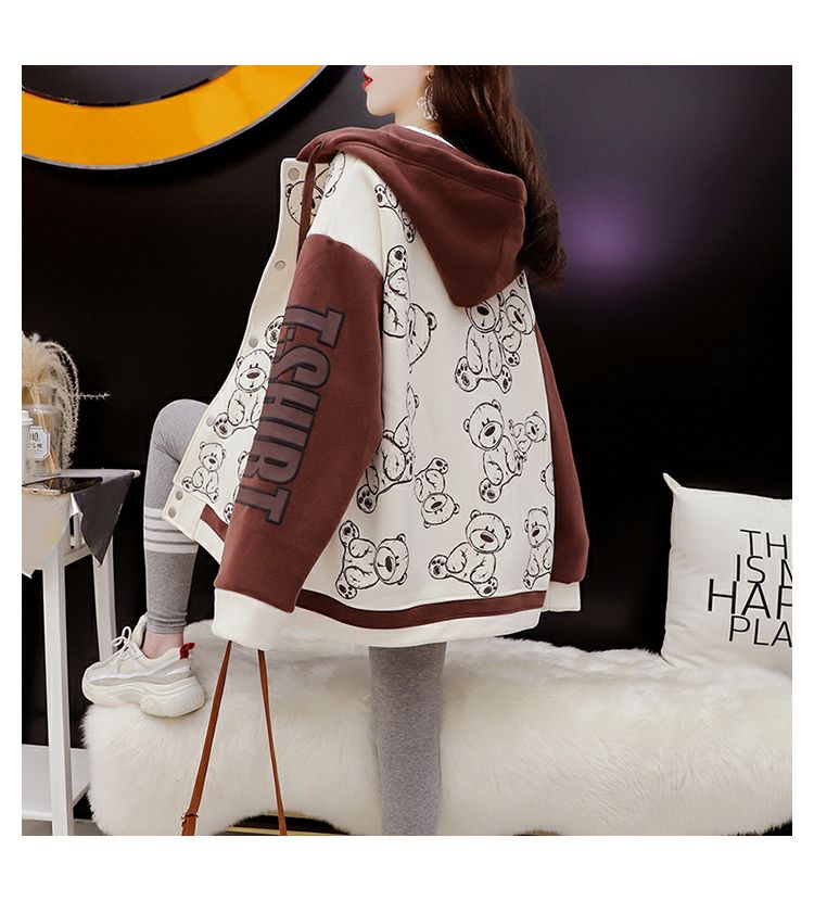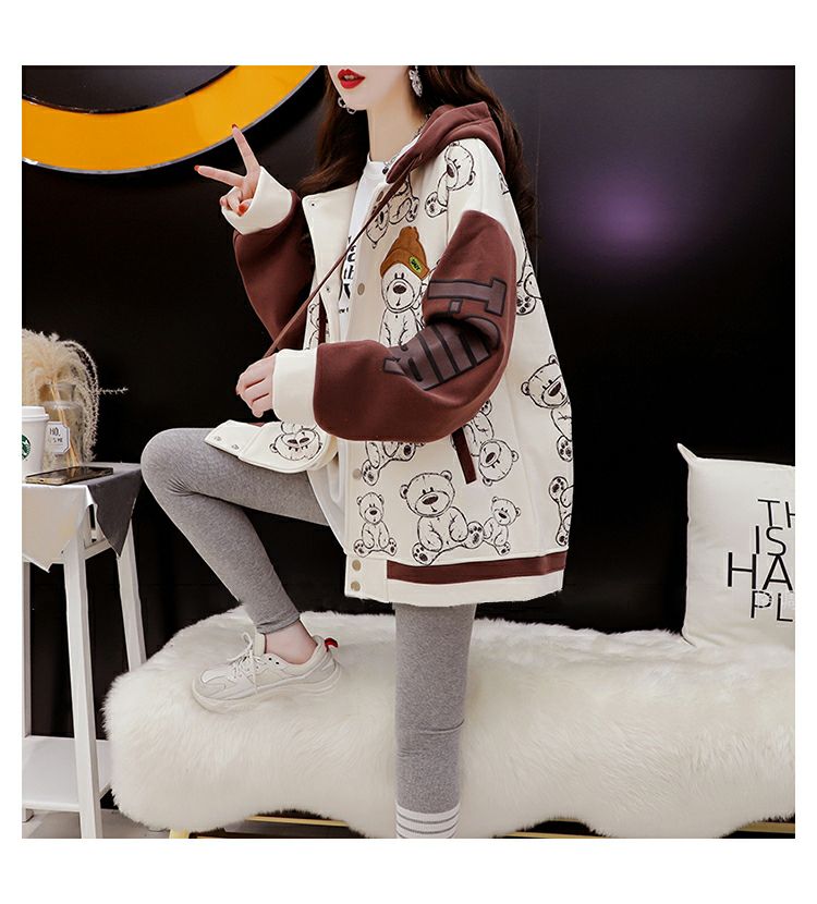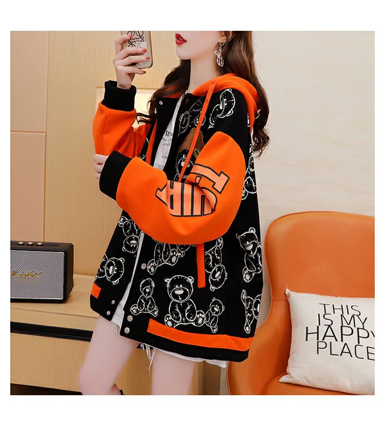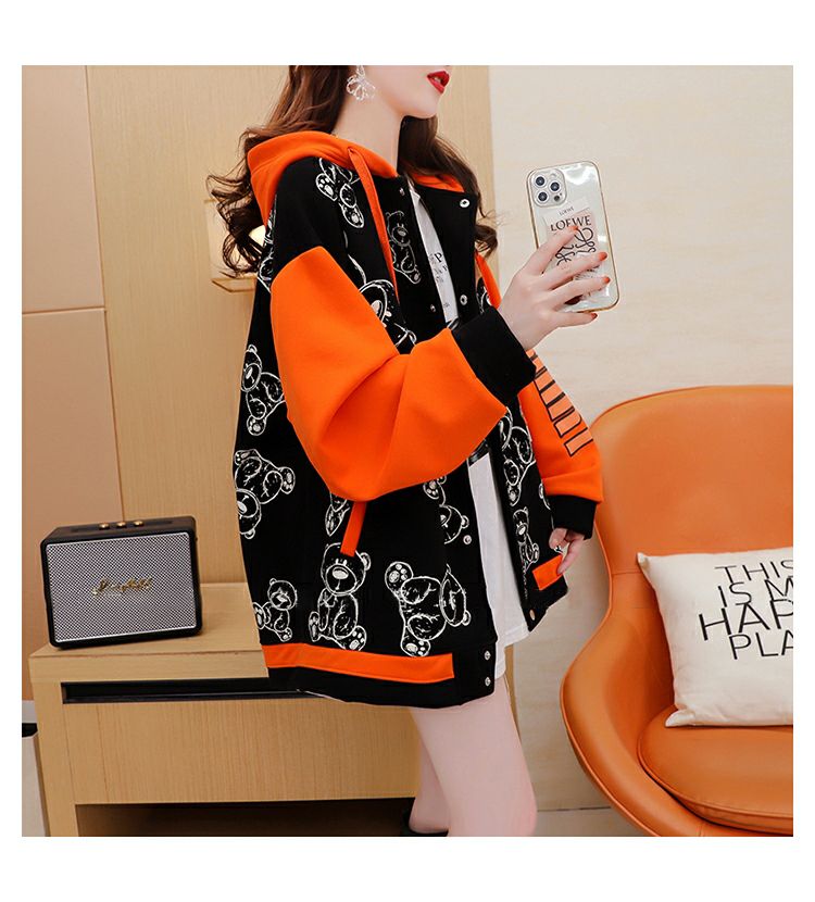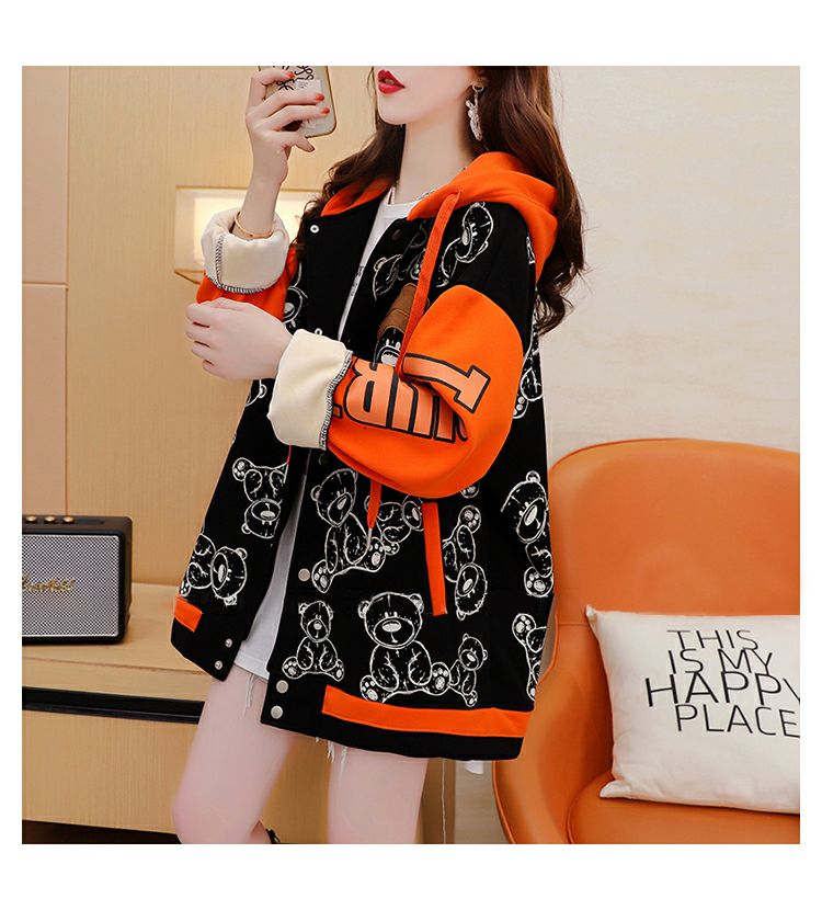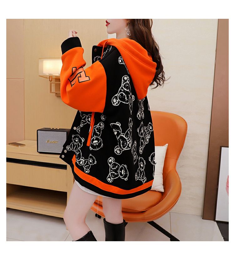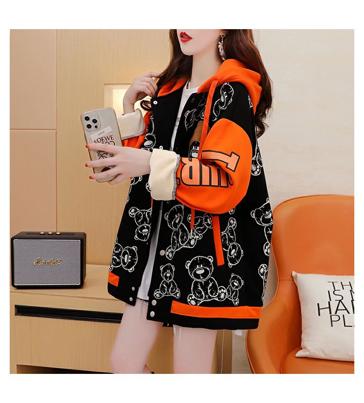트윌 피쉬 스케일 얇은 야구 재킷 가을 및 겨울 후드 카디건 스웨트셔츠 재킷 여성용