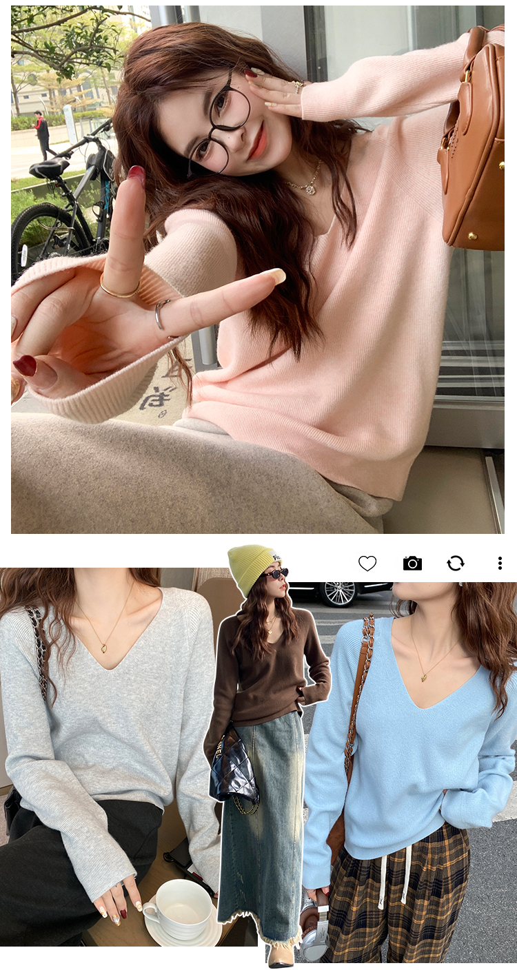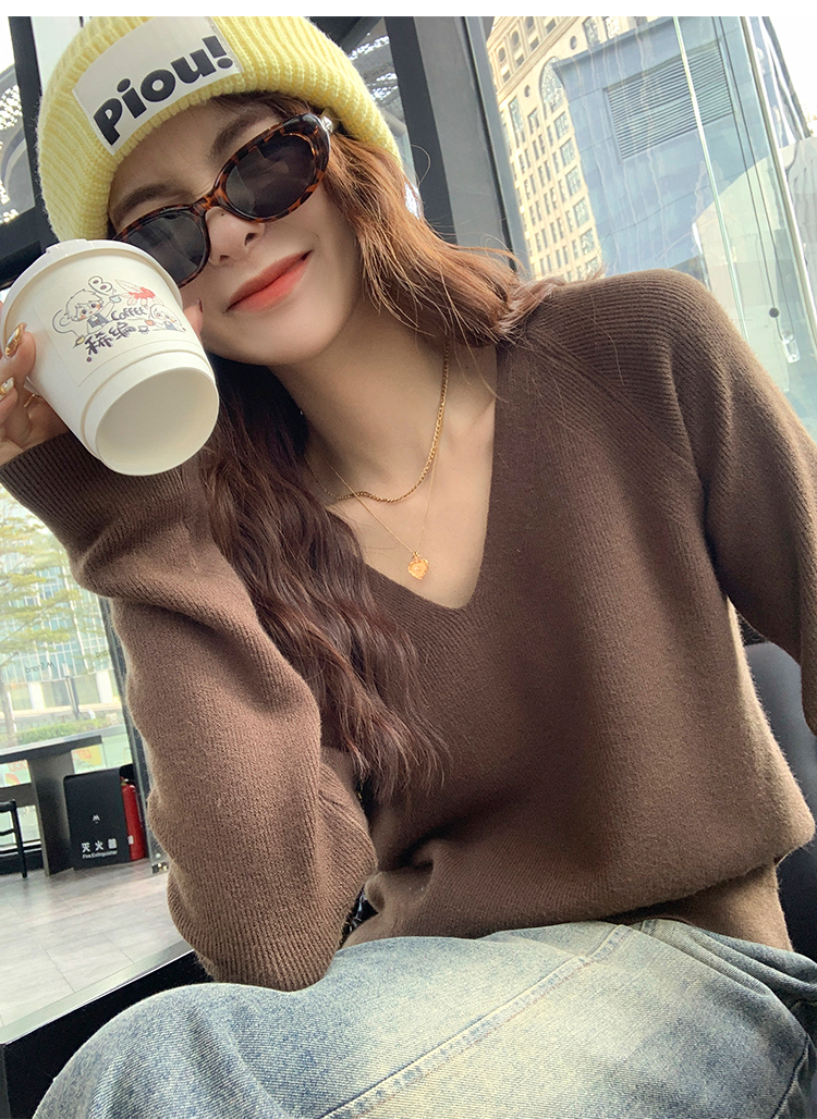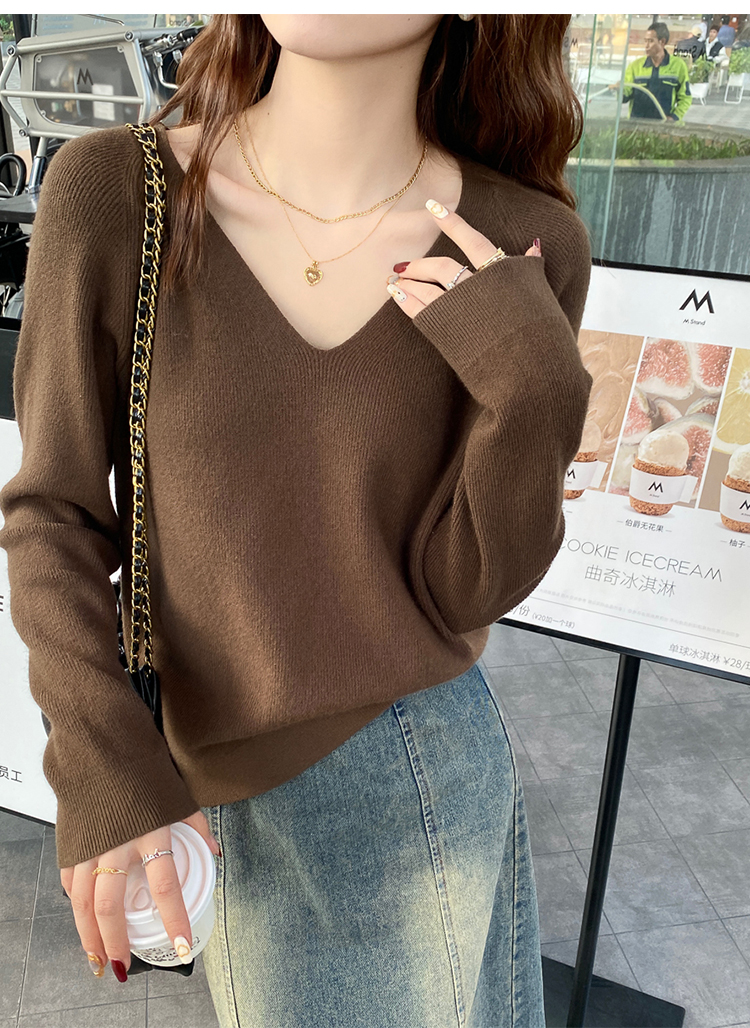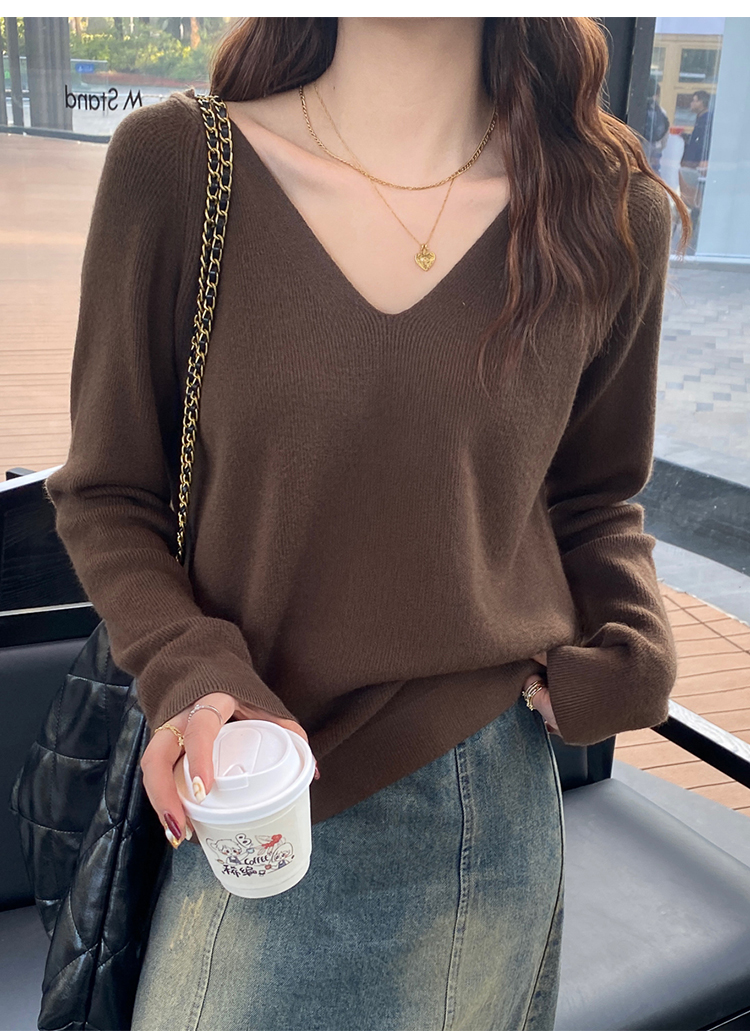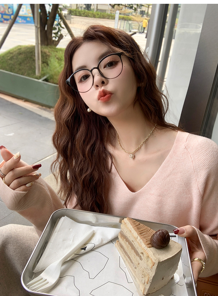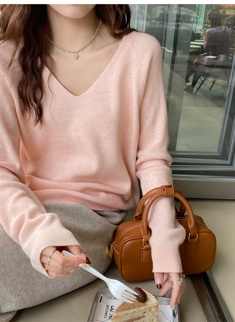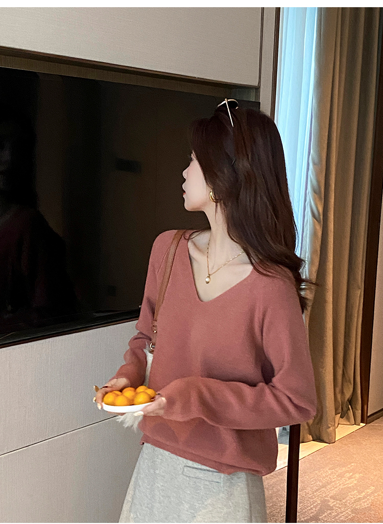 여성용 핑크색 V넥 베이스 레이어 상의, 2025년 가을/겨울 신상품, 스웨터, 고급 루즈하고 다재다능한 니트 상의.