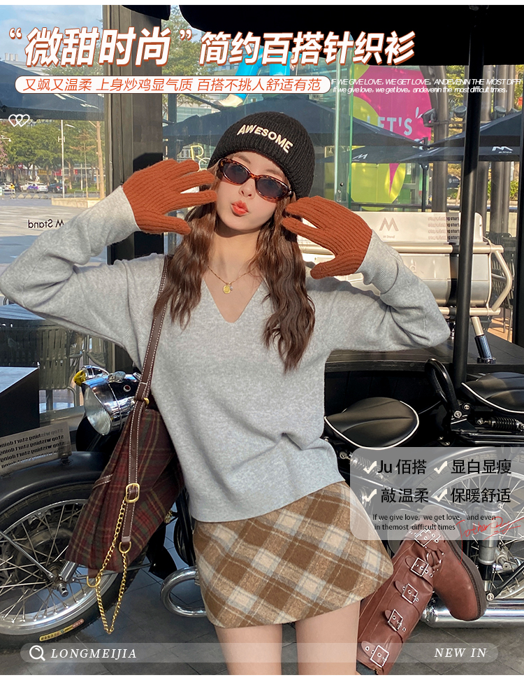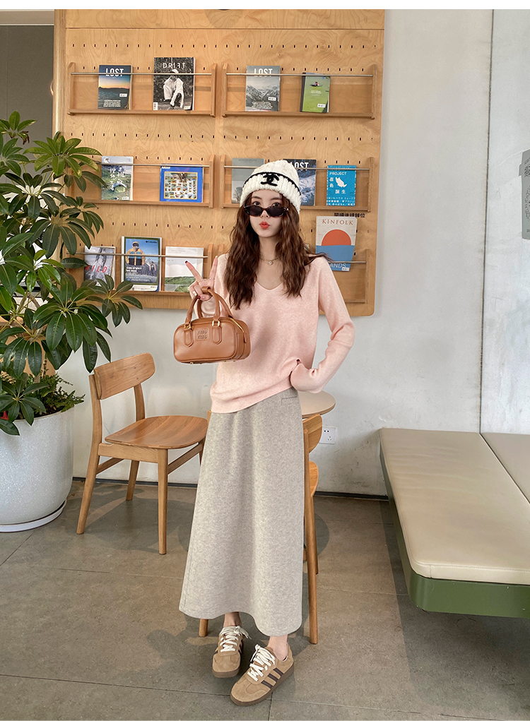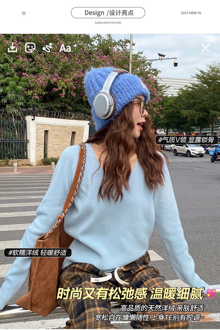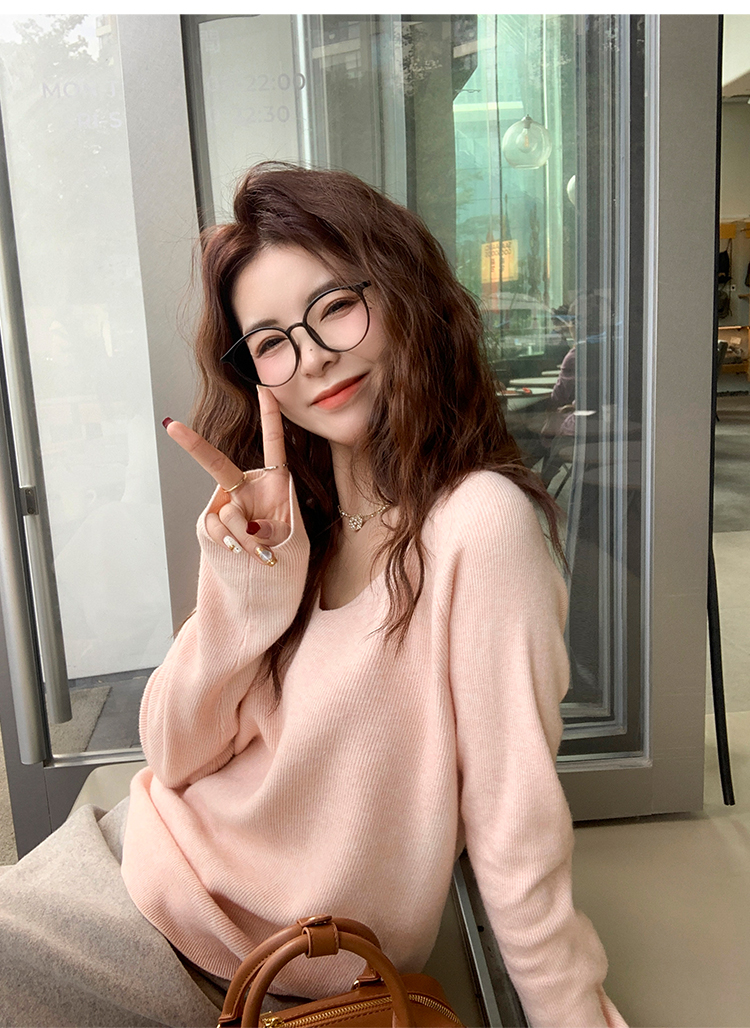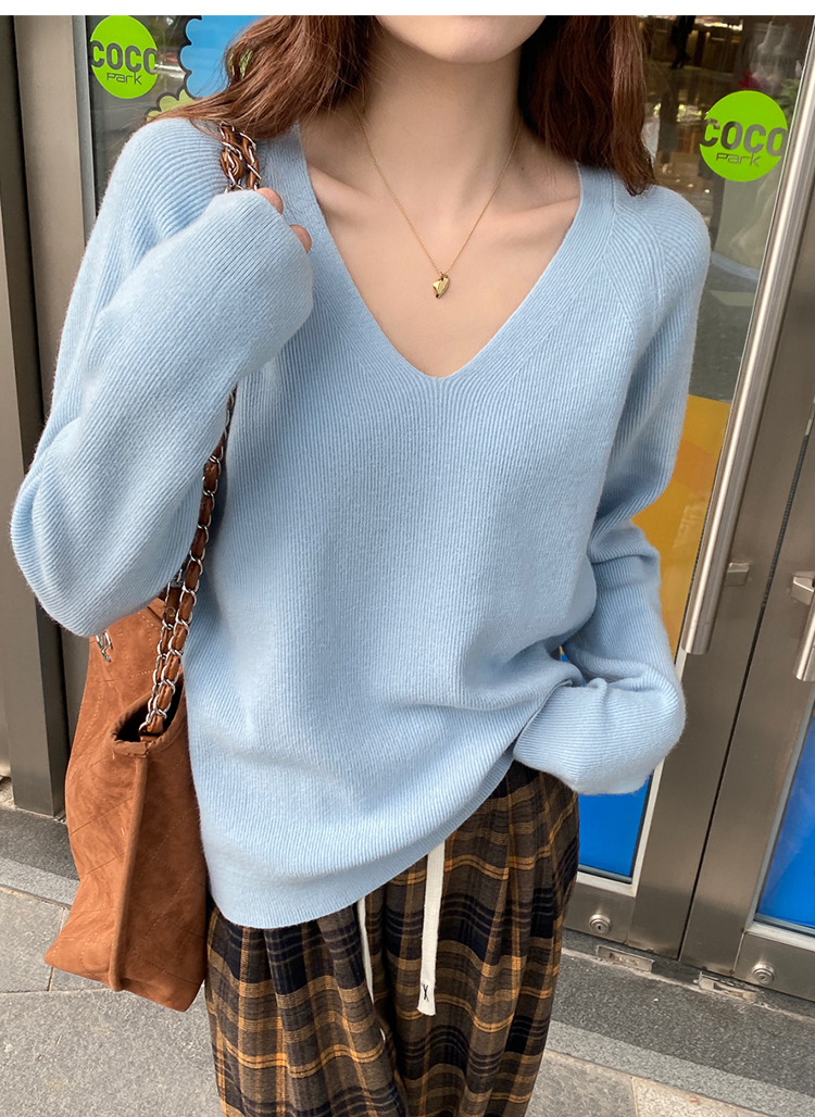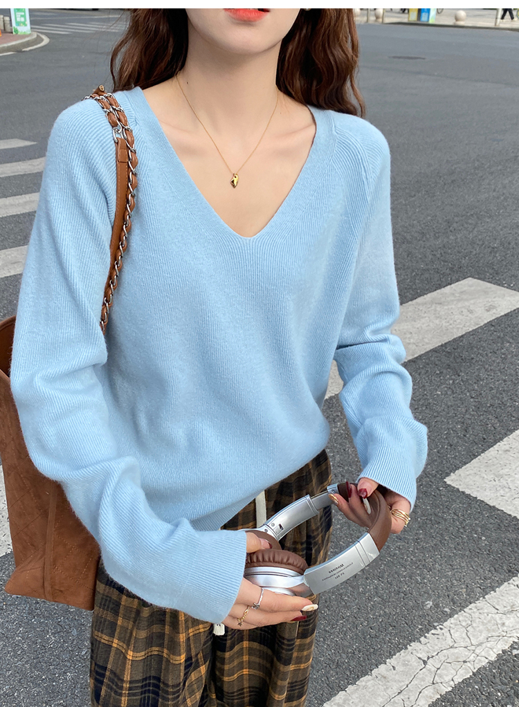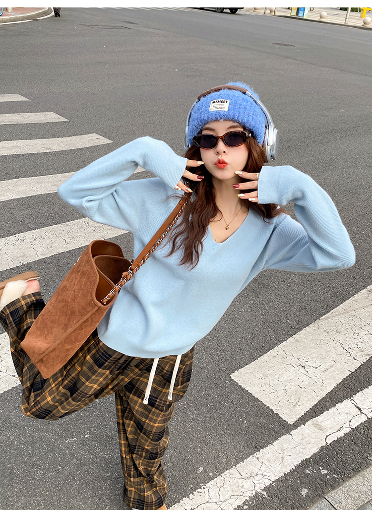여성용 핑크색 V넥 베이스 레이어 상의, 2025년 가을/겨울 신상품, 스웨터, 고급 루즈하고 다재다능한 니트 상의.