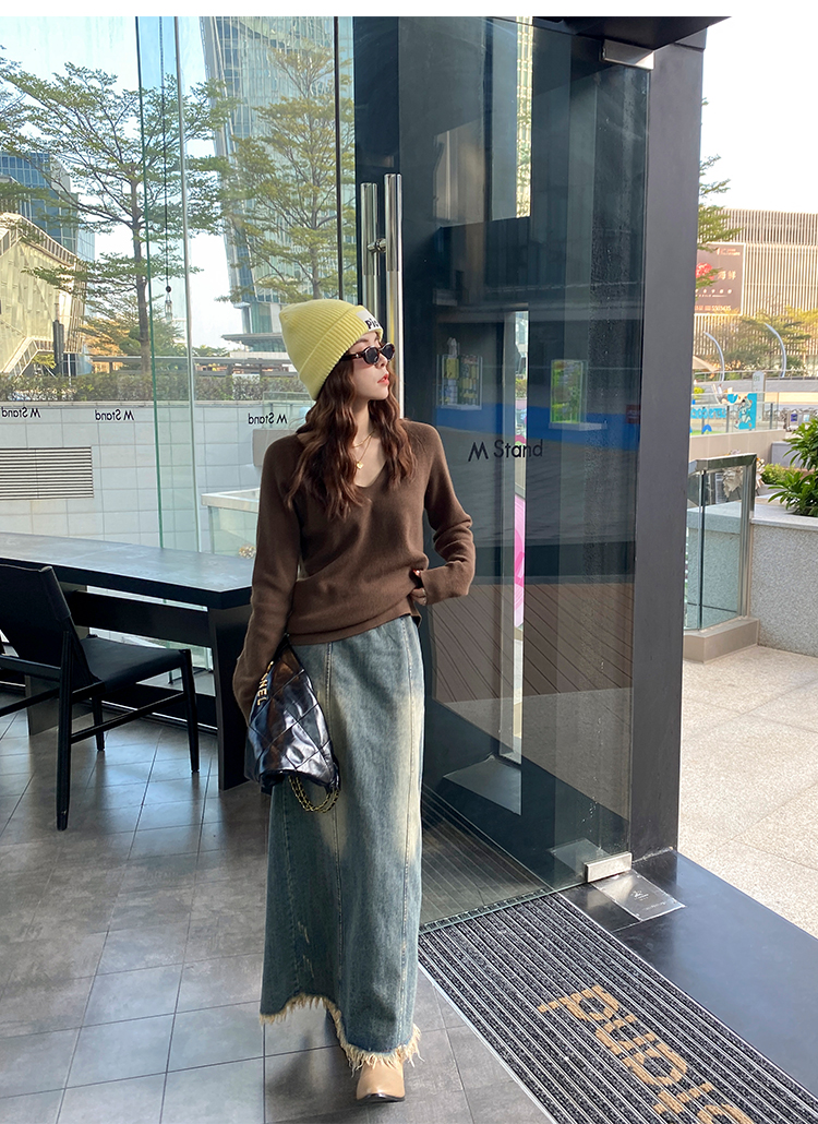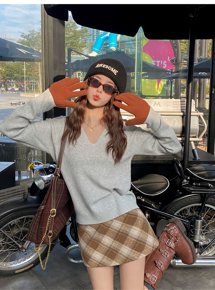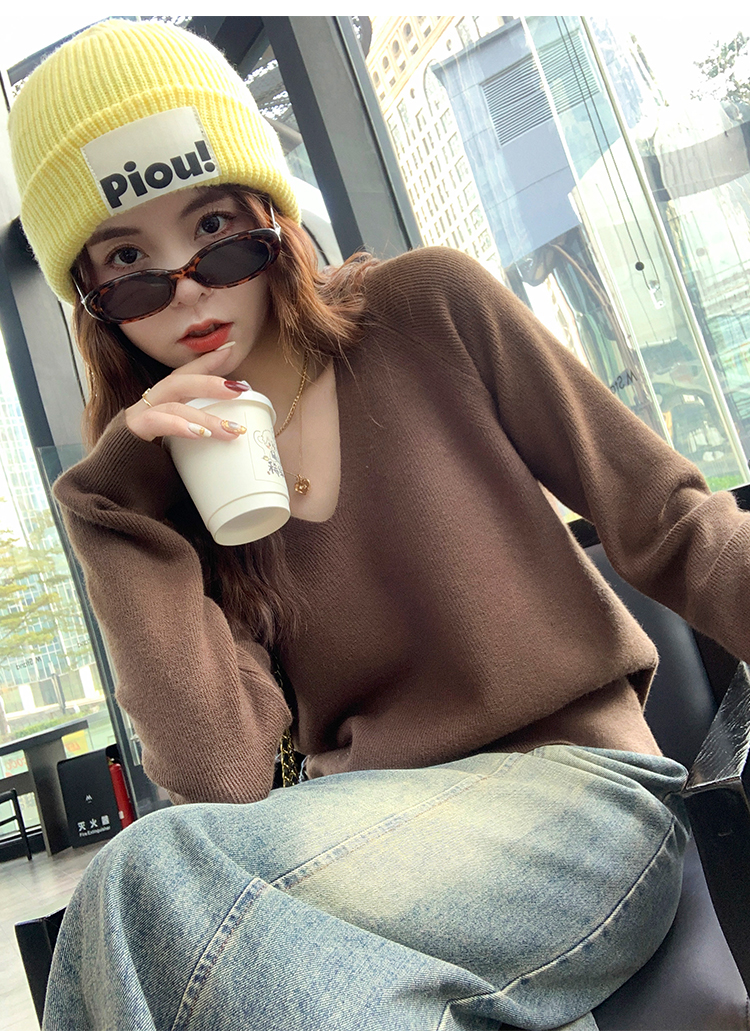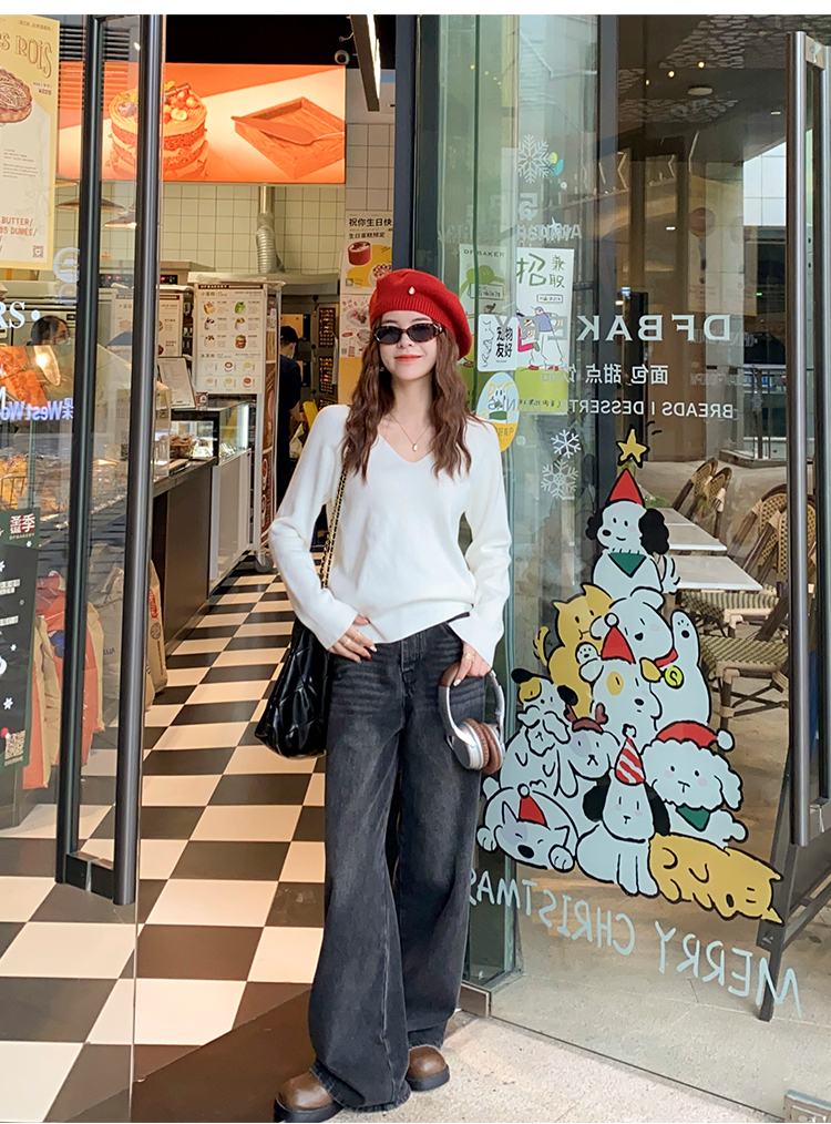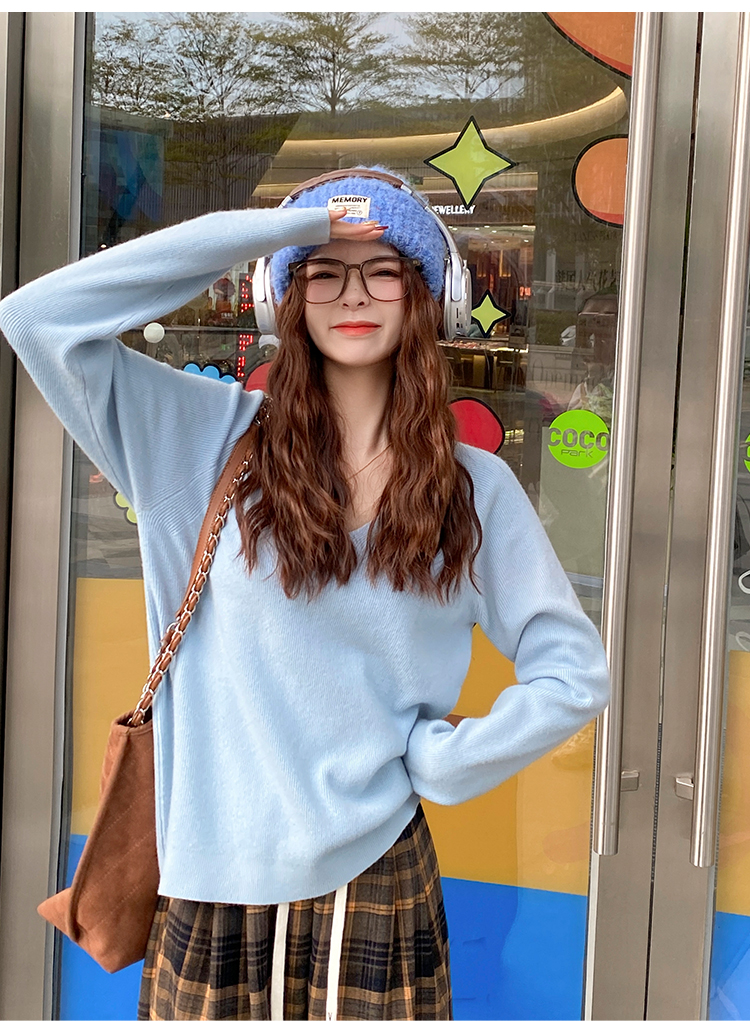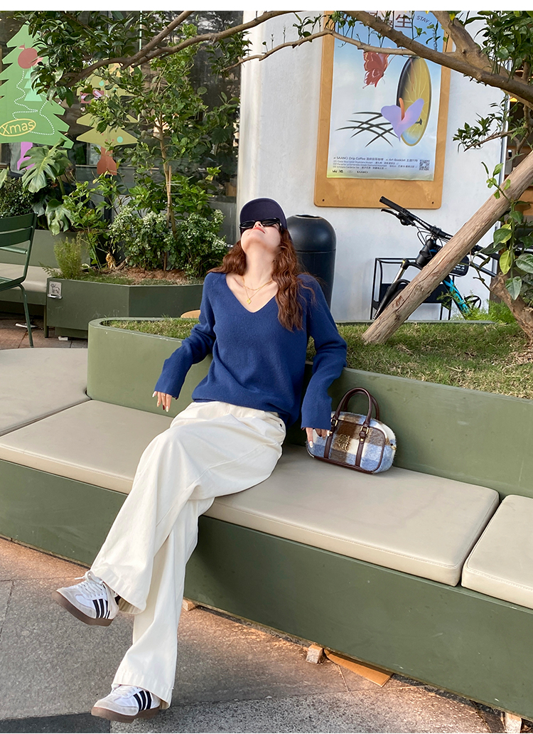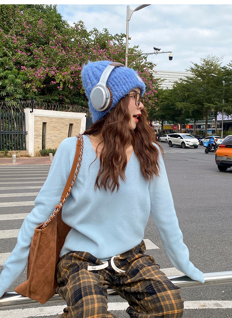 여성용 핑크색 V넥 베이스 레이어 상의, 2025년 가을/겨울 신상품, 스웨터, 고급 루즈하고 다재다능한 니트 상의.