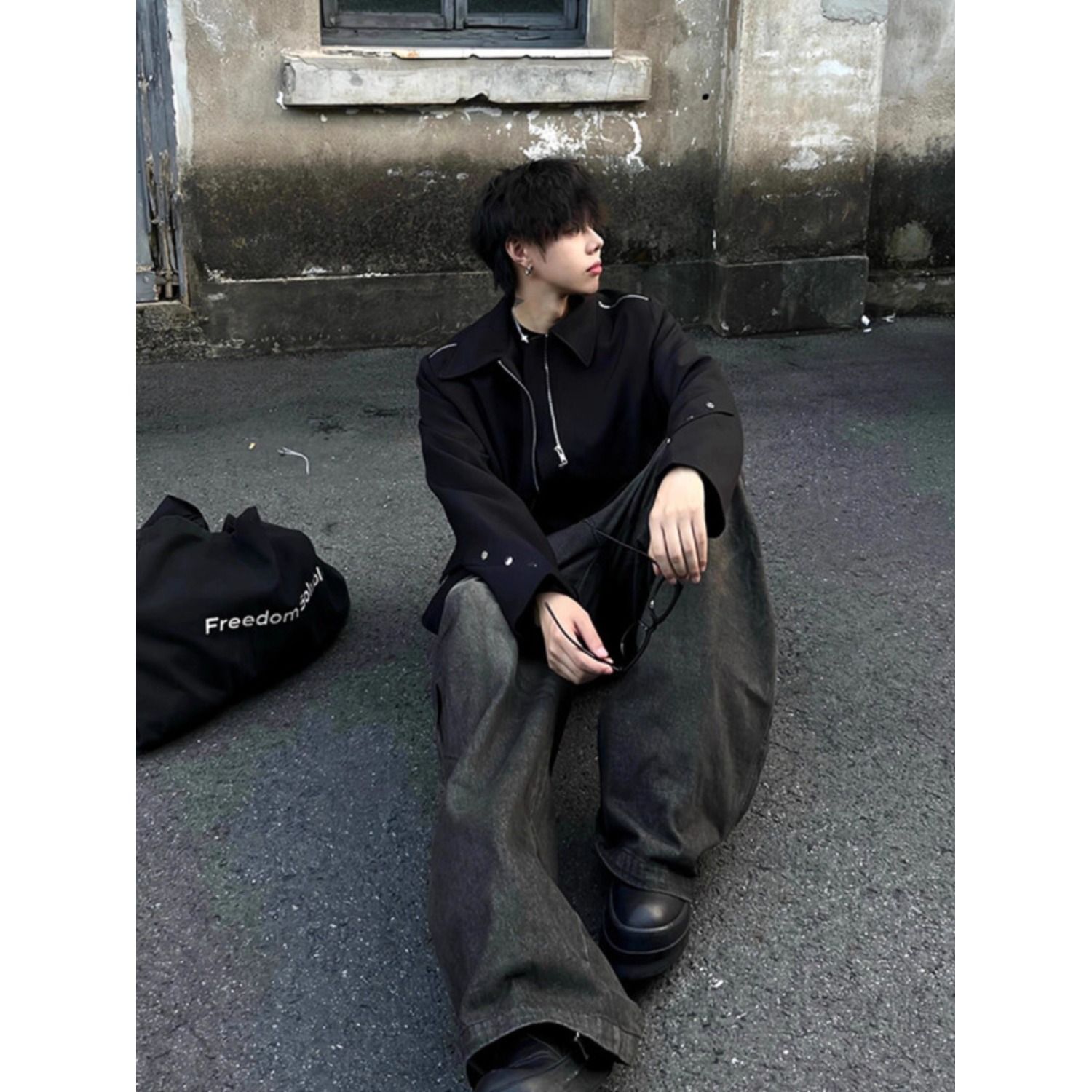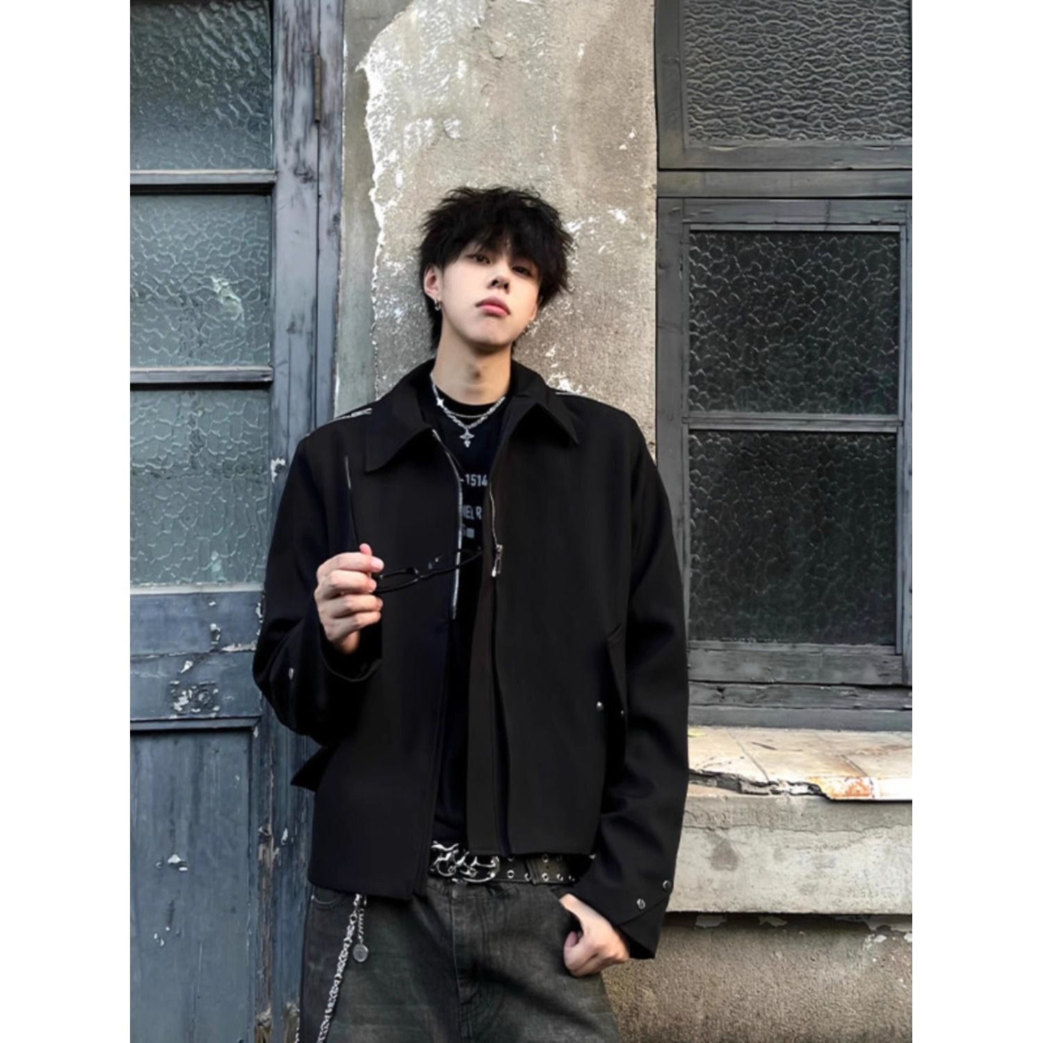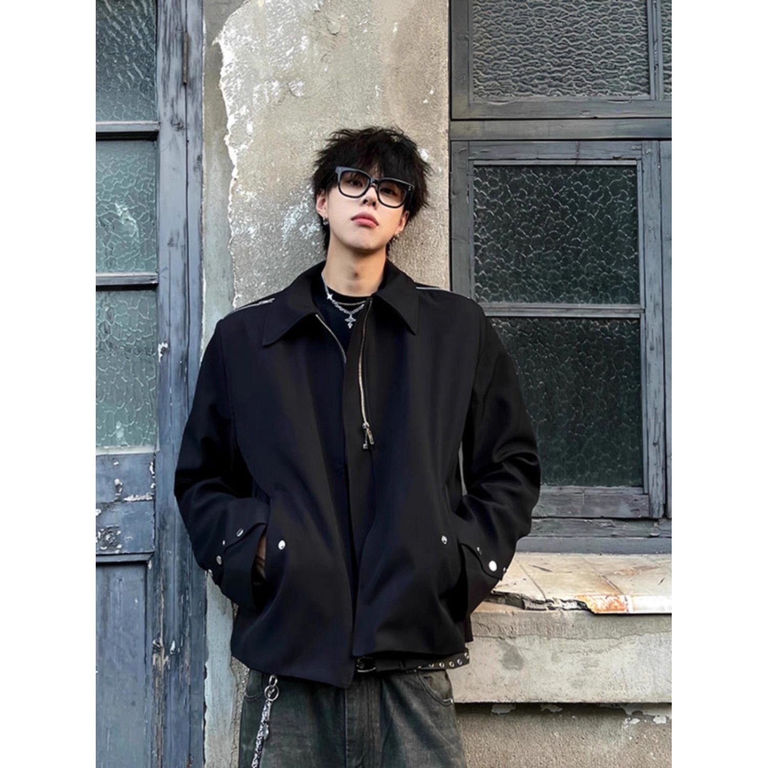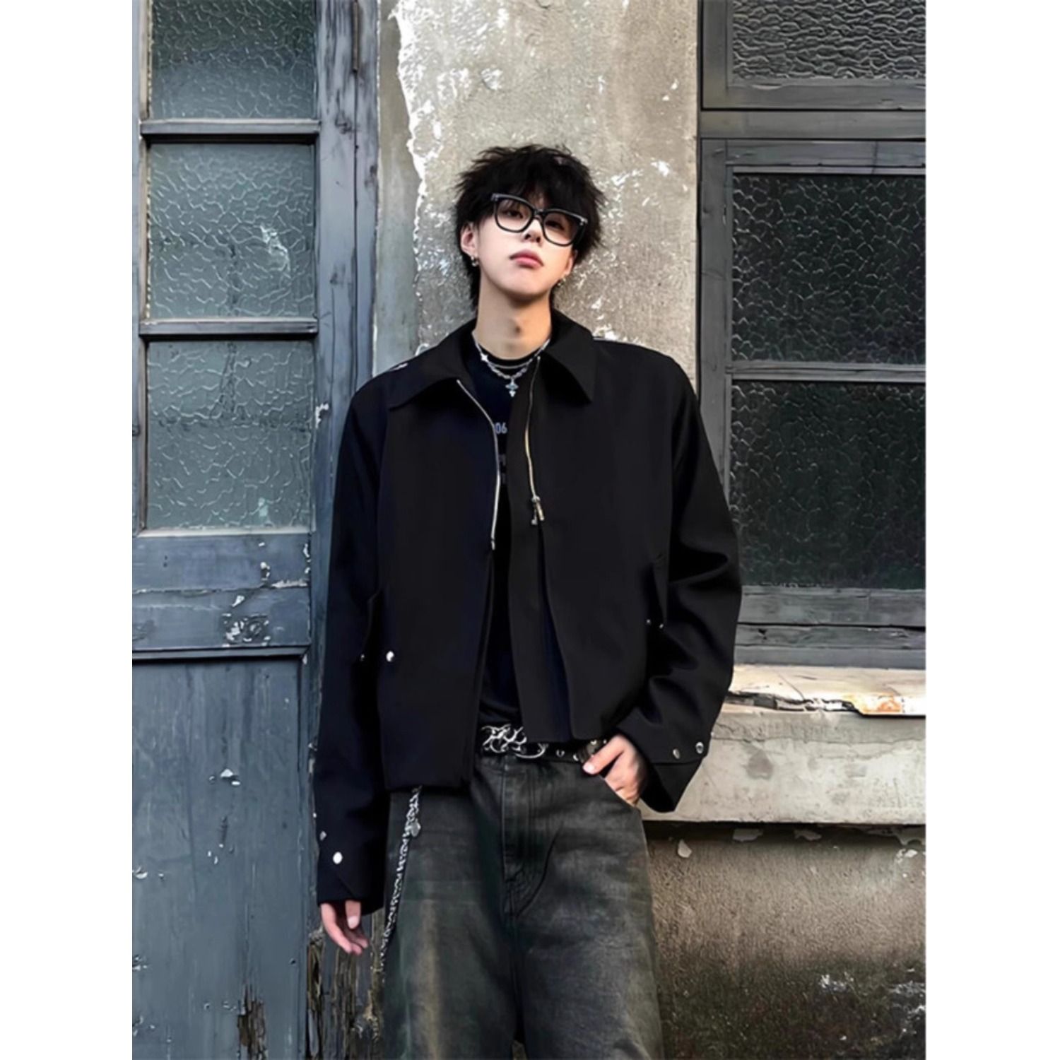 남성용 미국식 숏 클린핏 패딩 숄더 재킷, 가을과 겨울용, 다중 지퍼, 니치 디자인, 라펠, 오버숄더 재킷.