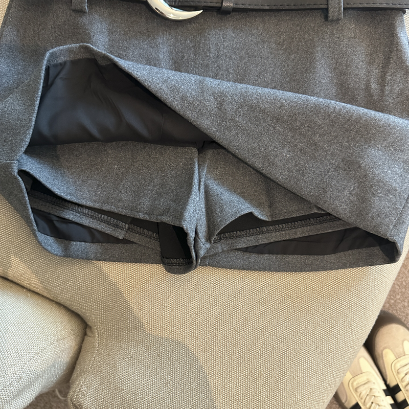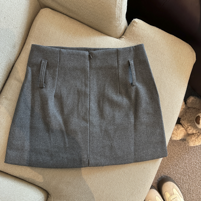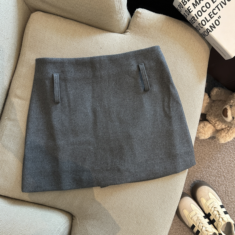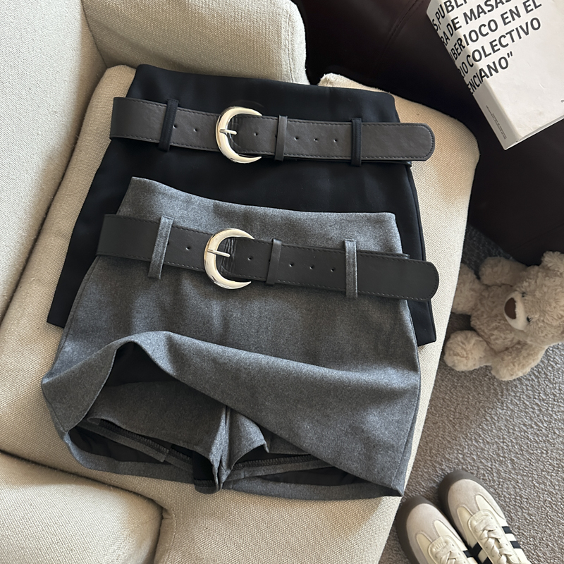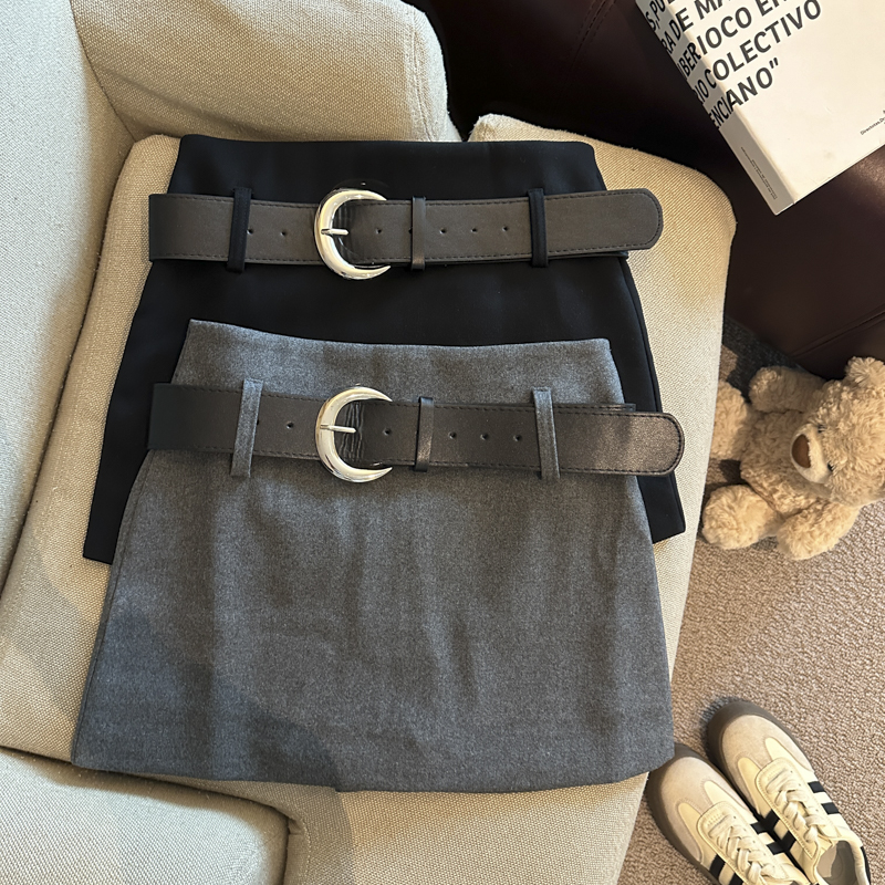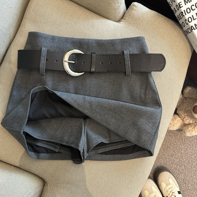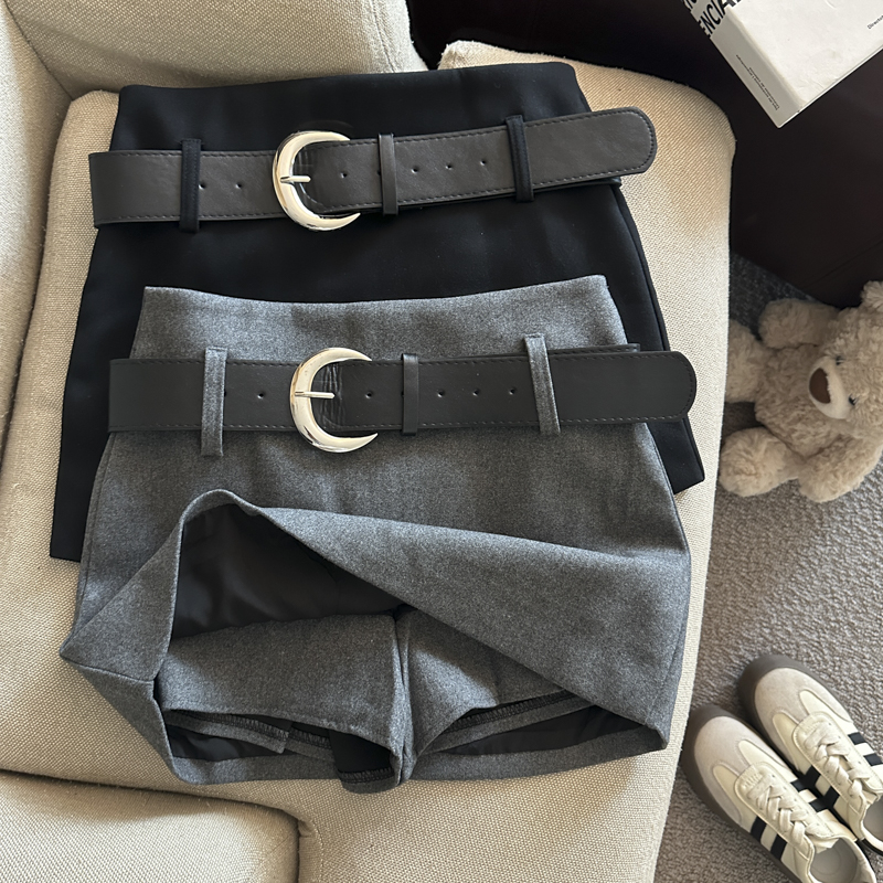 가을/겨울 울 하이웨이스트 미디 스커트, 노출 방지 스커트/바지, 벨트가 달린 여성용 섹시한 짧은 스커트의 실제 사진입니다.