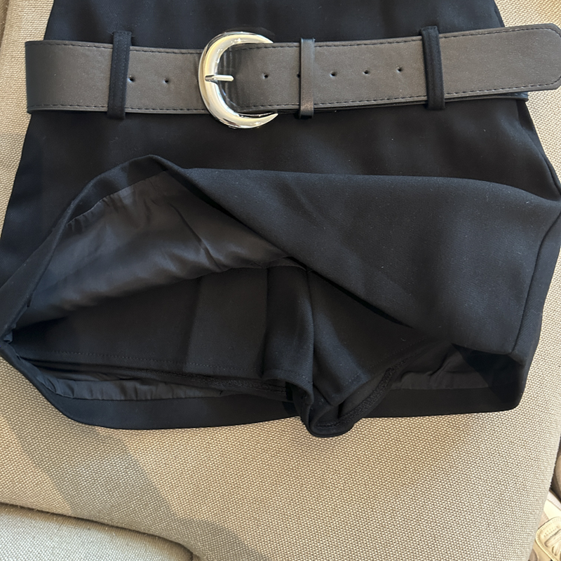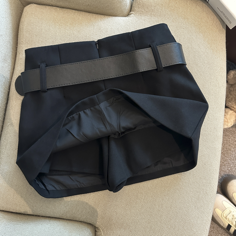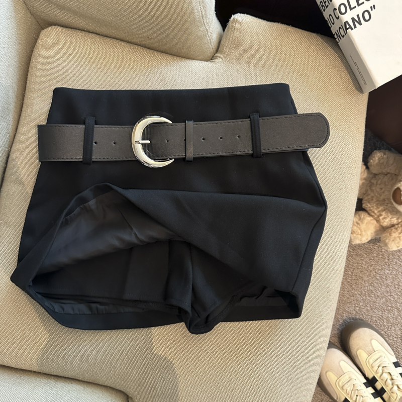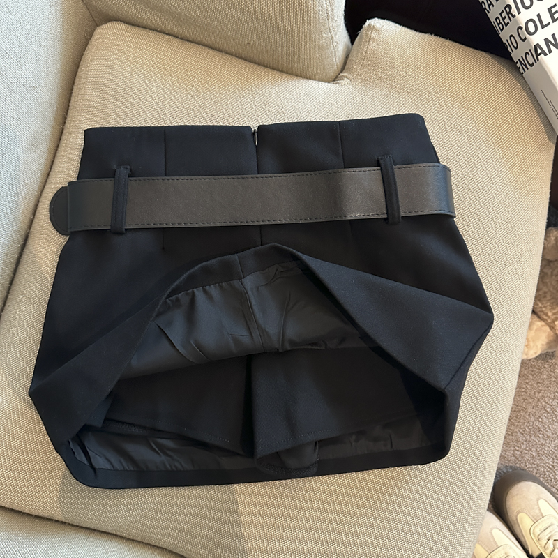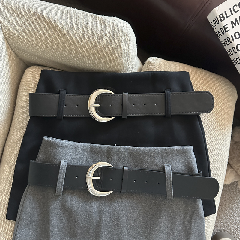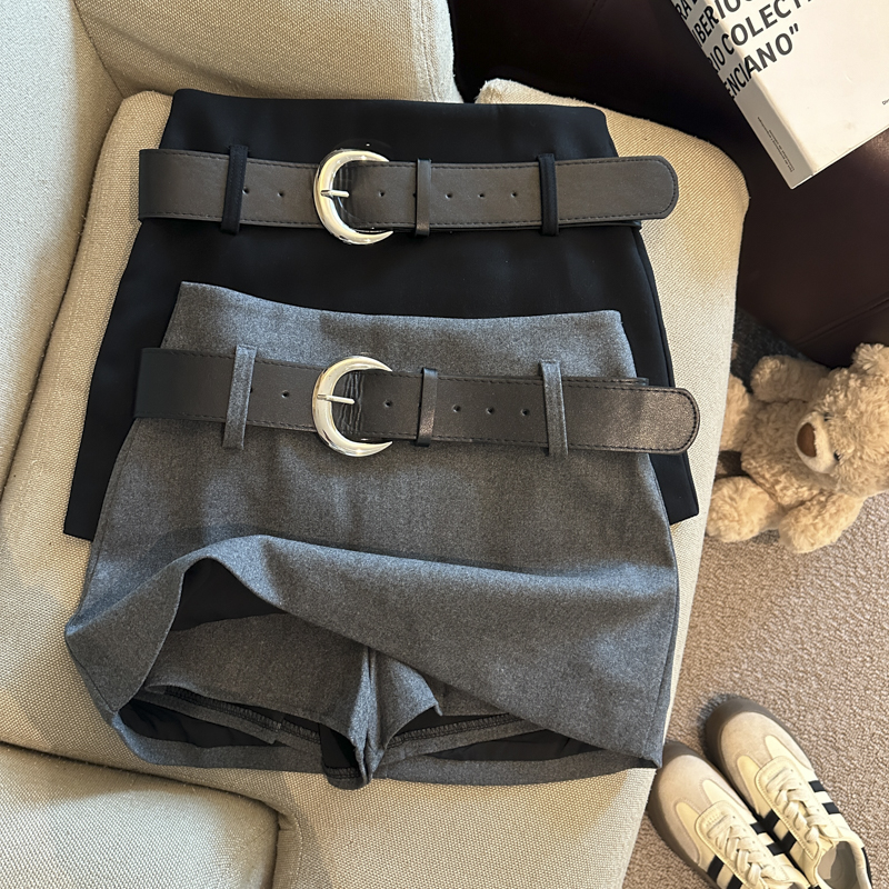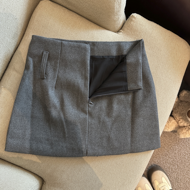 가을/겨울 울 하이웨이스트 미디 스커트, 노출 방지 스커트/바지, 벨트가 달린 여성용 섹시한 짧은 스커트의 실제 사진입니다.