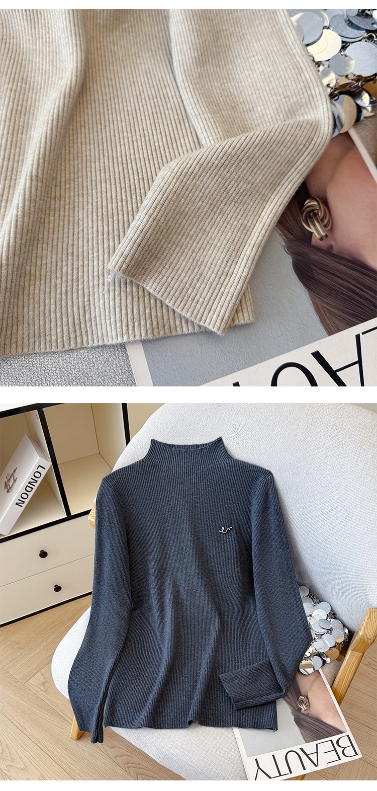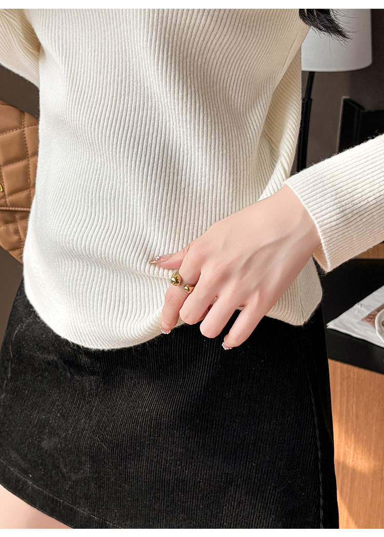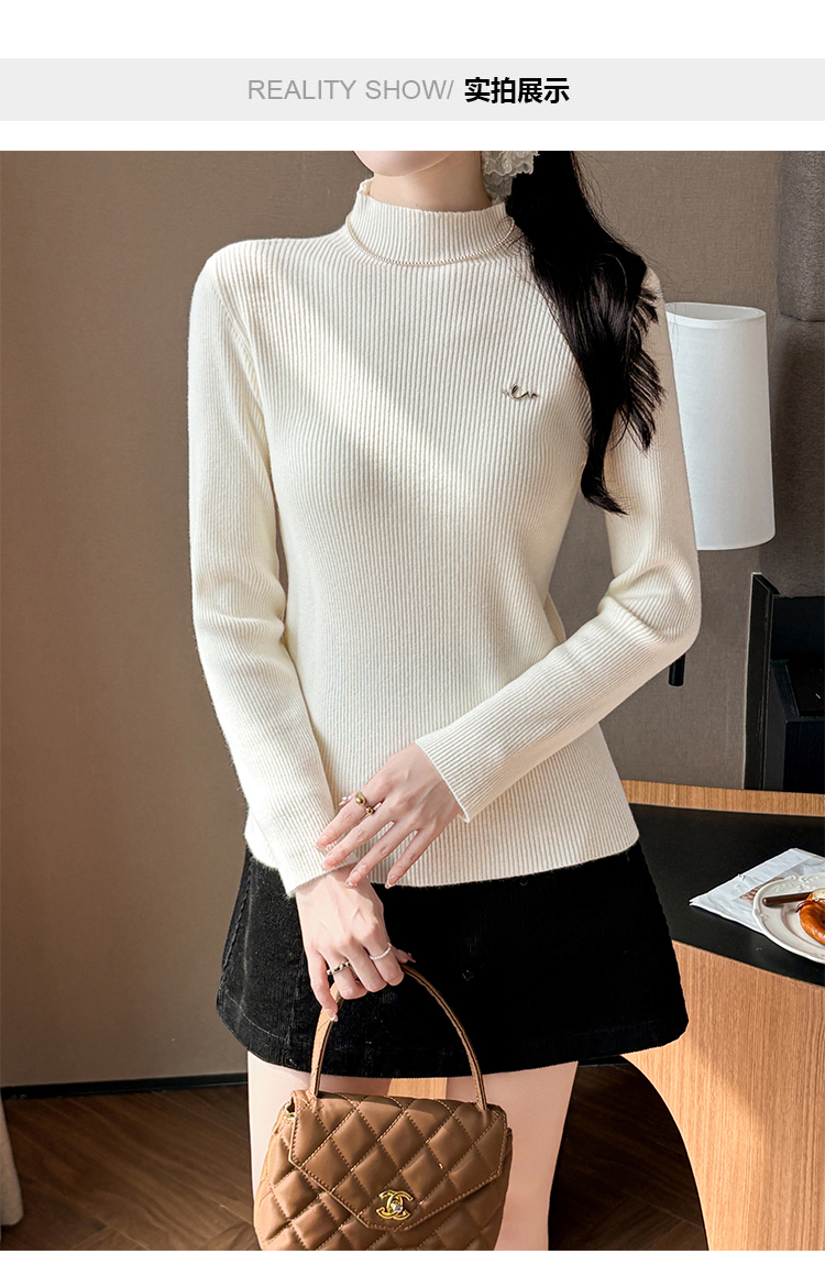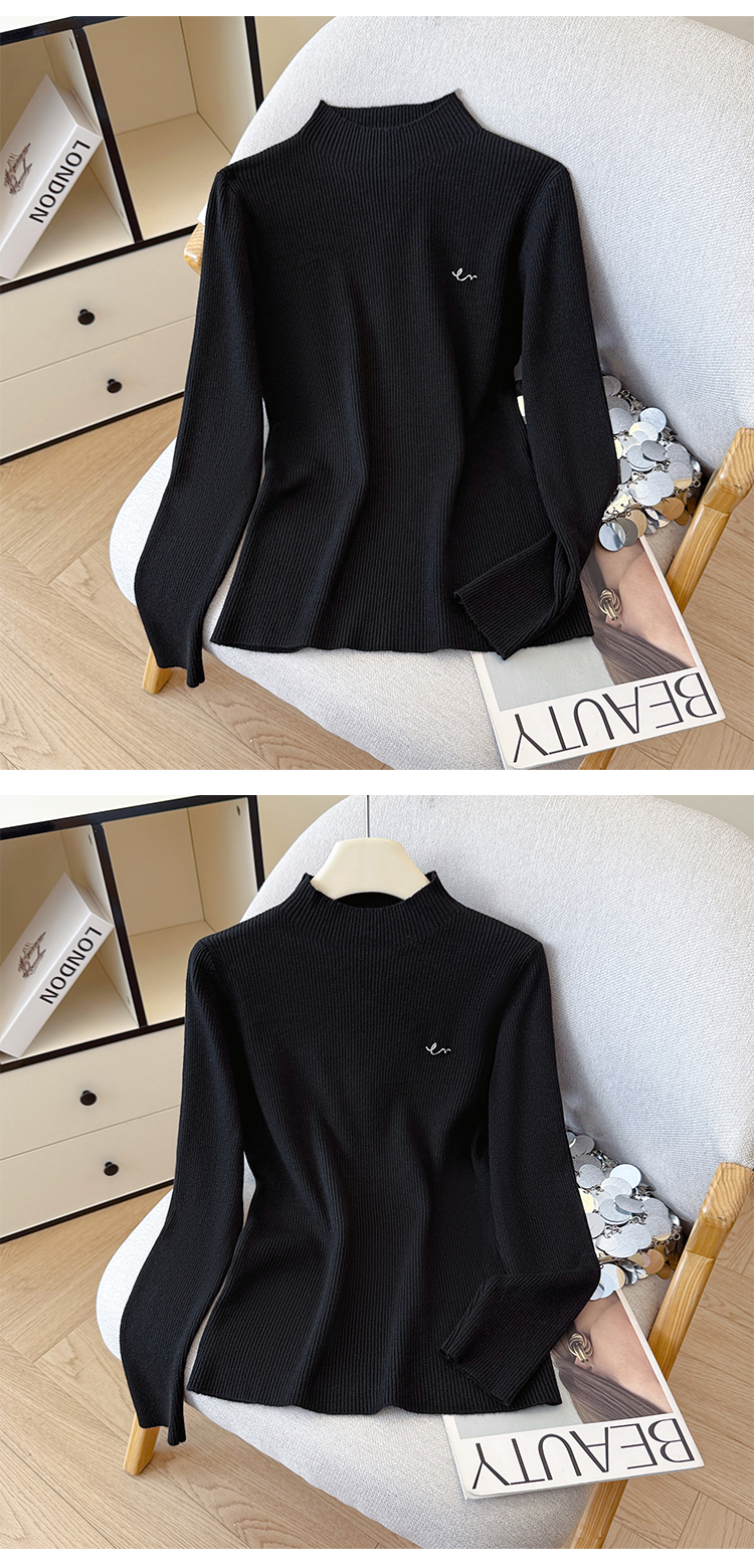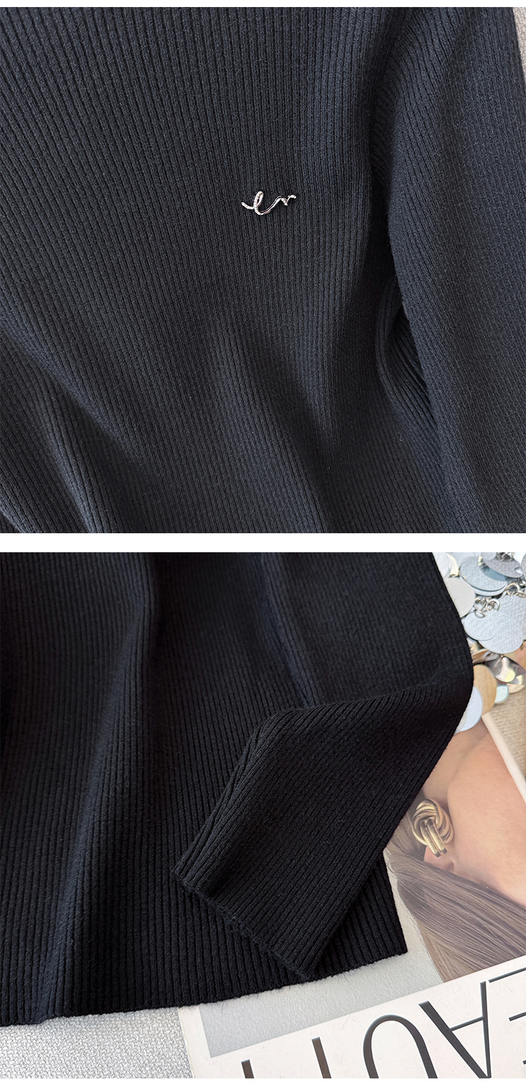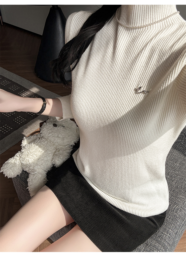 여성용 가을/겨울 터틀넥 스웨터, 디자이너 문자 스터드 탑, 라운드 넥, 긴 소매, 이너 니트웨어.