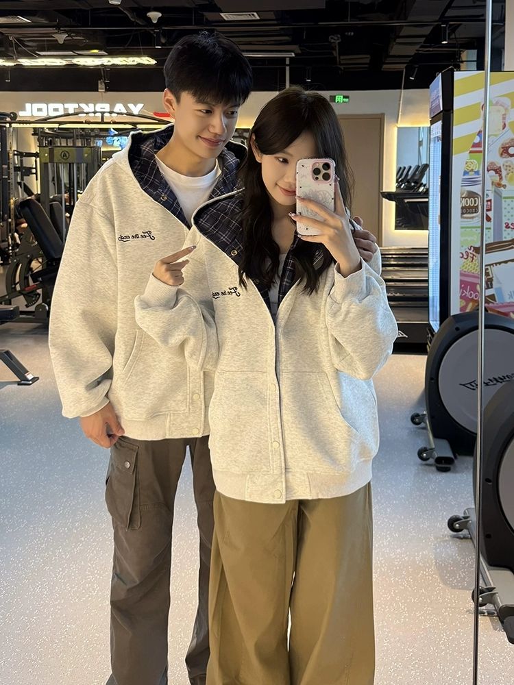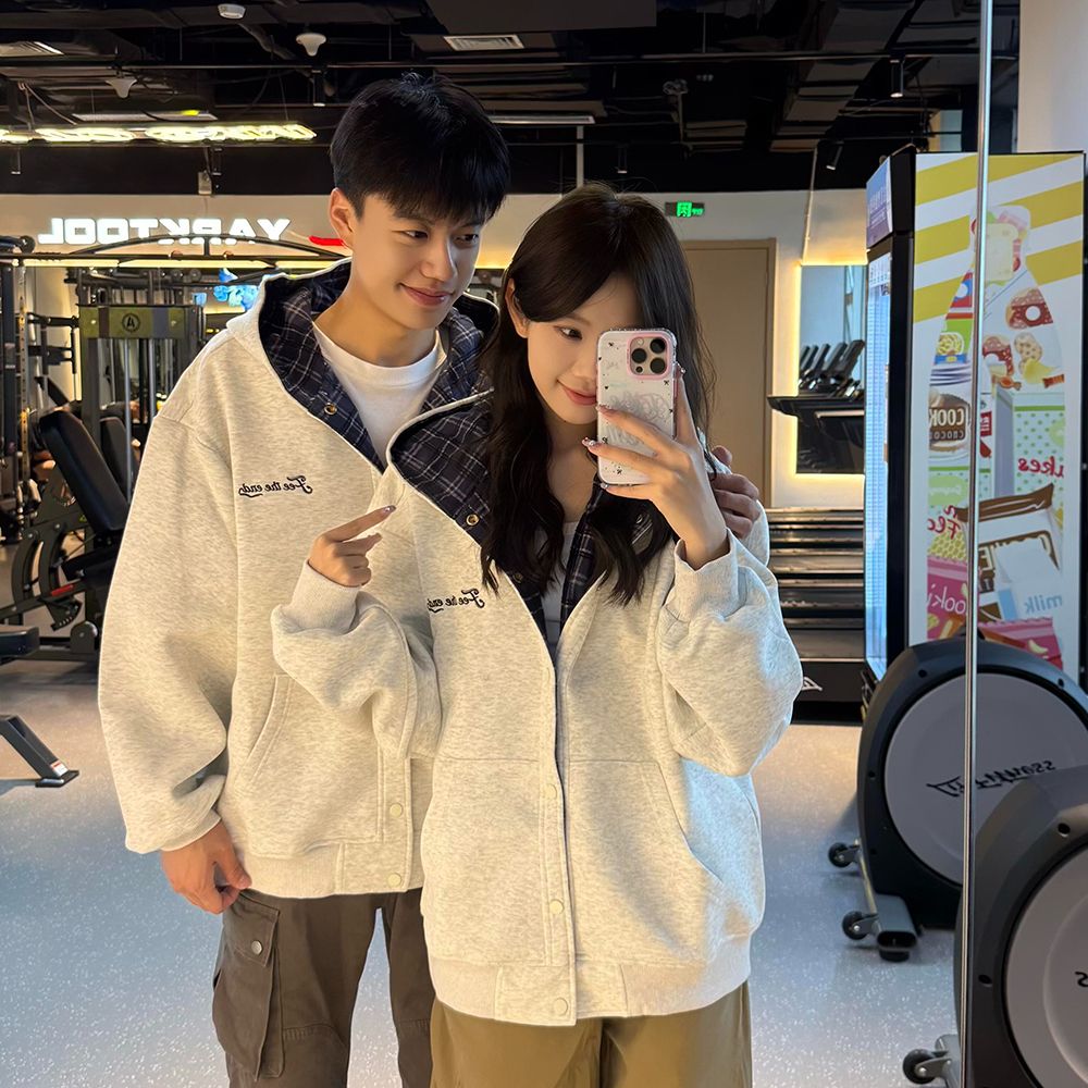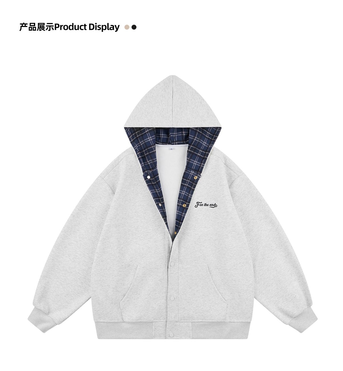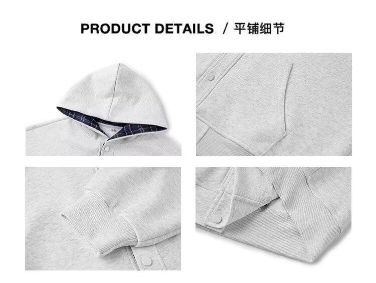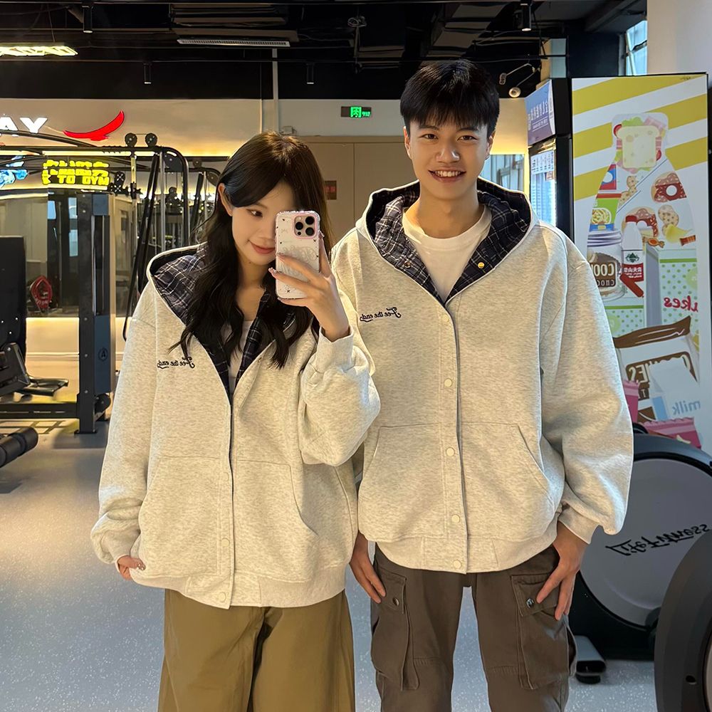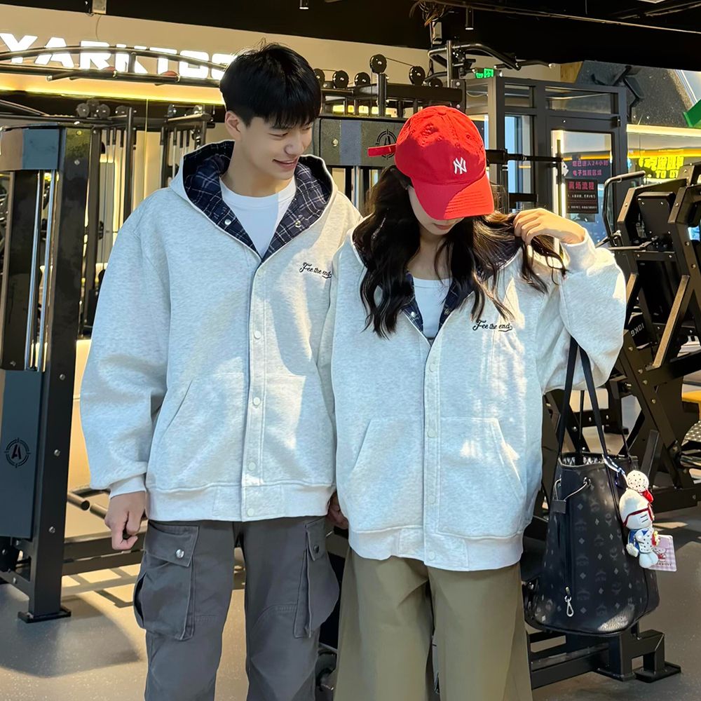 여성용 320g 코튼 합성 플레드 후드 카디건 스웨트셔츠, 봄, 가을 루즈핏 대학 스타일 커플 재킷