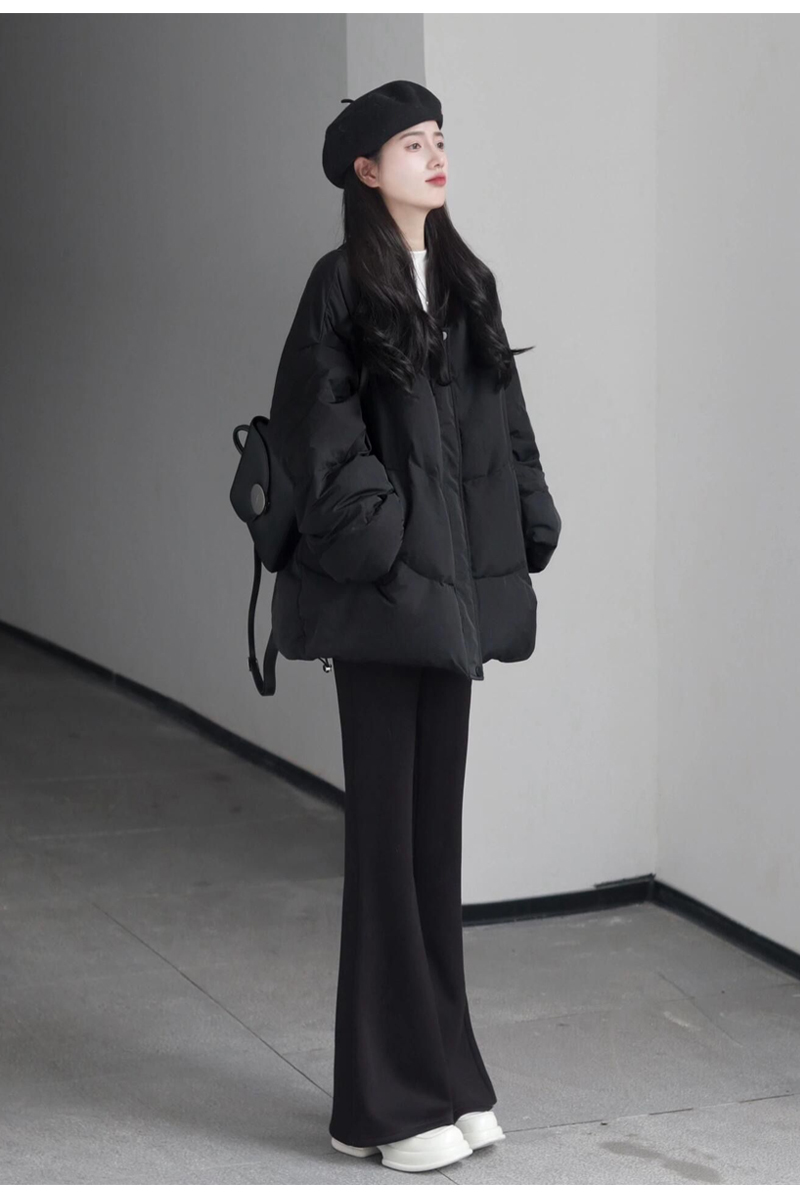 2025년 겨울 신상 여성용 짧은 스탠드 칼라 코튼 패딩 재킷, 패셔너블 캐주얼 쁘띠 스타일, 두껍고 따뜻한 플리스 코트
