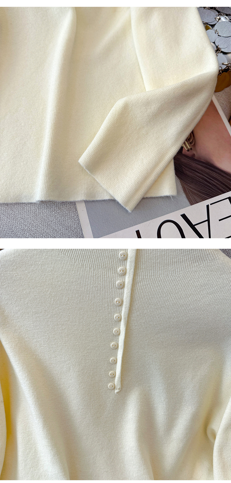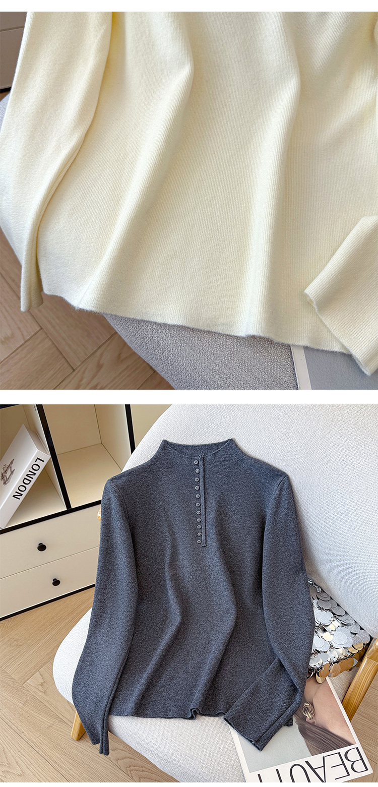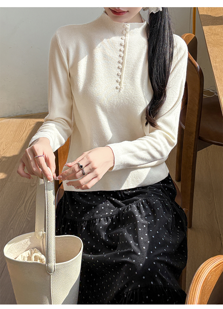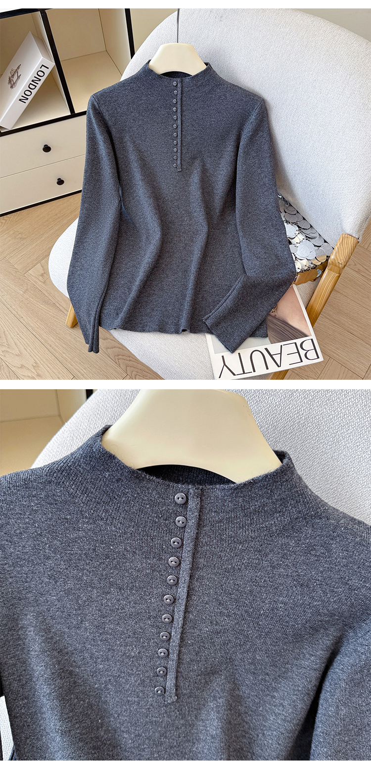 여성용 가을/겨울 터틀넥 스웨터, 디자이너 버튼다운 탑, 라운드 넥, 긴팔, 니트웨어.