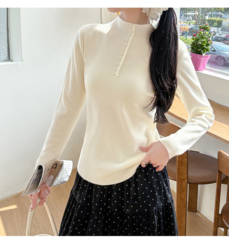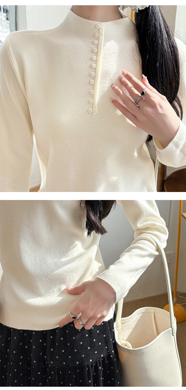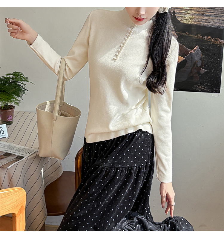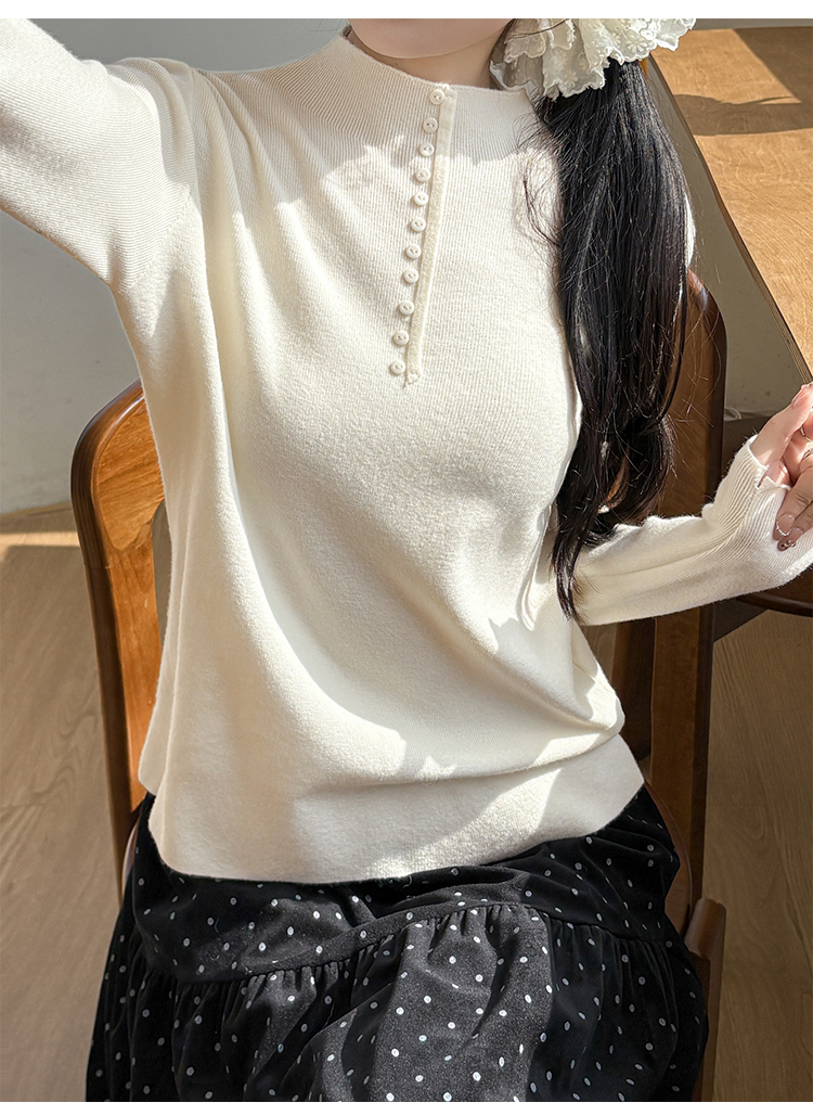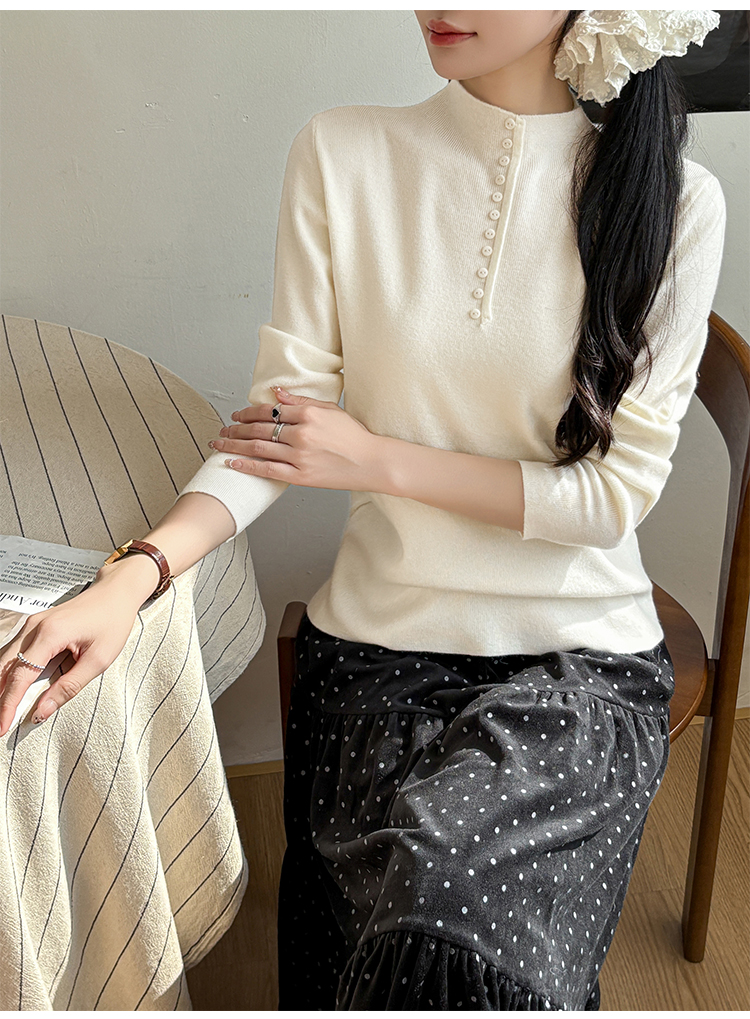 여성용 가을/겨울 터틀넥 스웨터, 디자이너 버튼다운 탑, 라운드 넥, 긴팔, 니트웨어.