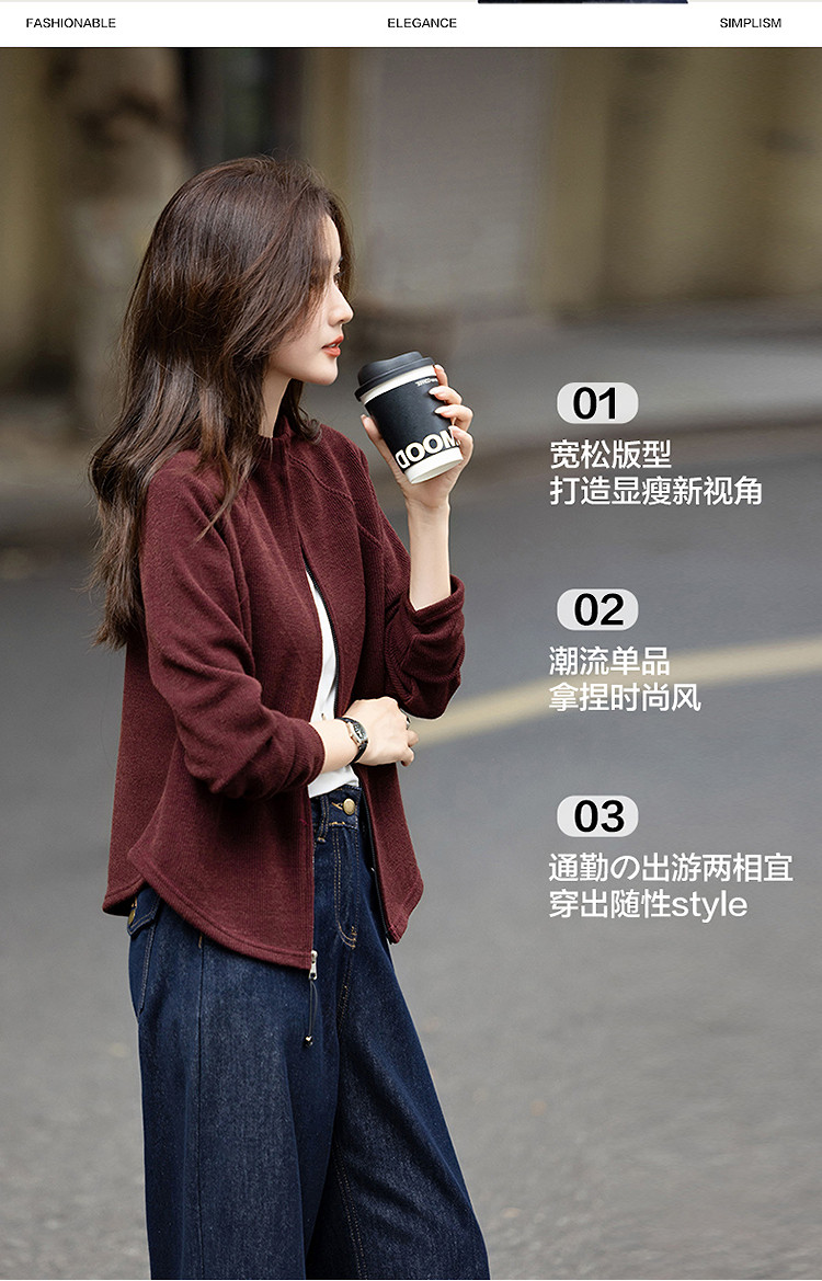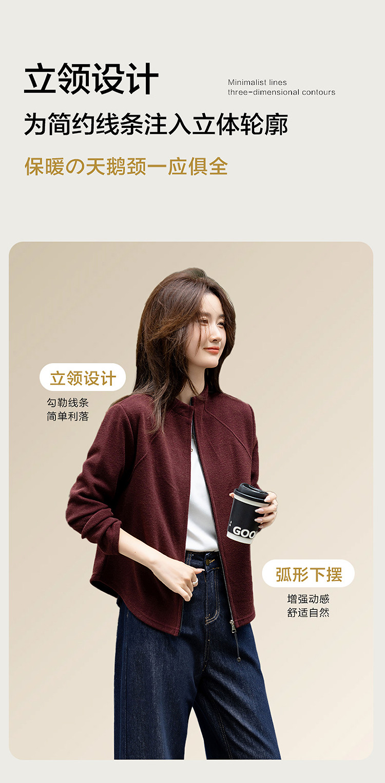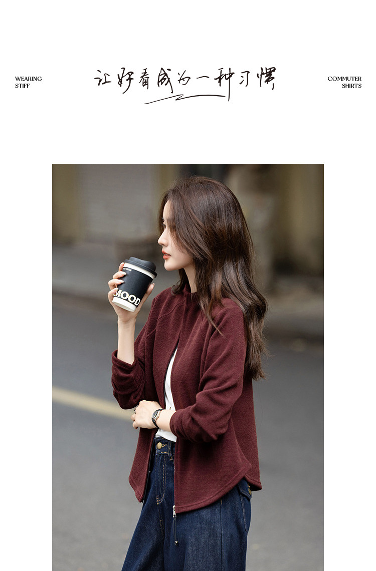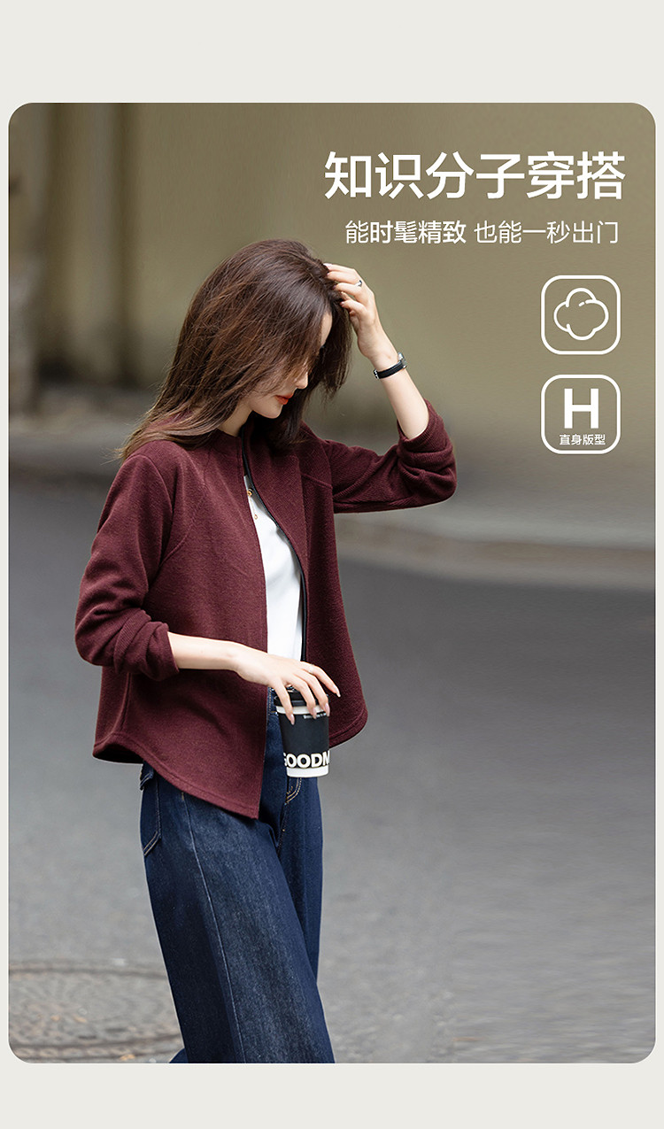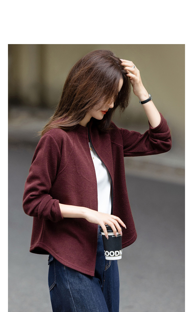 배송 완료. 가을 한국 스타일의 도시적인 스탠드 칼라 지퍼 긴팔 루즈핏 여성 재킷으로, 아담한 체형의 여성에게 적합합니다.