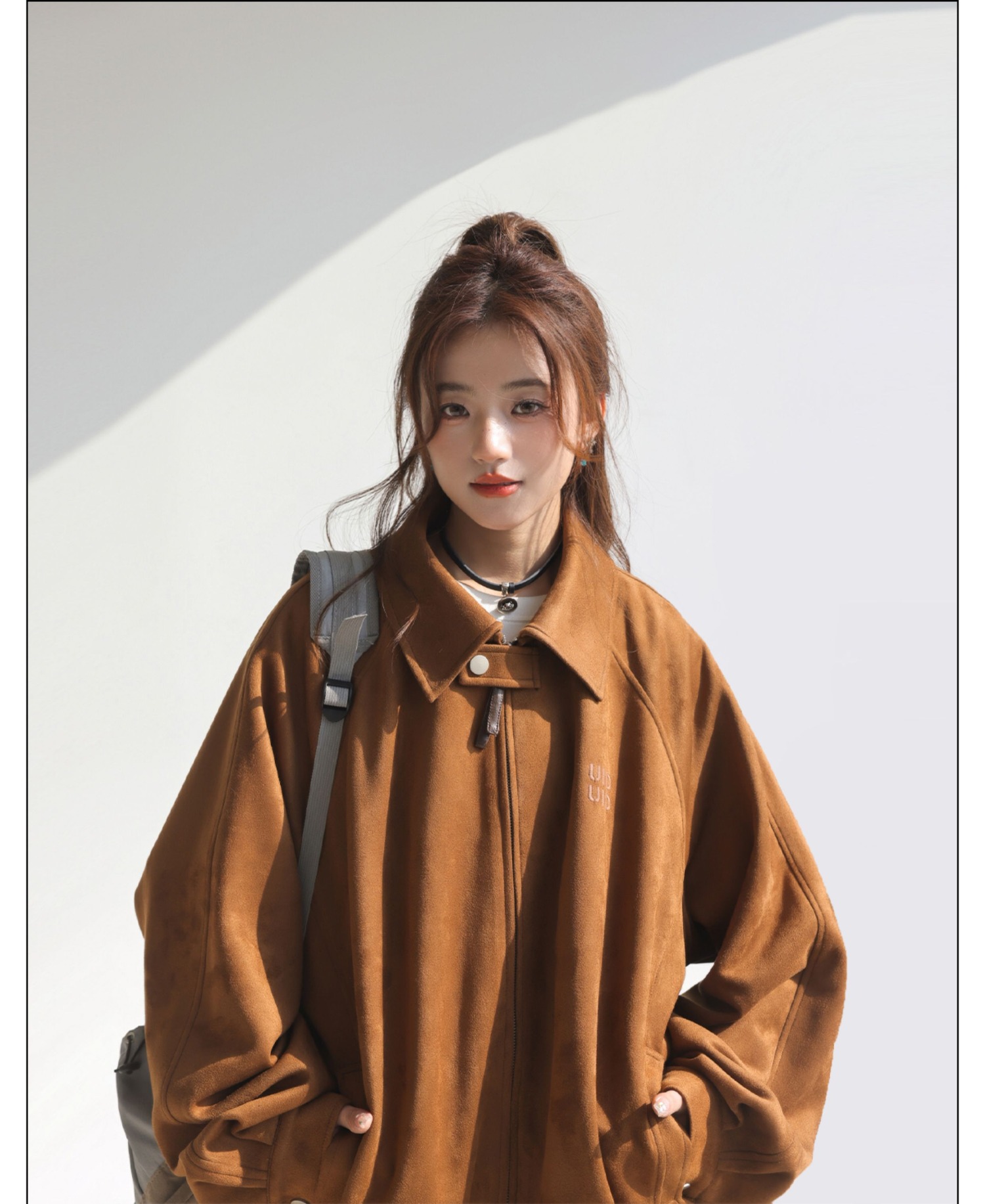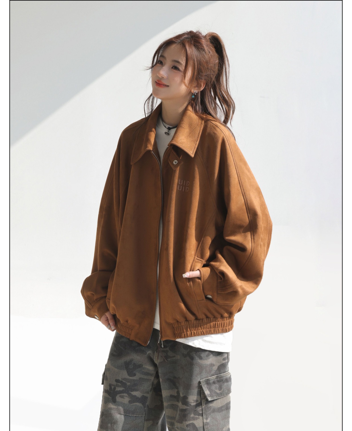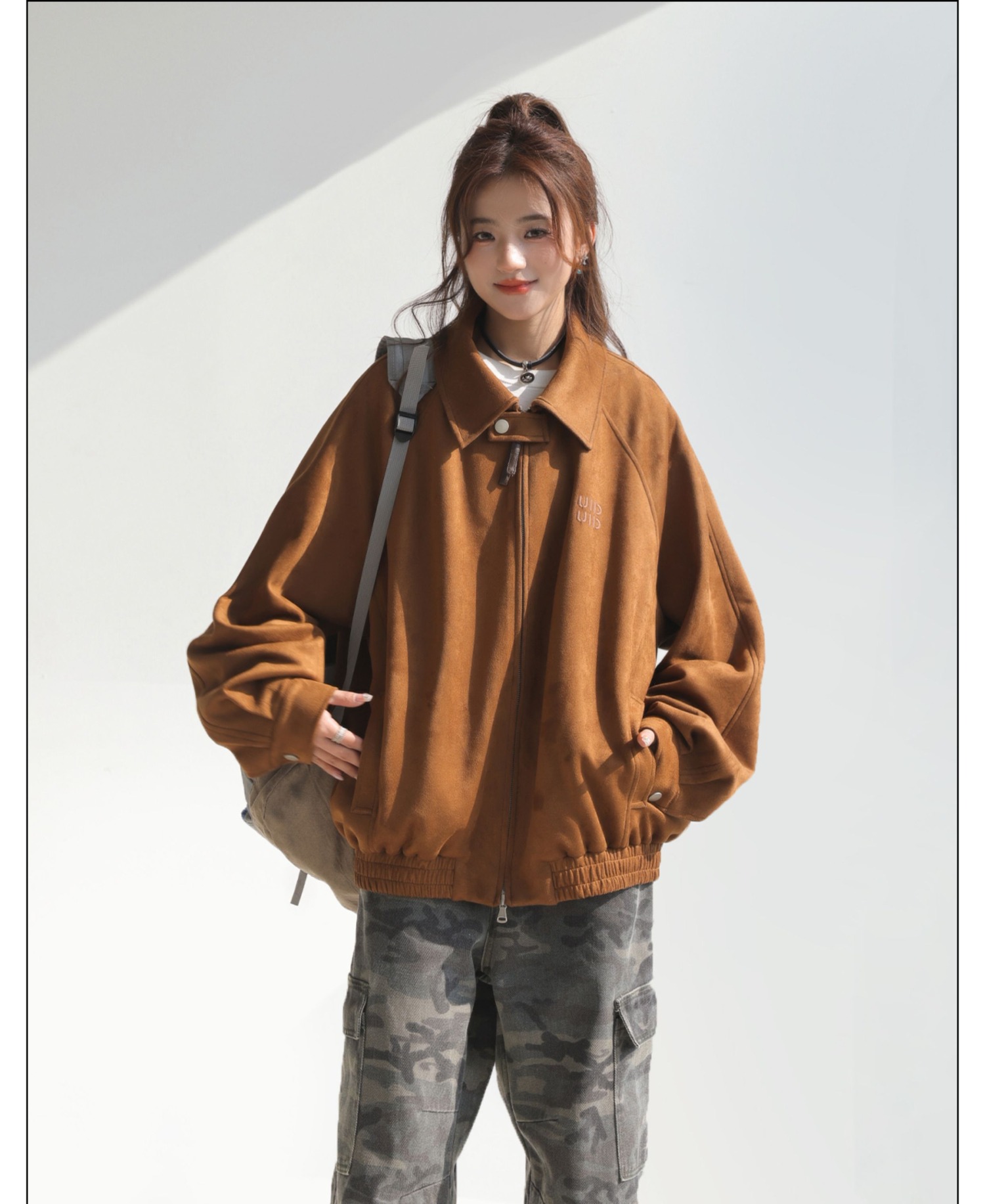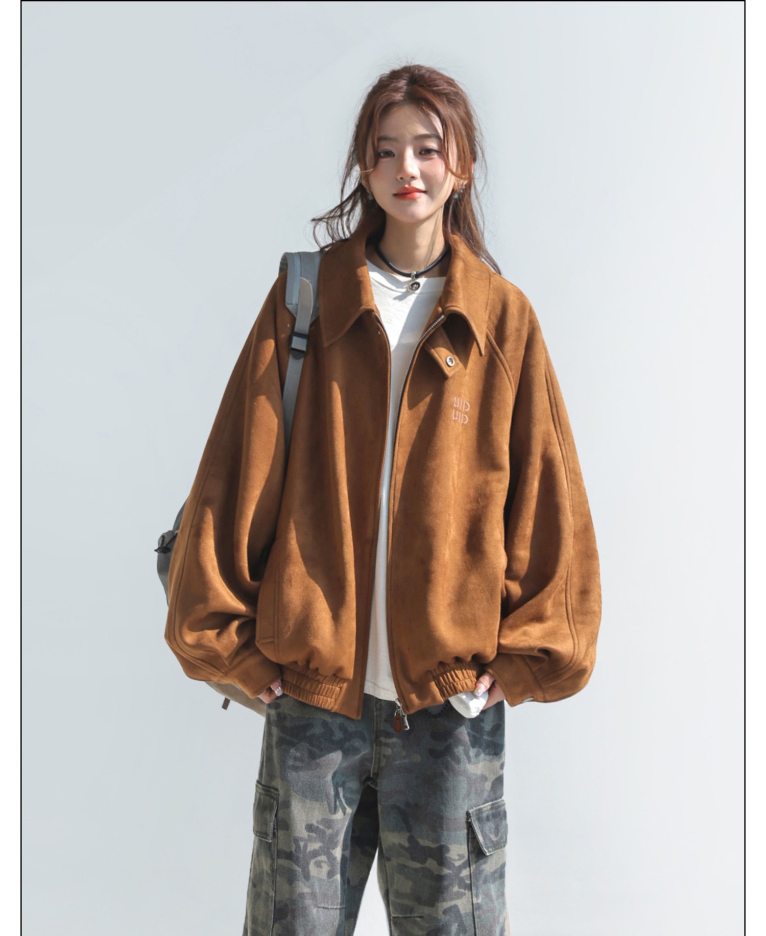 여성용 아메리칸 레트로 스웨이드 재킷, 봄/가을에 적합, 편안한 한국풍 시크 스타일, 독특한 레터링 자수 라펠 커플 재킷.