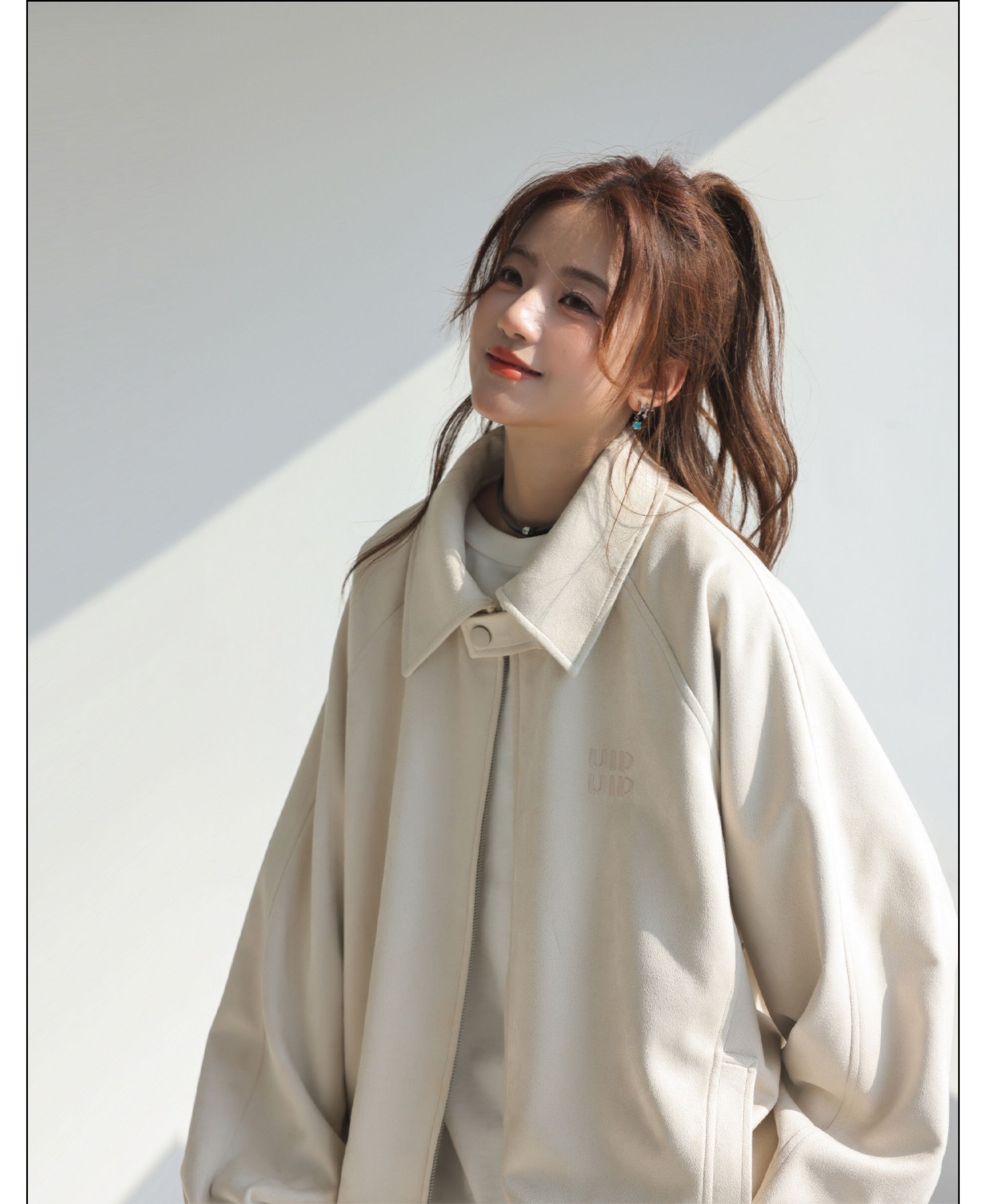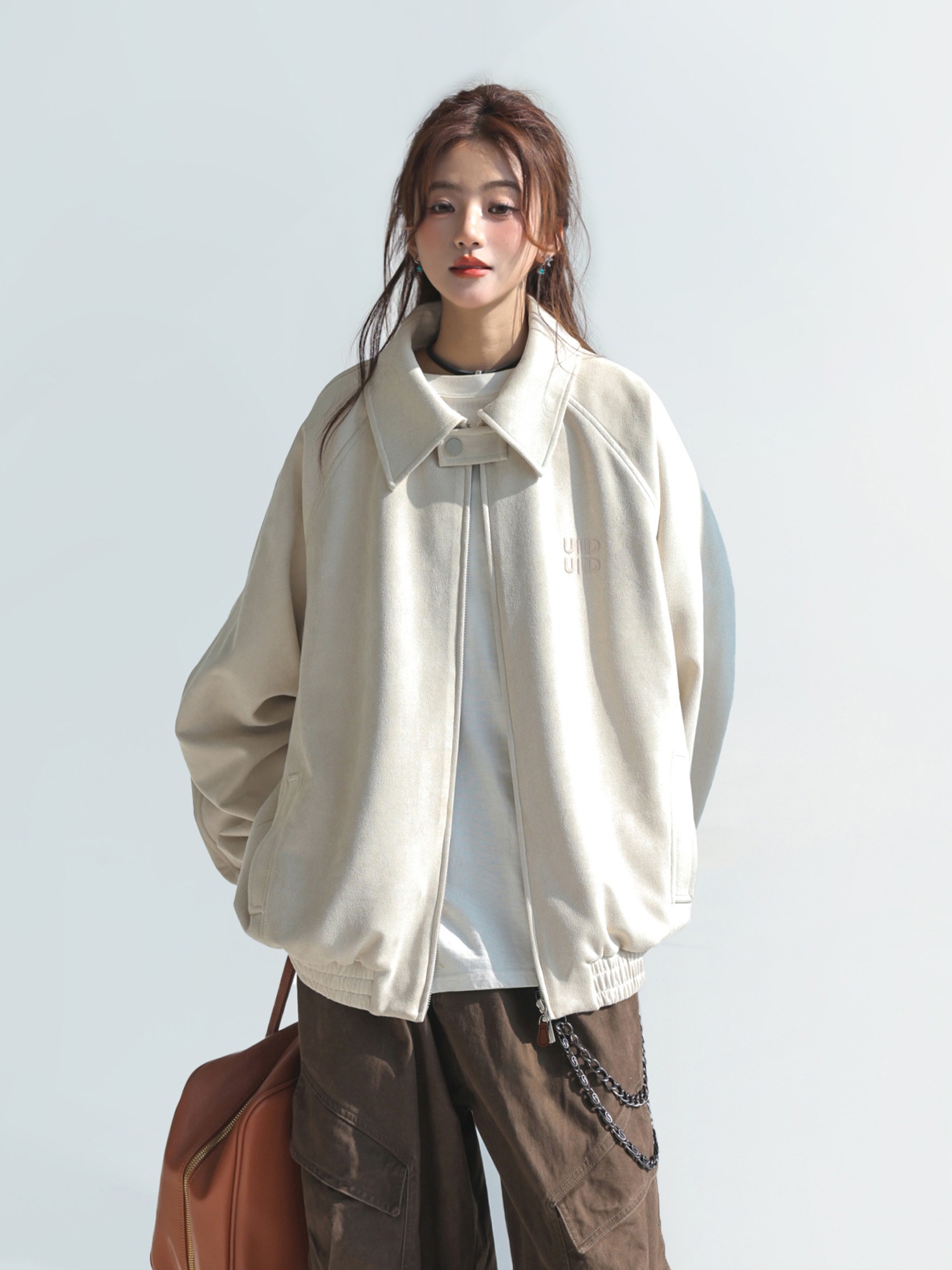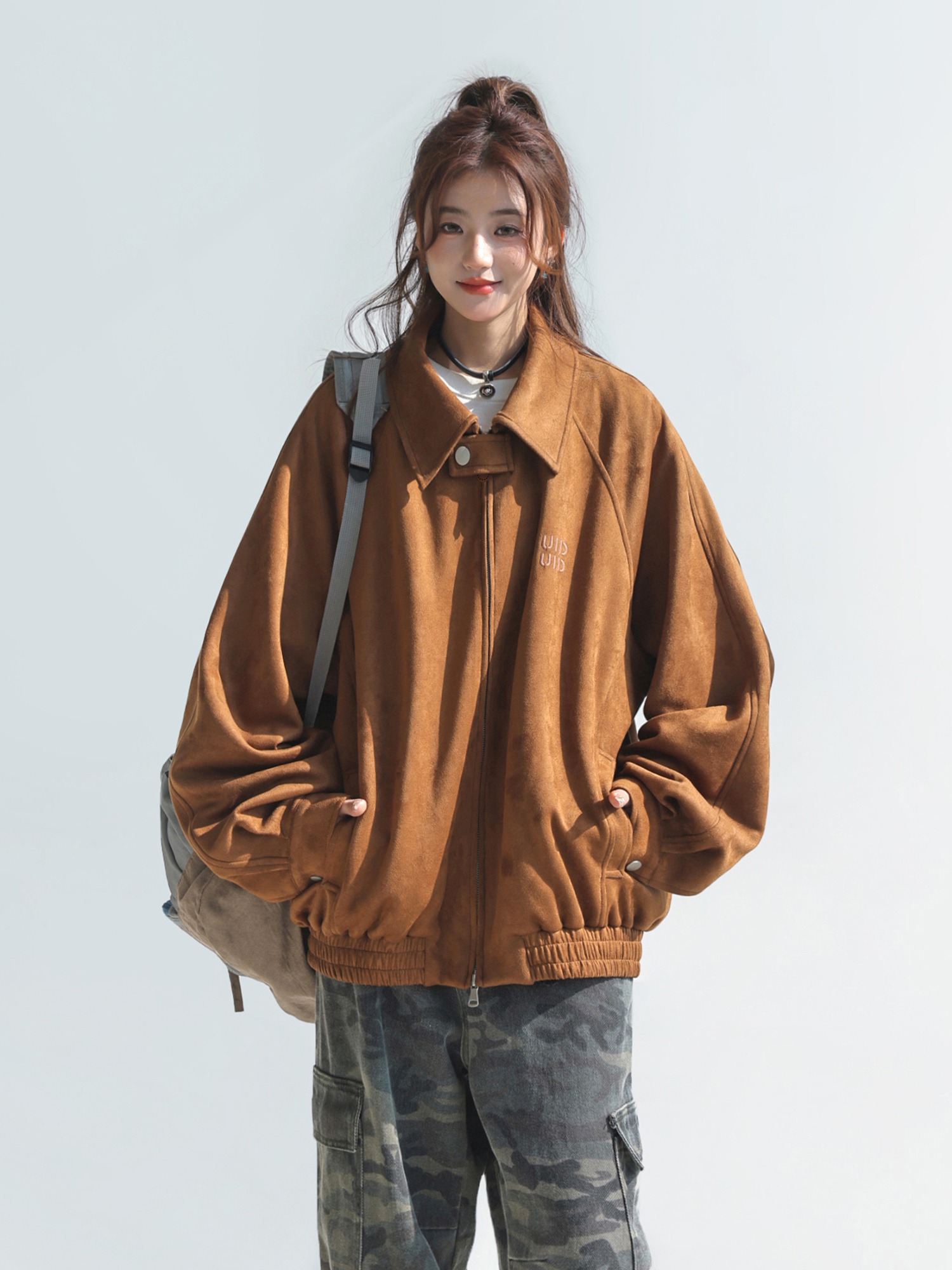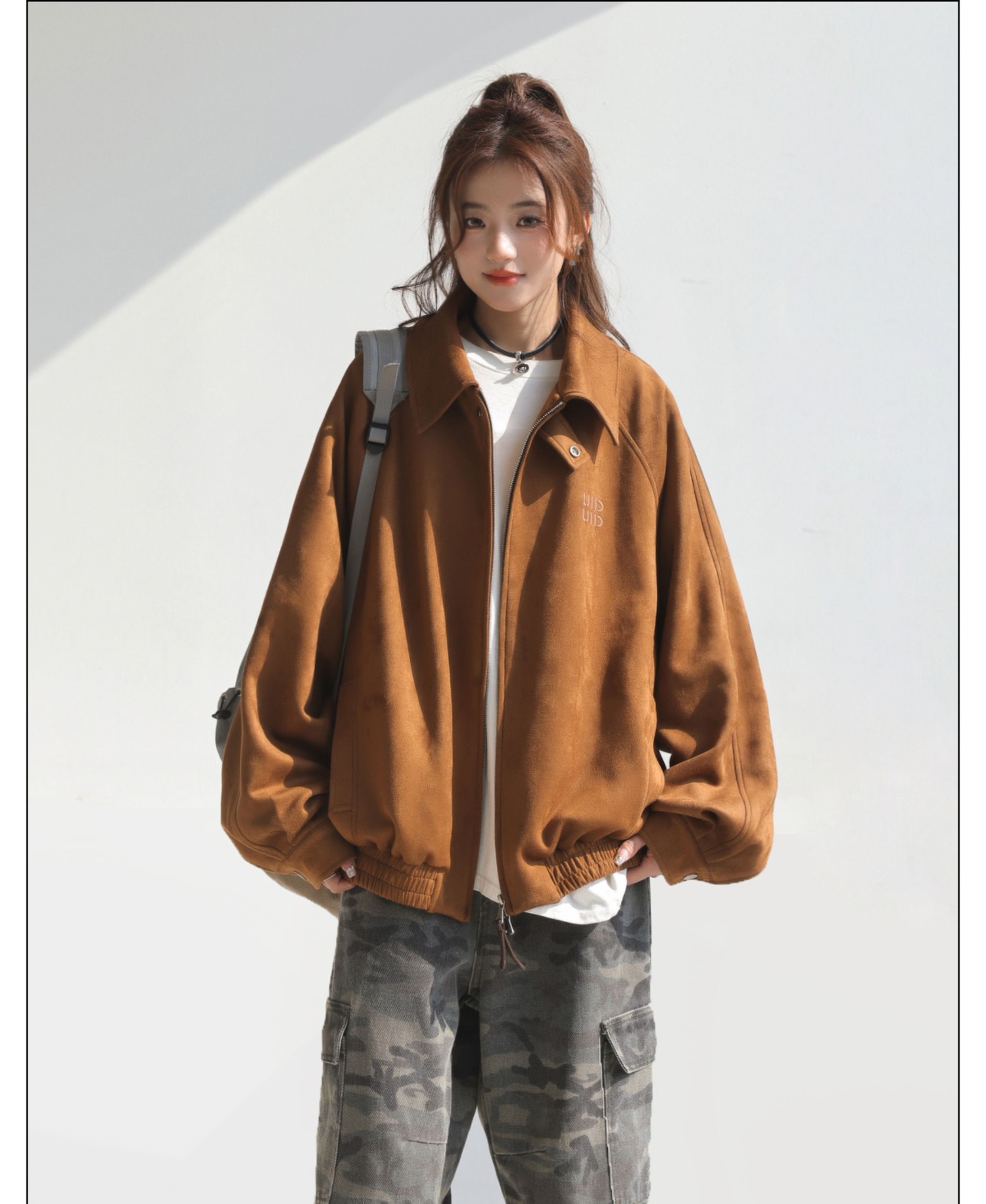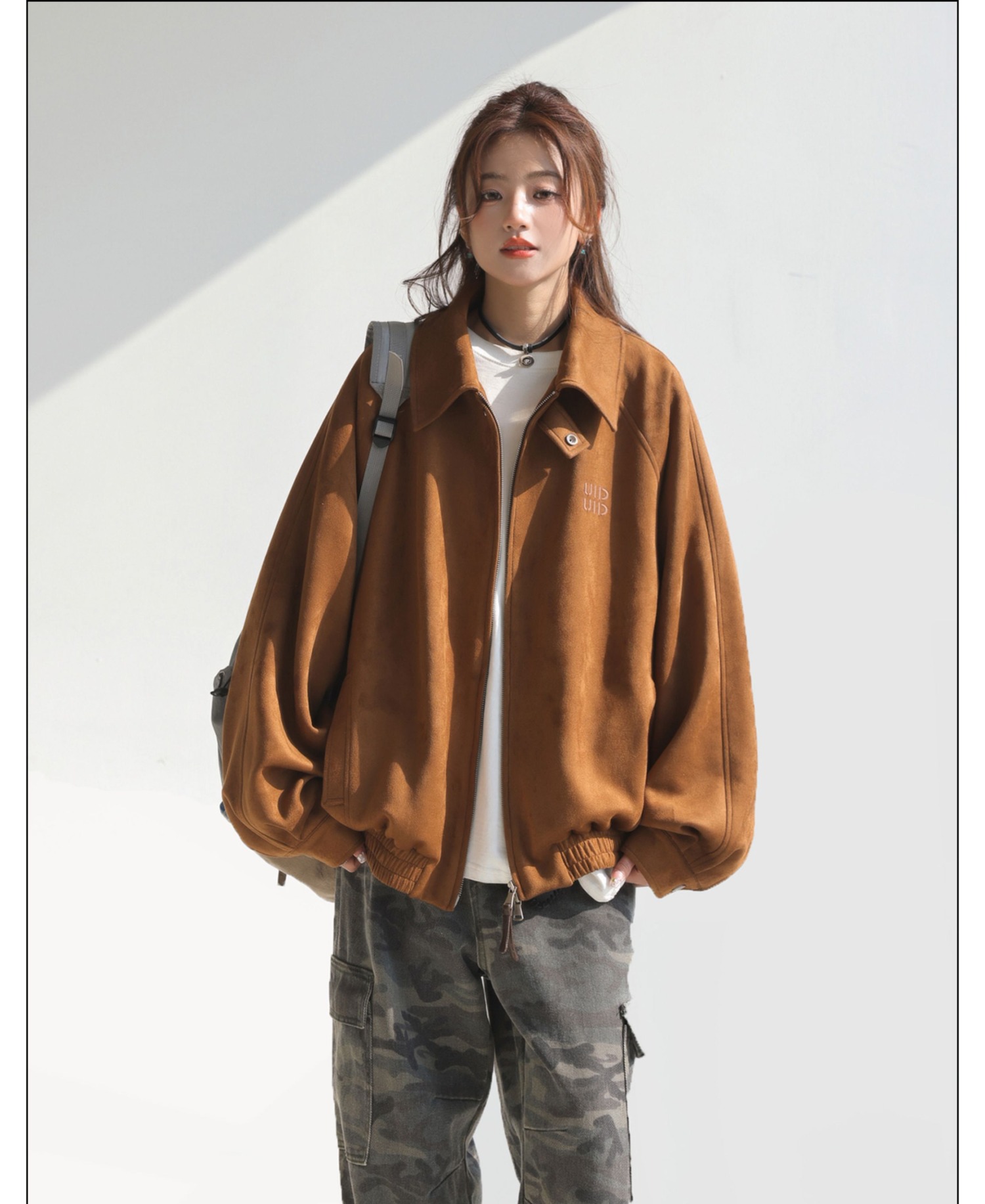 여성용 아메리칸 레트로 스웨이드 재킷, 봄/가을에 적합, 편안한 한국풍 시크 스타일, 독특한 레터링 자수 라펠 커플 재킷.