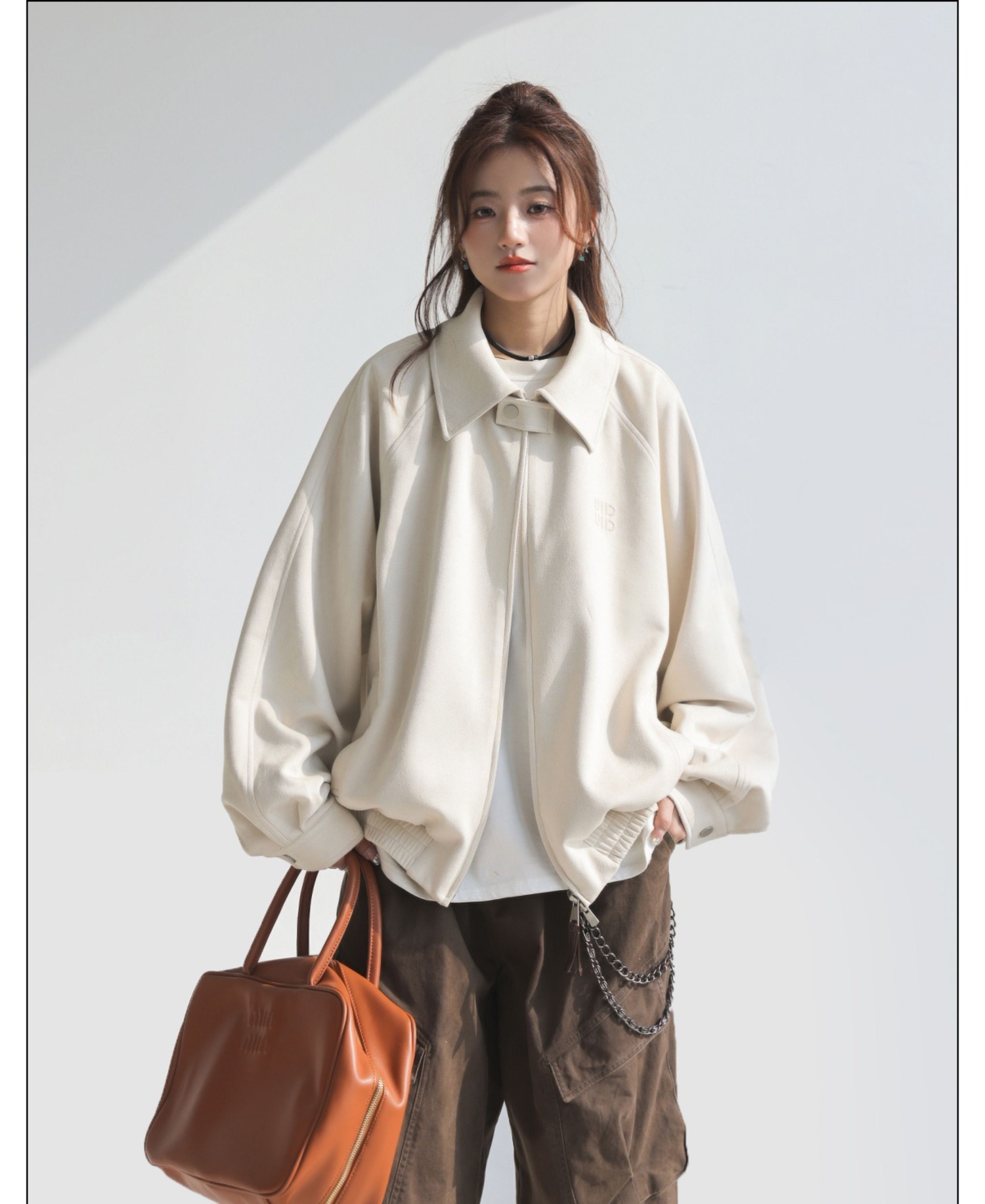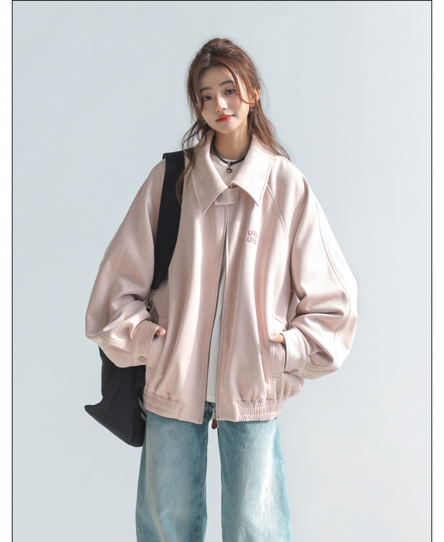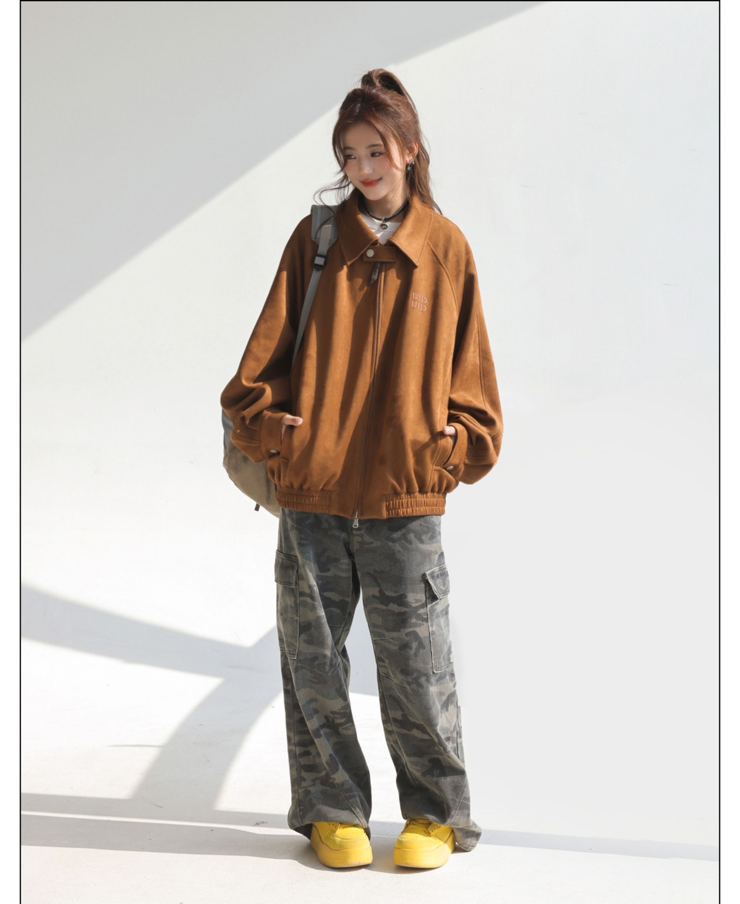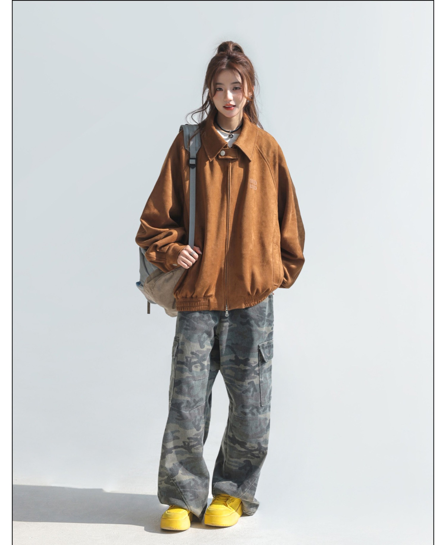 여성용 아메리칸 레트로 스웨이드 재킷, 봄/가을에 적합, 편안한 한국풍 시크 스타일, 독특한 레터링 자수 라펠 커플 재킷.