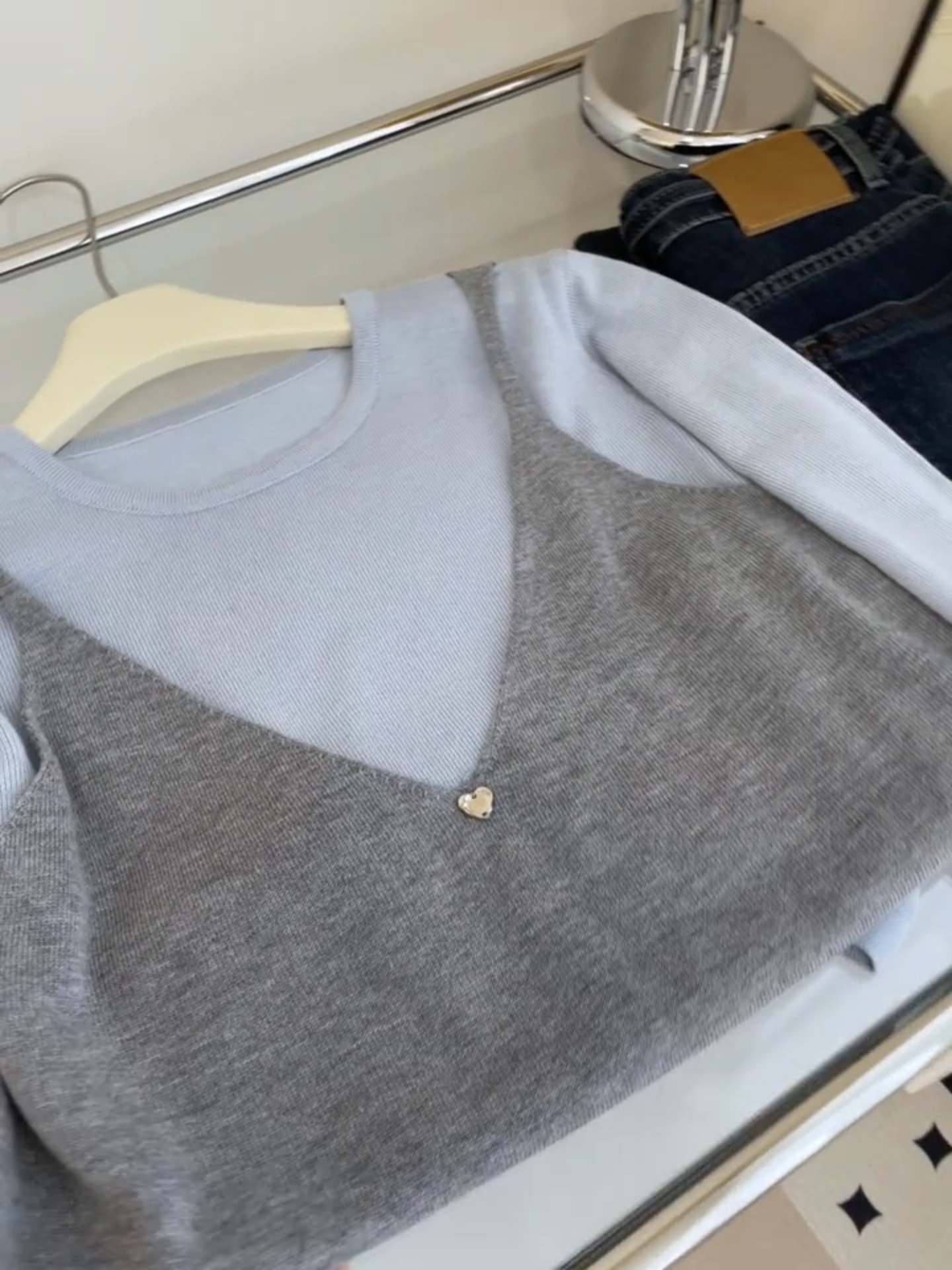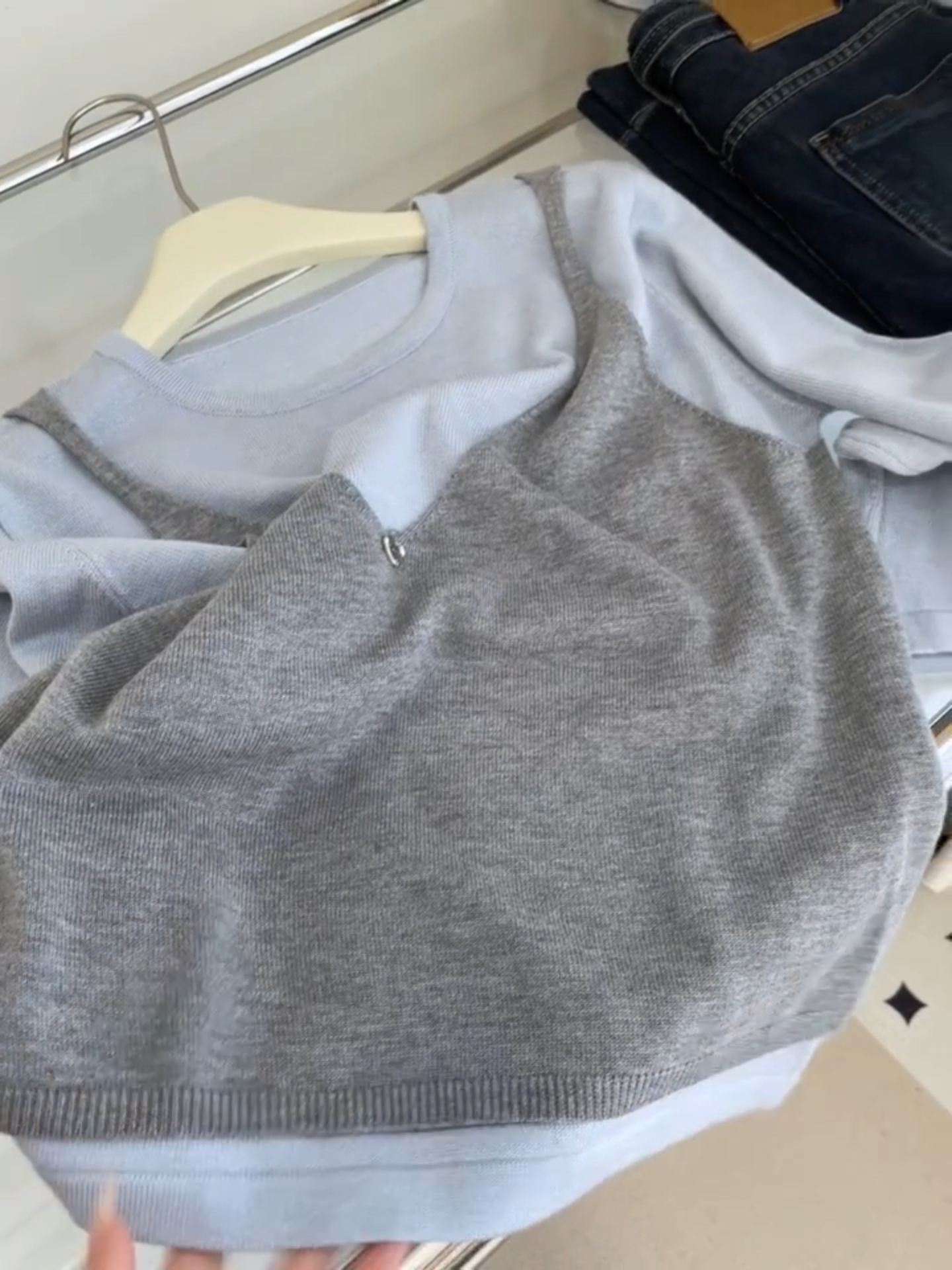 2025 가을/겨울 신상 한국 스타일 니트 베스트 캐미솔 투피스 세트 - 크루넥 스웨터 베스트 (단품으로도 착용 가능)