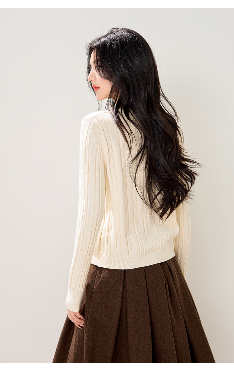 여성용 신상 가을/겨울 베이스 레이어 스웨터, 풀오버 긴팔 솔리드 컬러 한국 스타일의 레트로 트위스트 니트 반팔 스웨터의 실제 사진입니다.