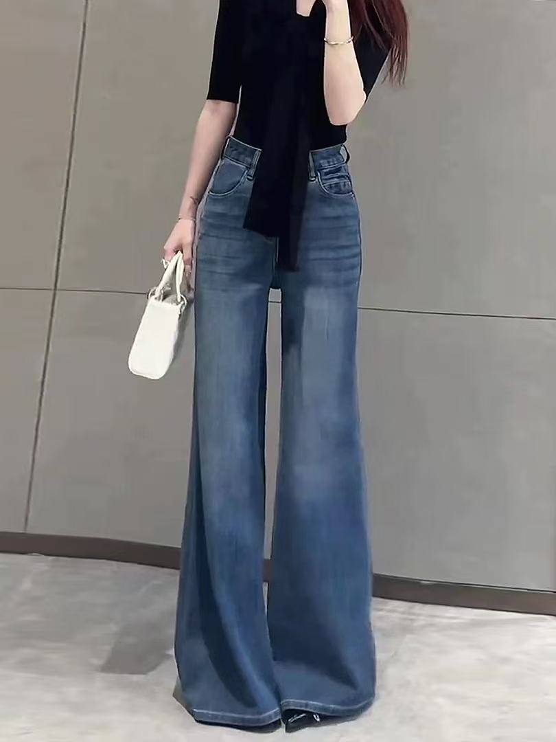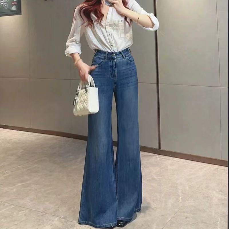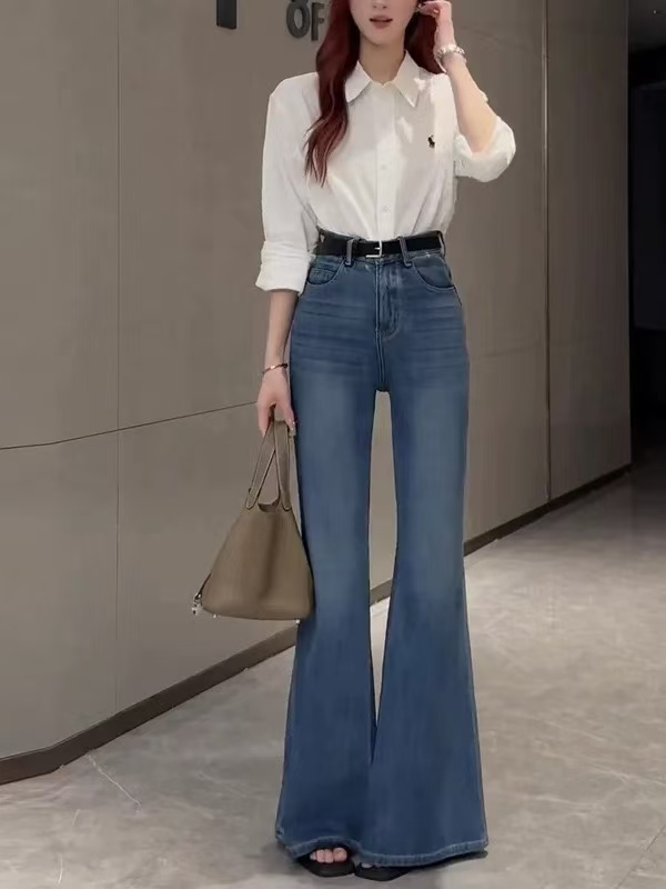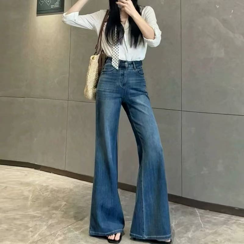 가을 신상 Qiaozhan 여성용 하이웨이스트 플레어 진, 세련된 힙업 및 슬림핏 롱 팬츠, 루즈핏으로 다리에 달라붙지 않음