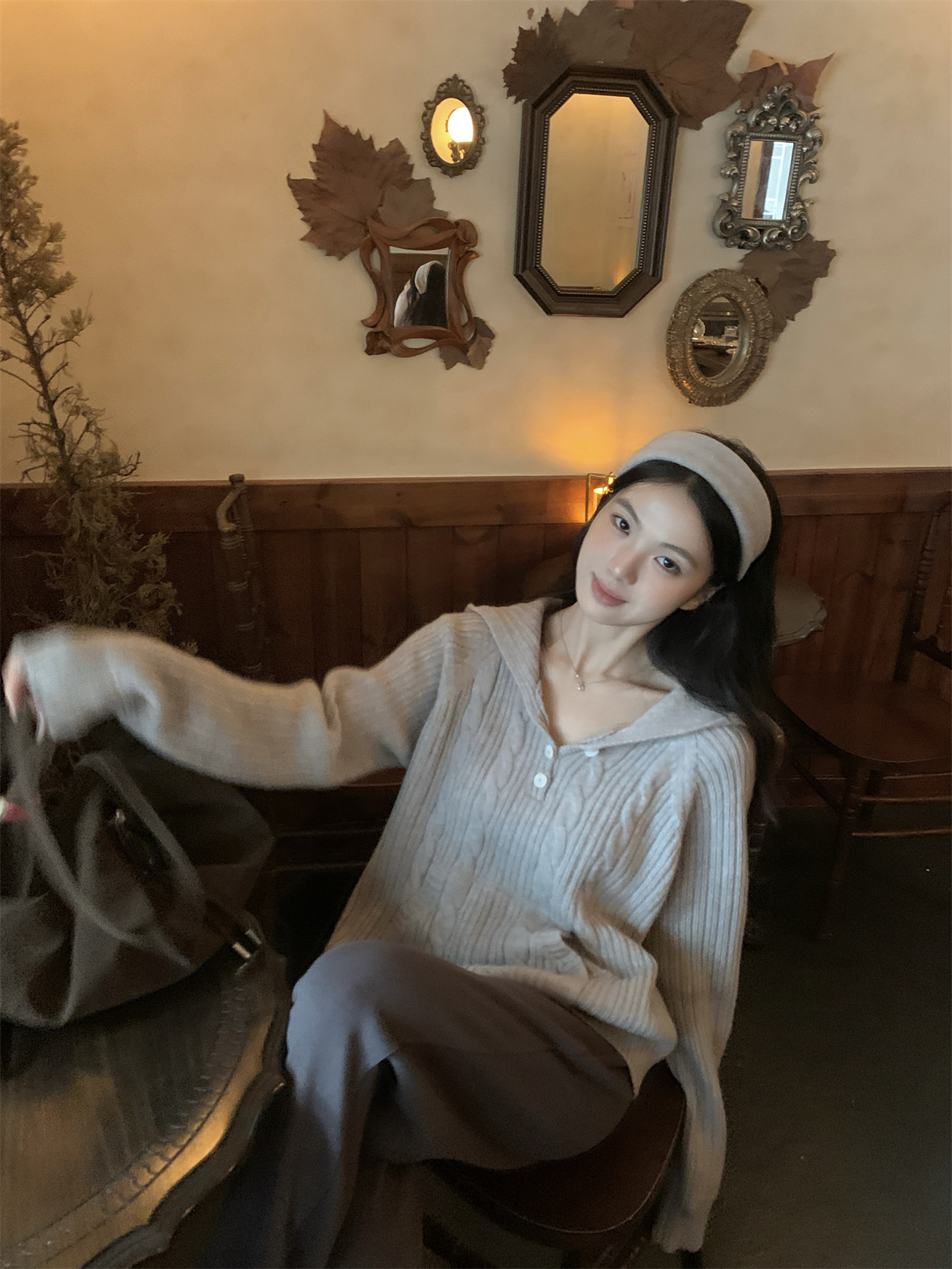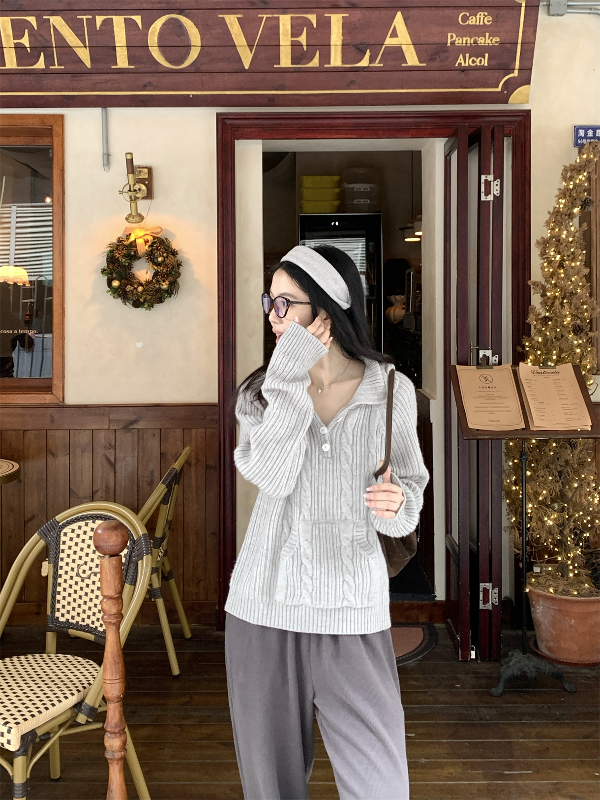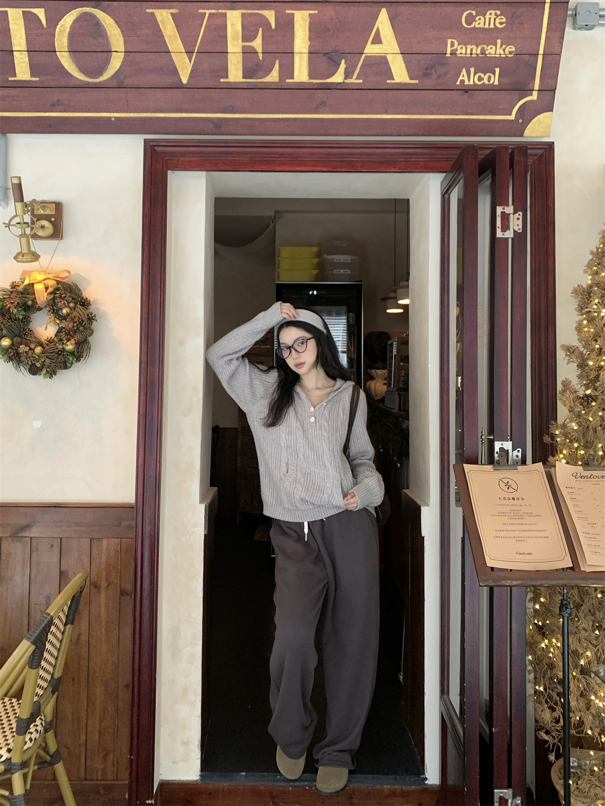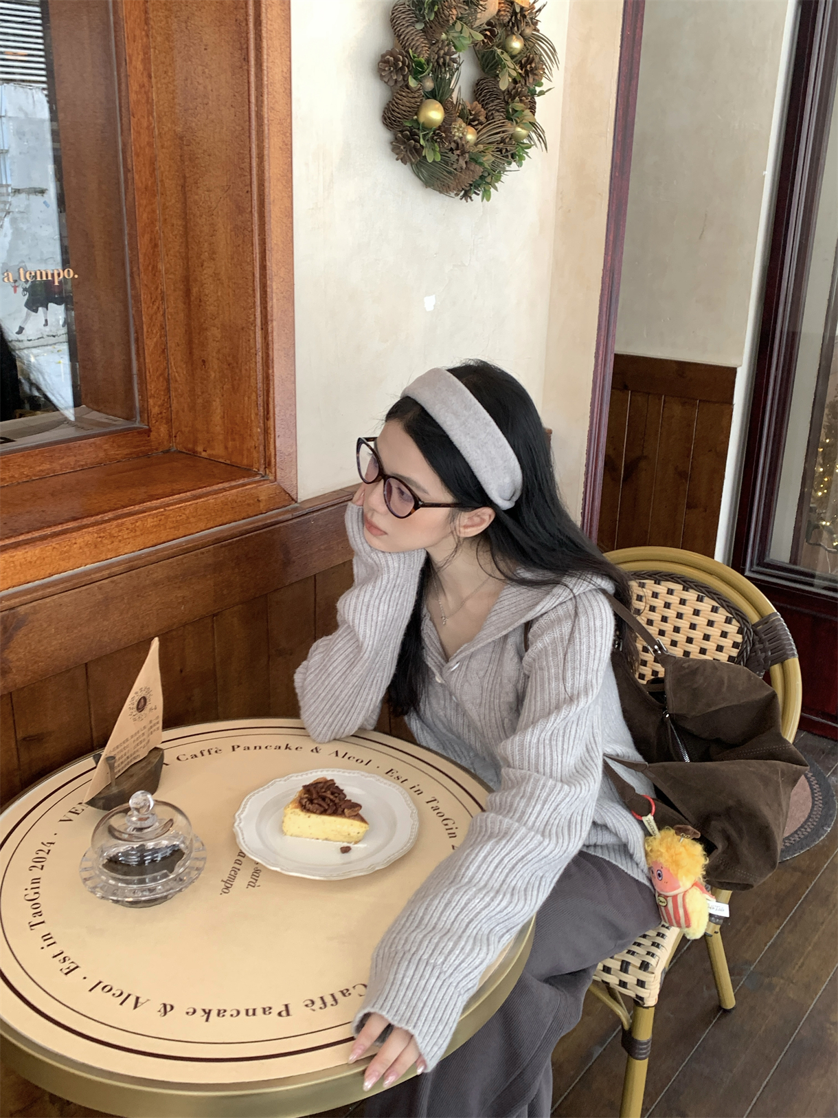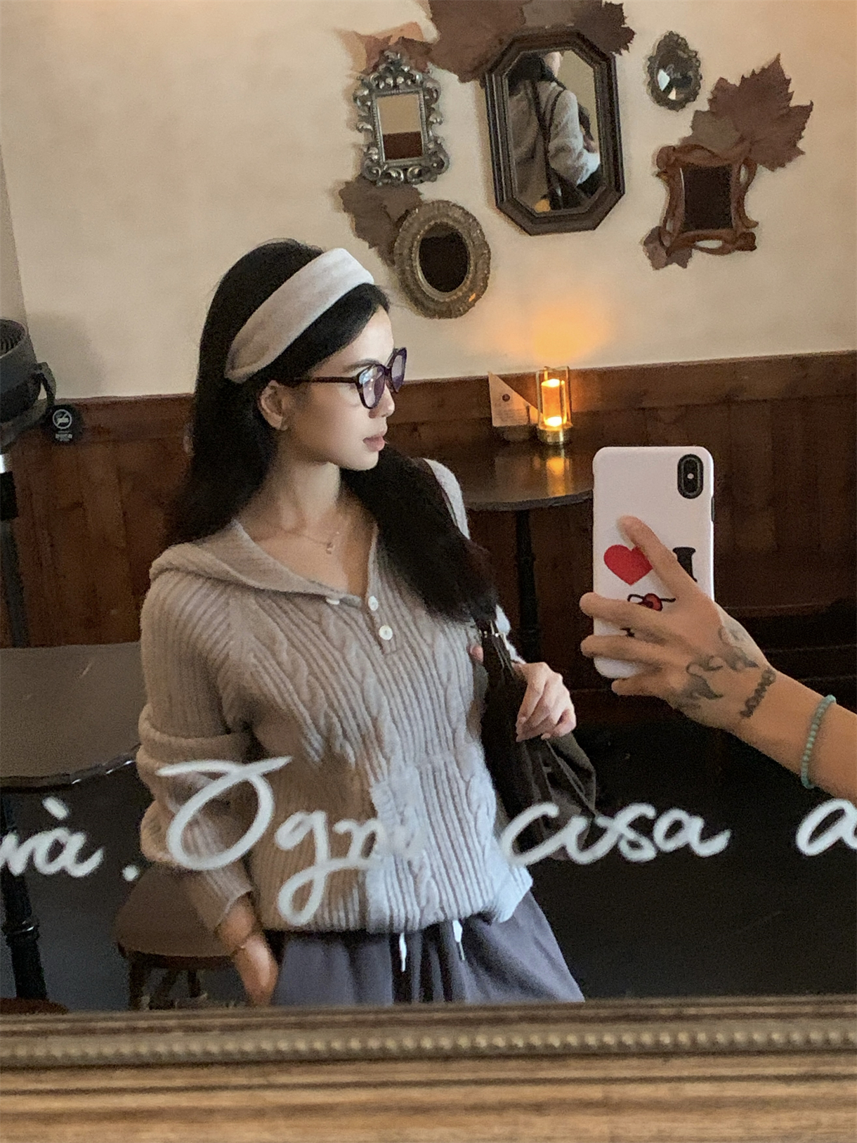실제 사진, 실제 가격~ 가을/겨울 미국 레트로 스타일 회색 케이블 니트 후드 버튼다운 스웨터 풀오버 가디건