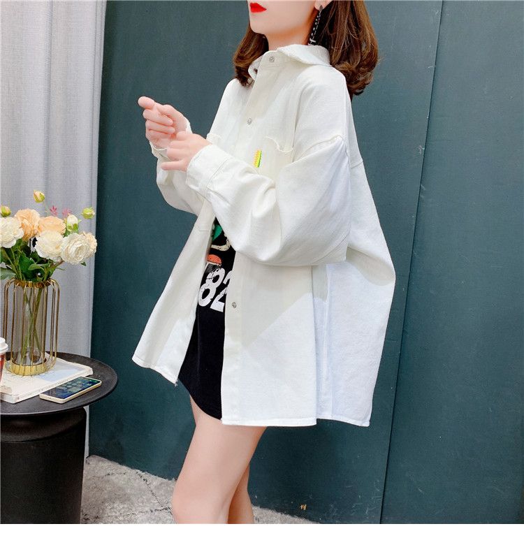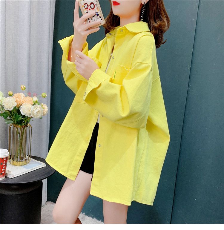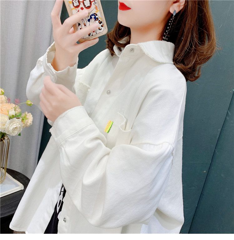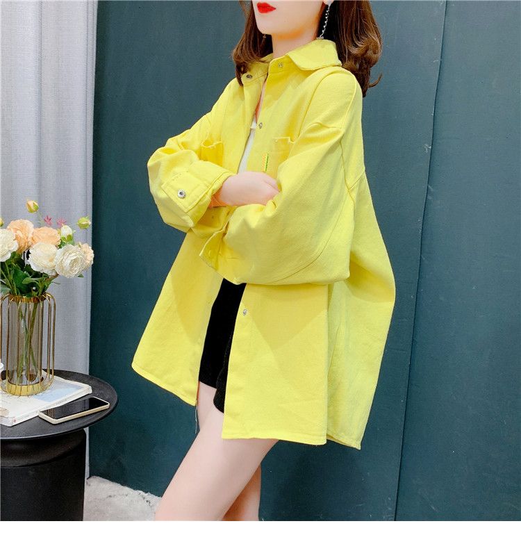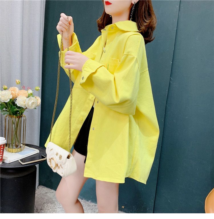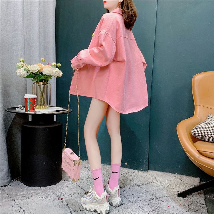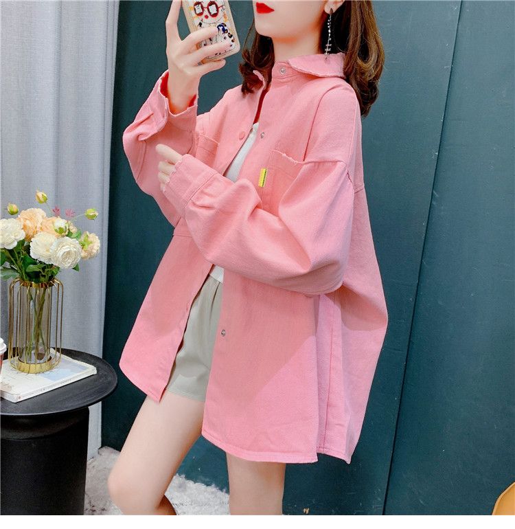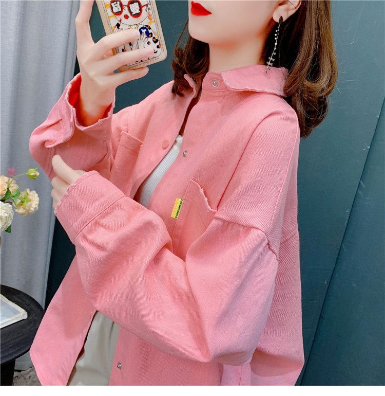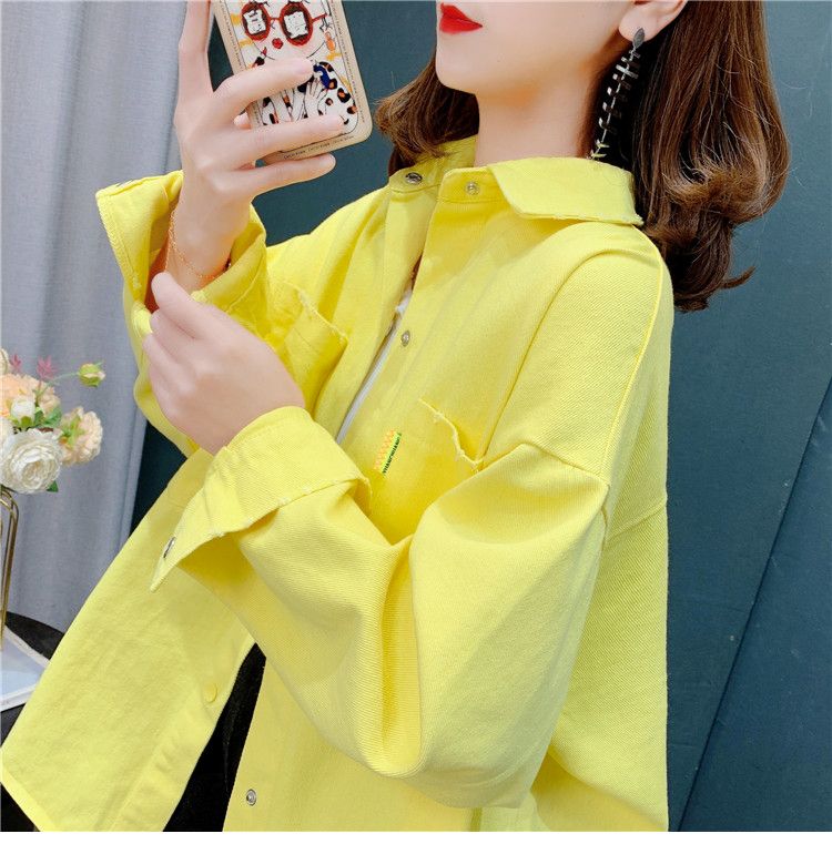 2025년 가을 신상 순면 워싱 데님 소재의 얇은 한국 스타일 셔츠 폴로 칼라 재킷 (여성용)
