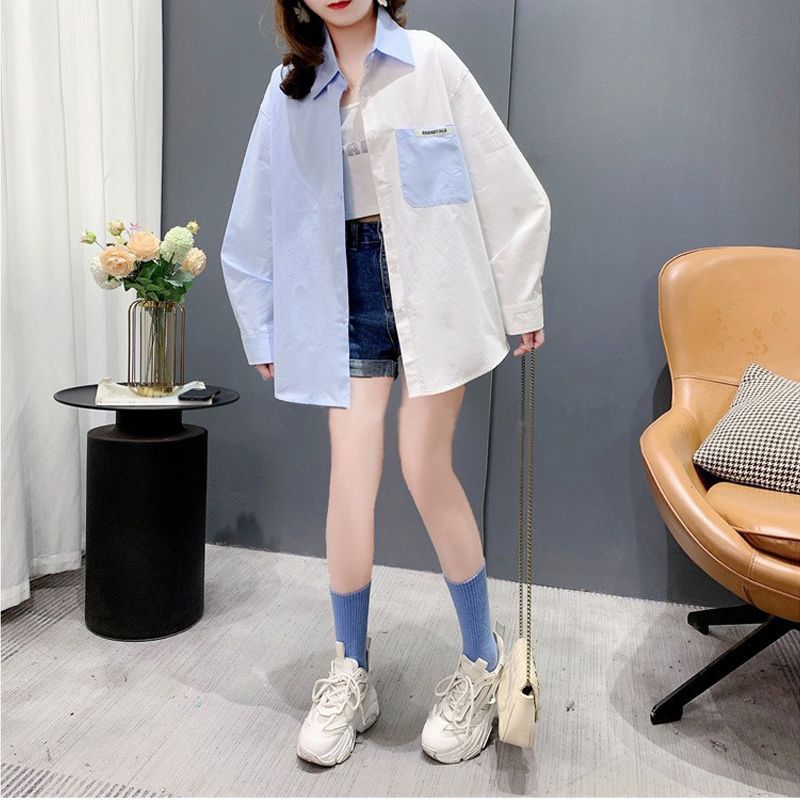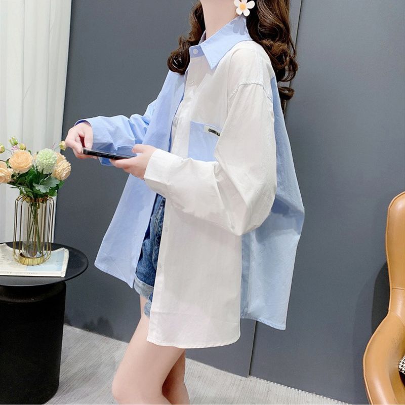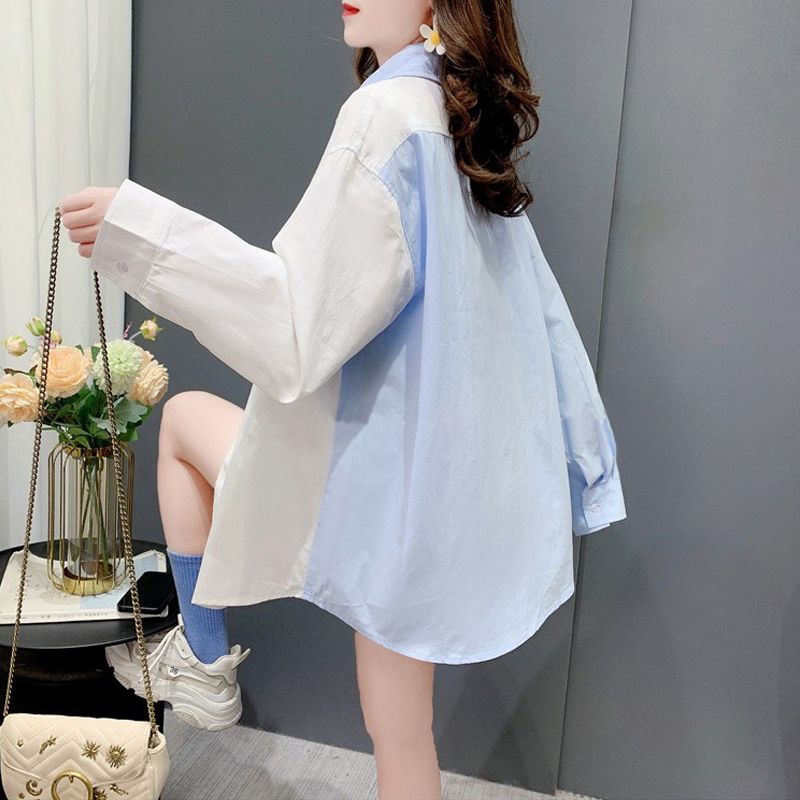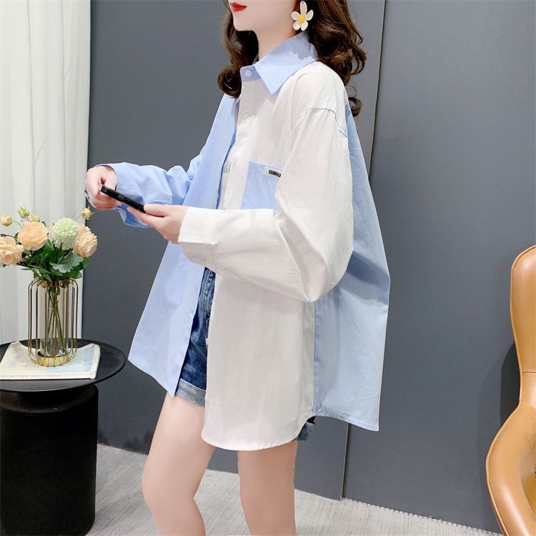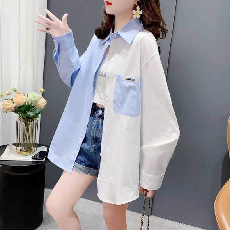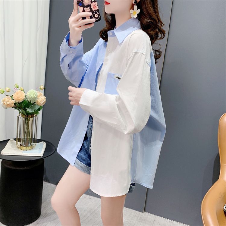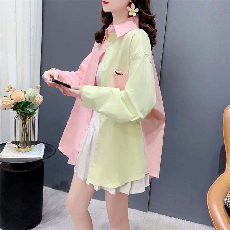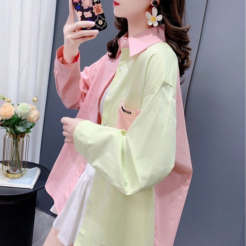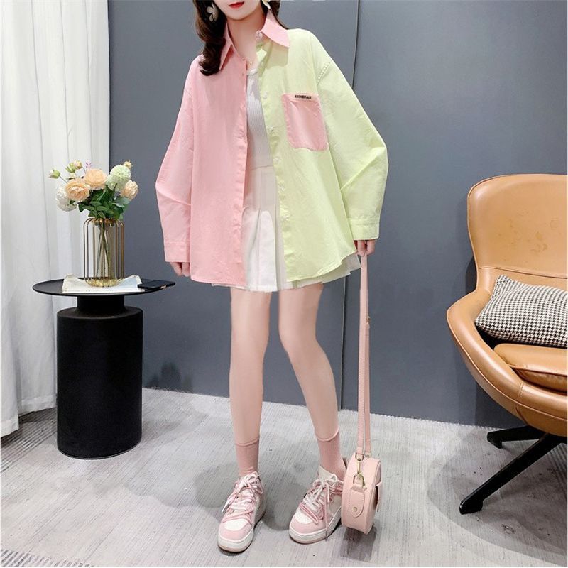 2025 봄/가을 신상 한국 스타일 플러스 사이즈 루즈핏 컬러 블록 디자인 여성용 셔츠 재킷