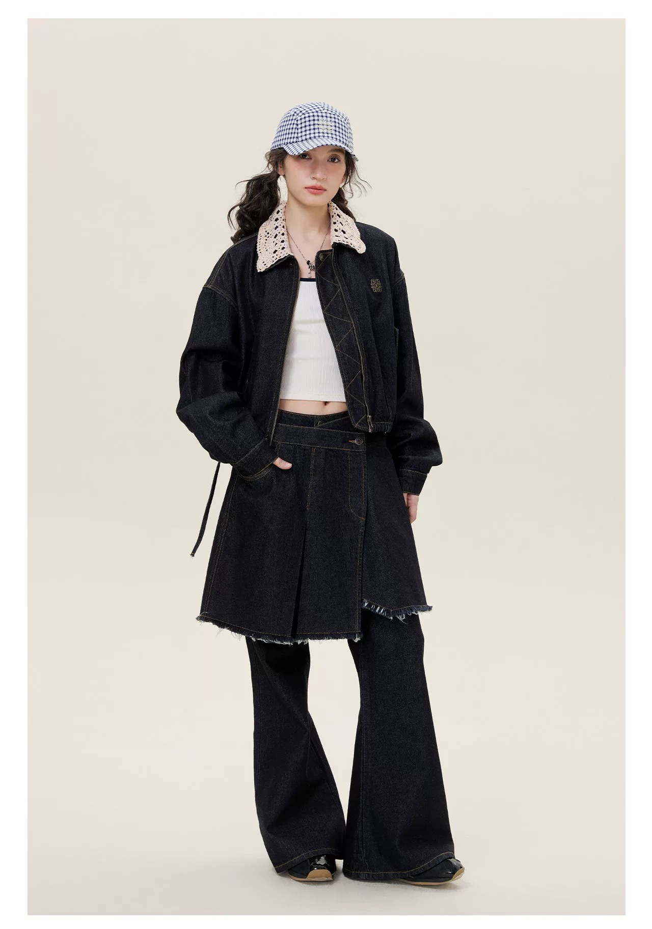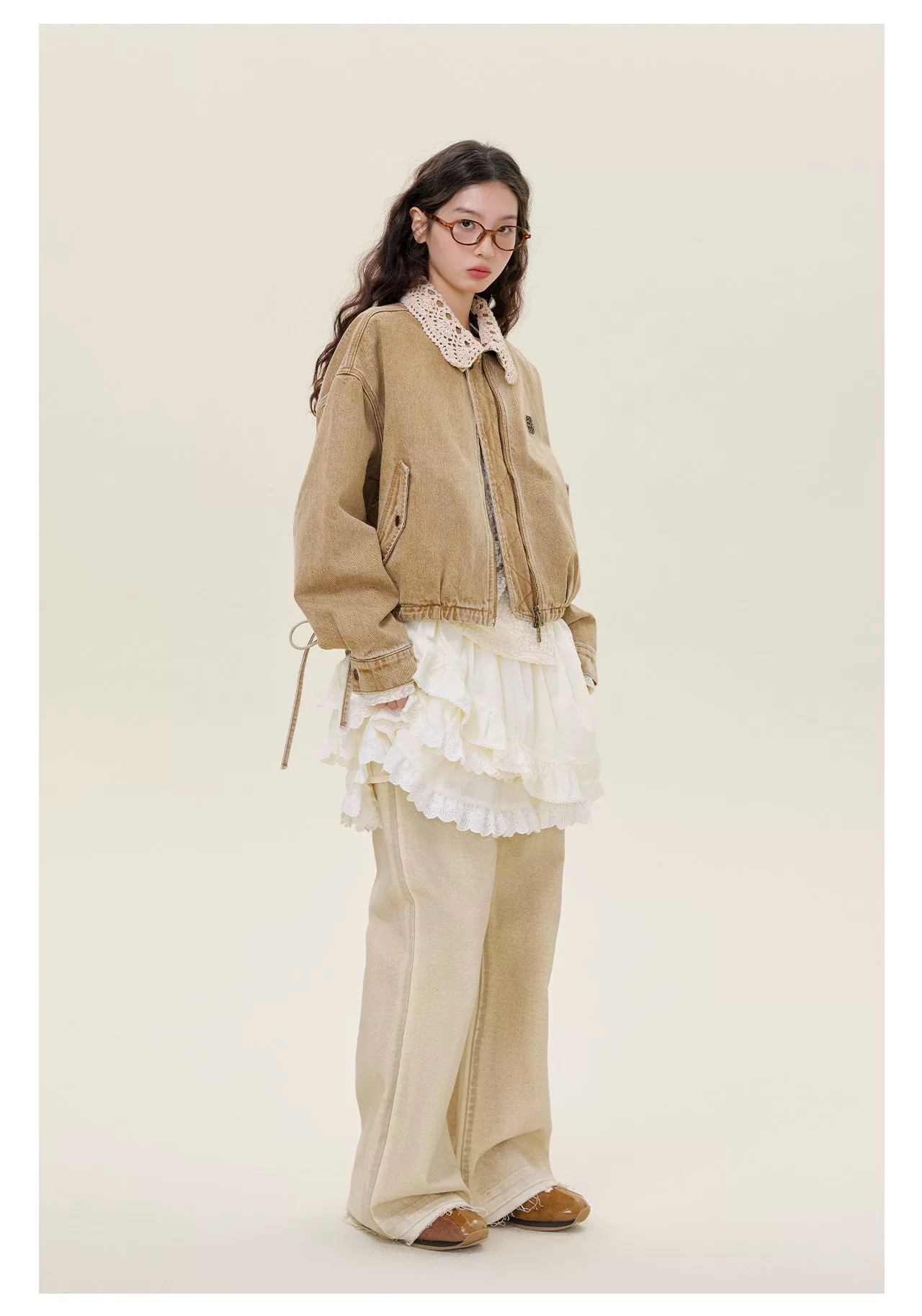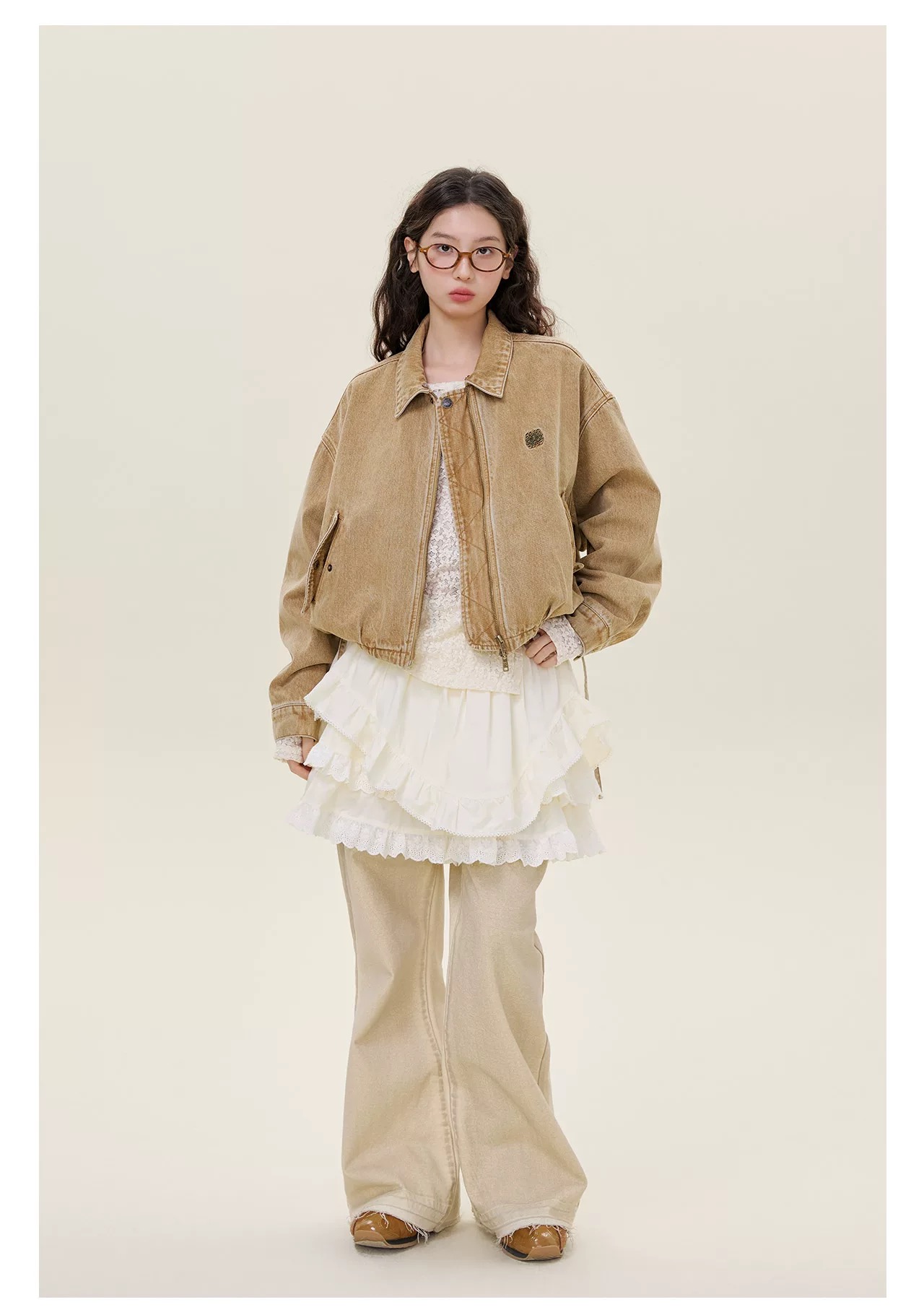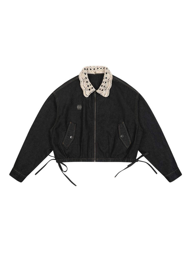 秋季美式复古短款拼接牛仔外套新款秋小个子夹克上衣潮
