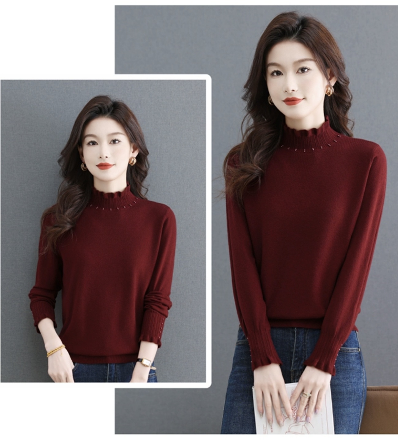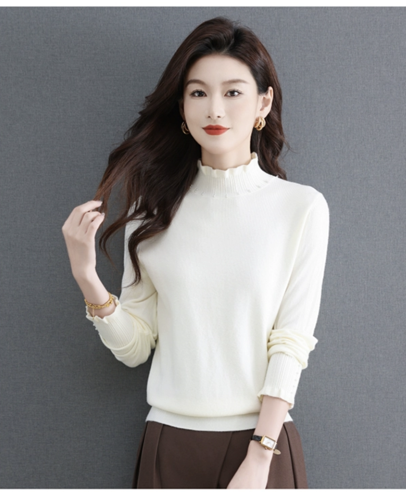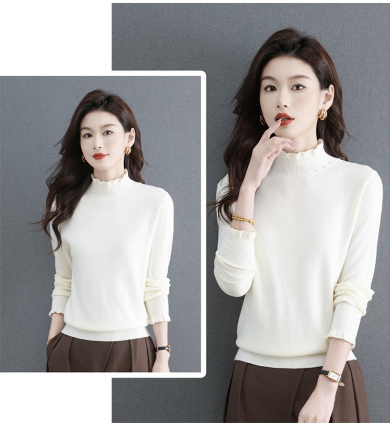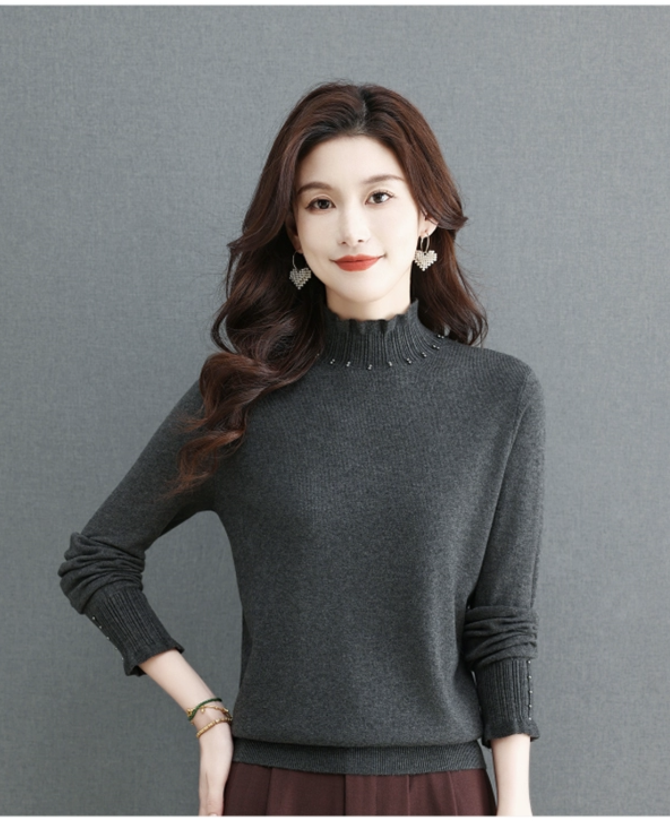 중년 엄마들을 위한 봄/가을용 프릴 칼라 스웨터, 넉넉한 플러스 사이즈 울 스웨터, 스타일리시한 탑, 얇은 니트 이너 레이어
