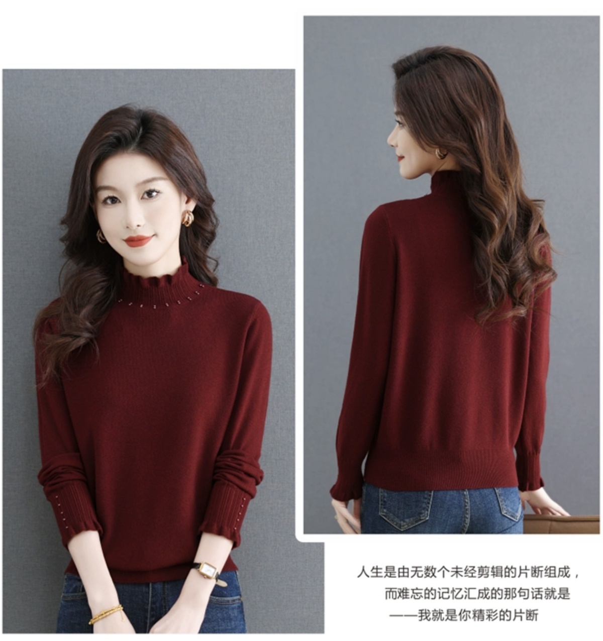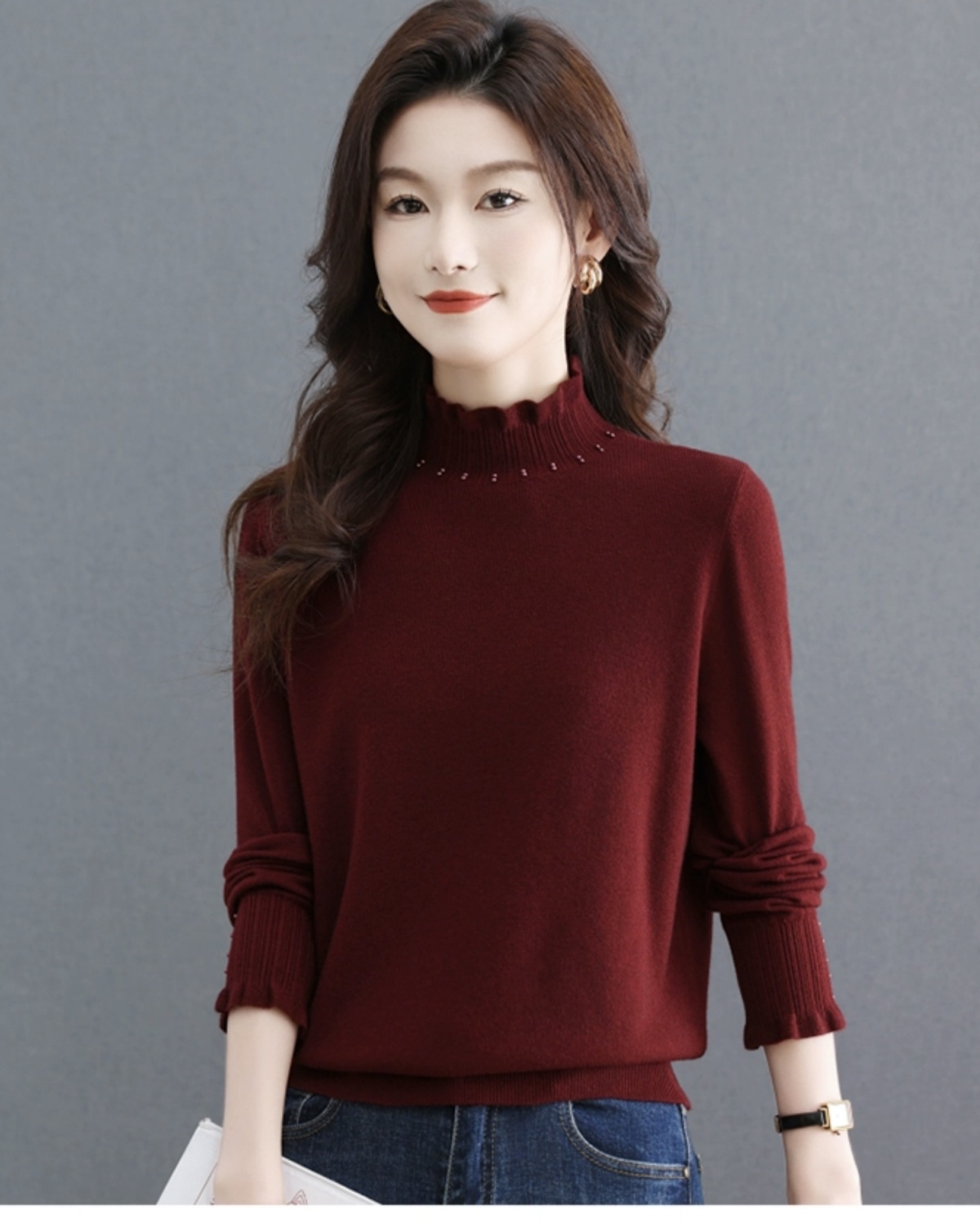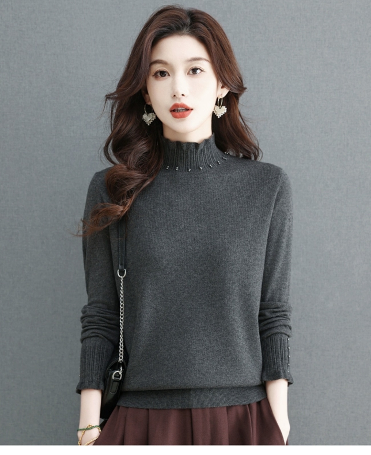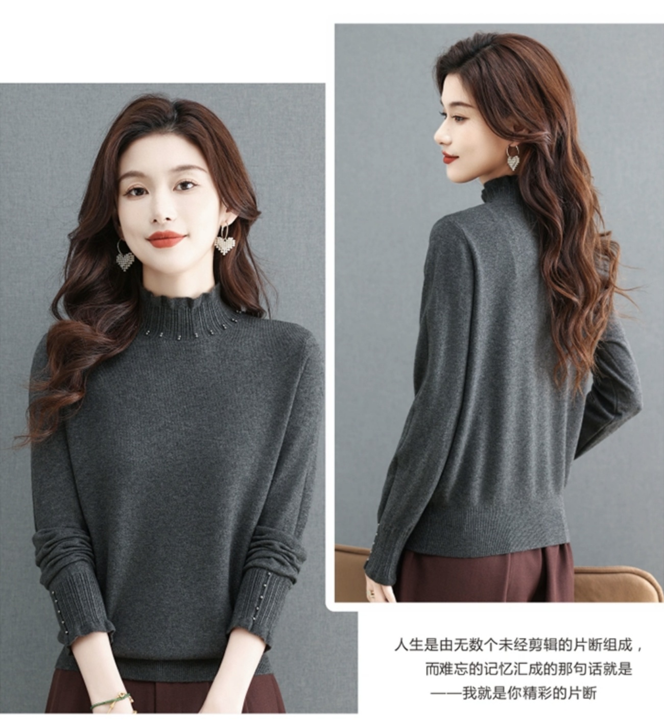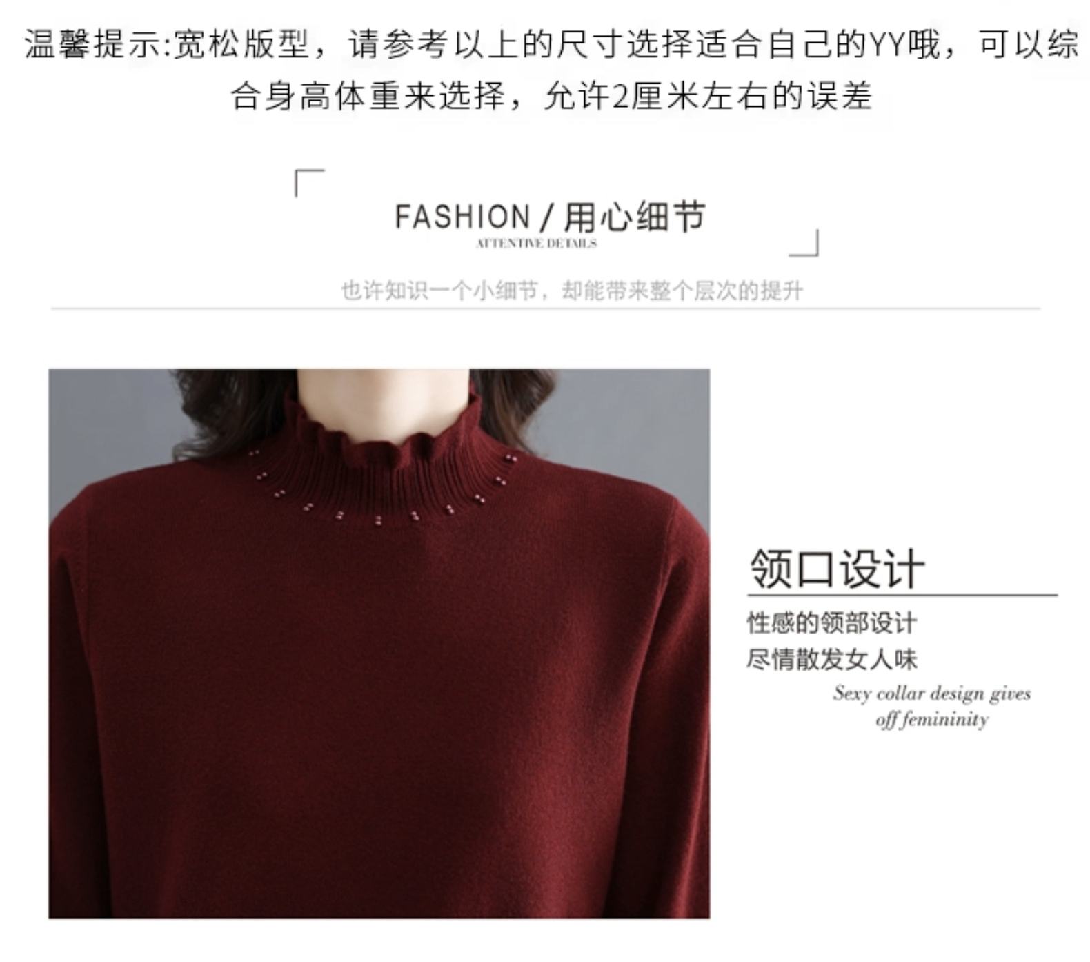 중년 엄마들을 위한 봄/가을용 프릴 칼라 스웨터, 넉넉한 플러스 사이즈 울 스웨터, 스타일리시한 탑, 얇은 니트 이너 레이어