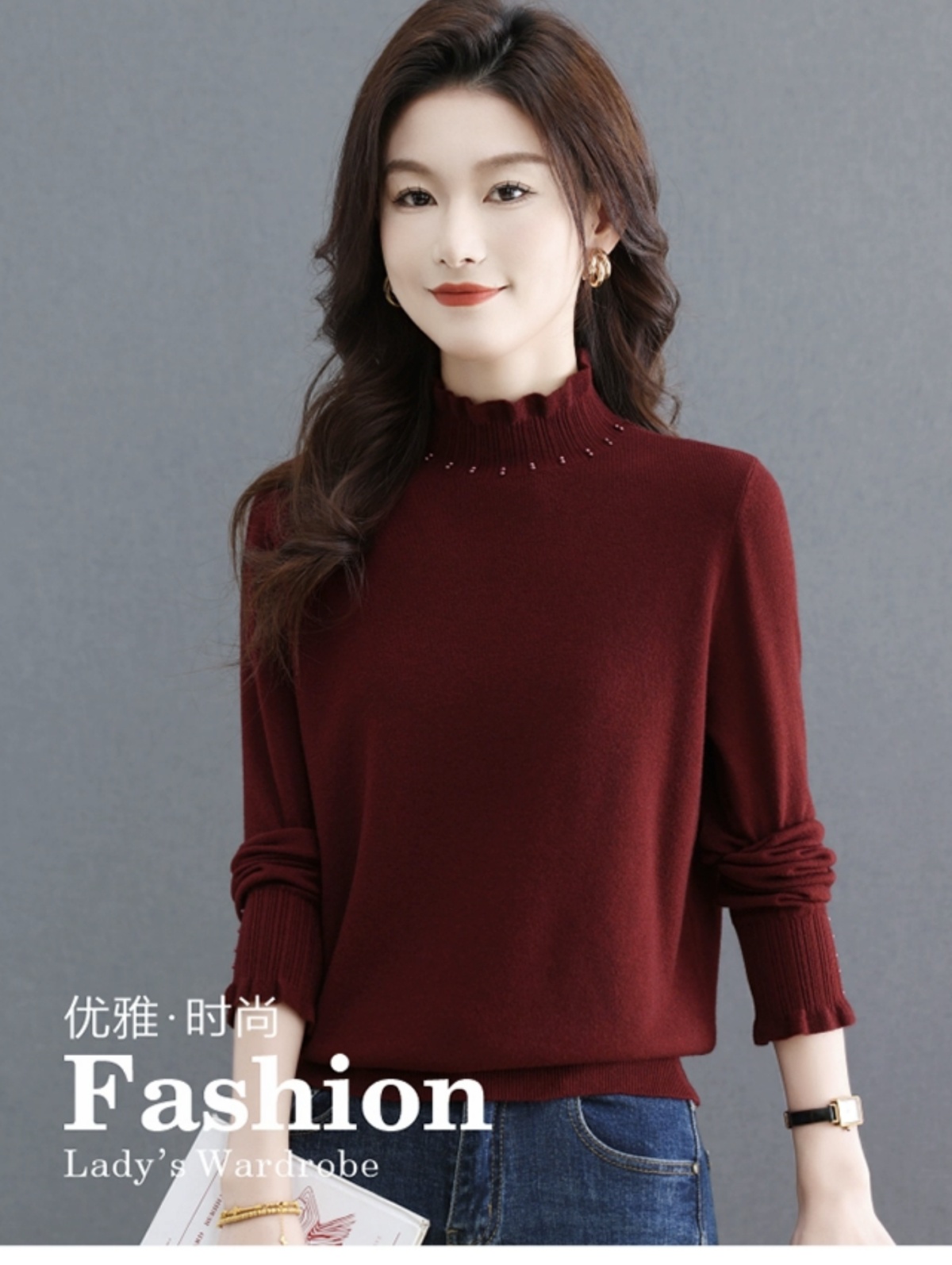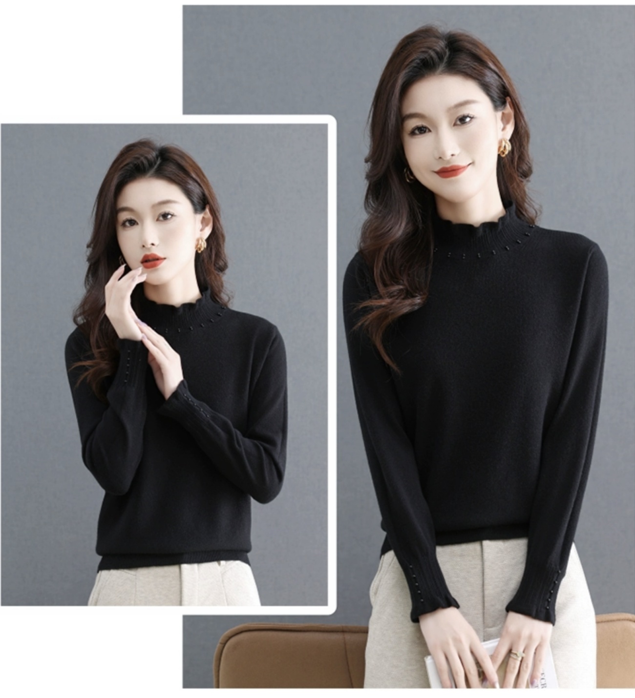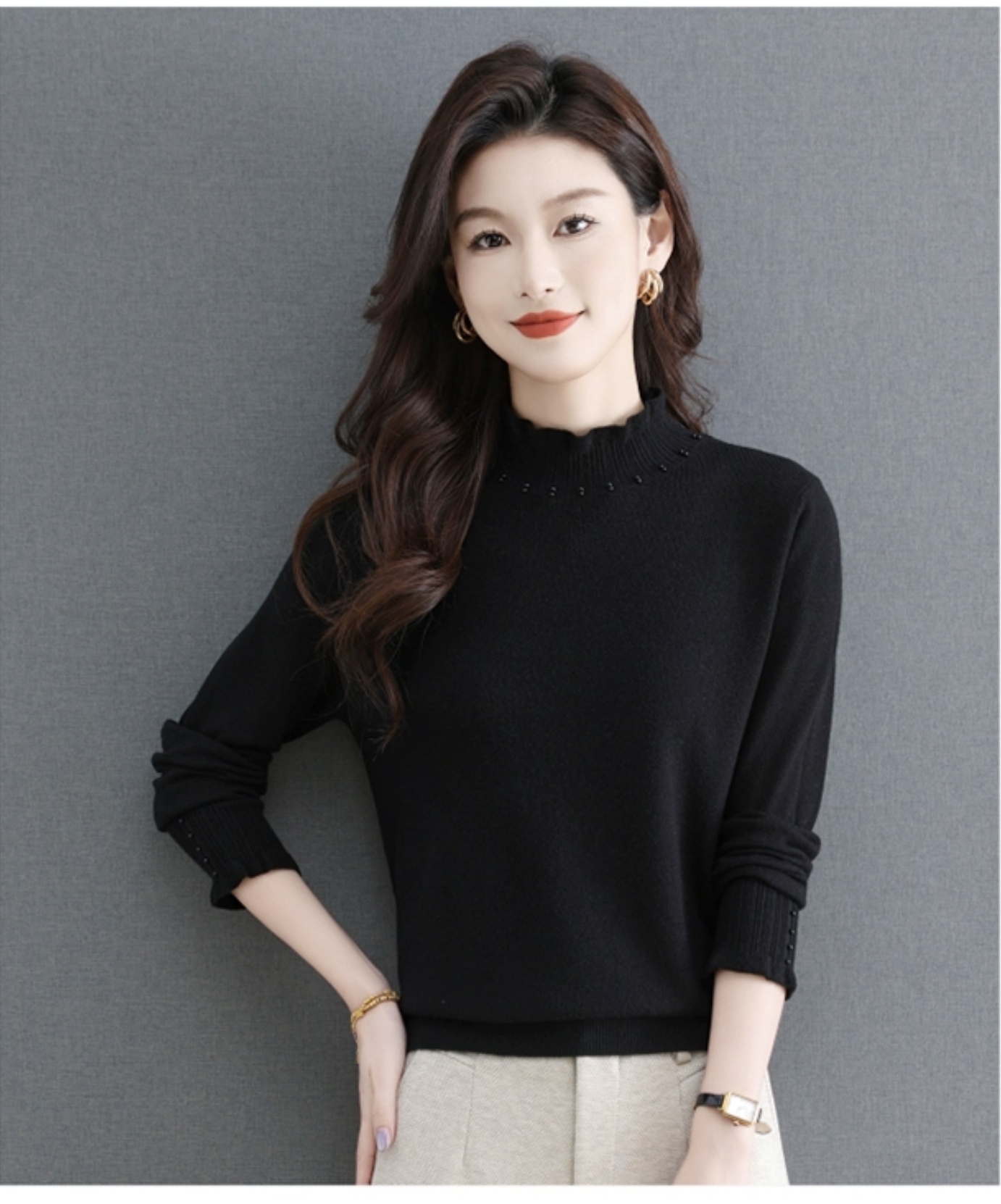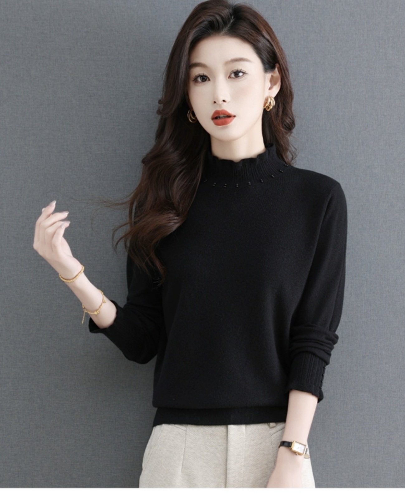 중년 엄마들을 위한 봄/가을용 프릴 칼라 스웨터, 넉넉한 플러스 사이즈 울 스웨터, 스타일리시한 탑, 얇은 니트 이너 레이어