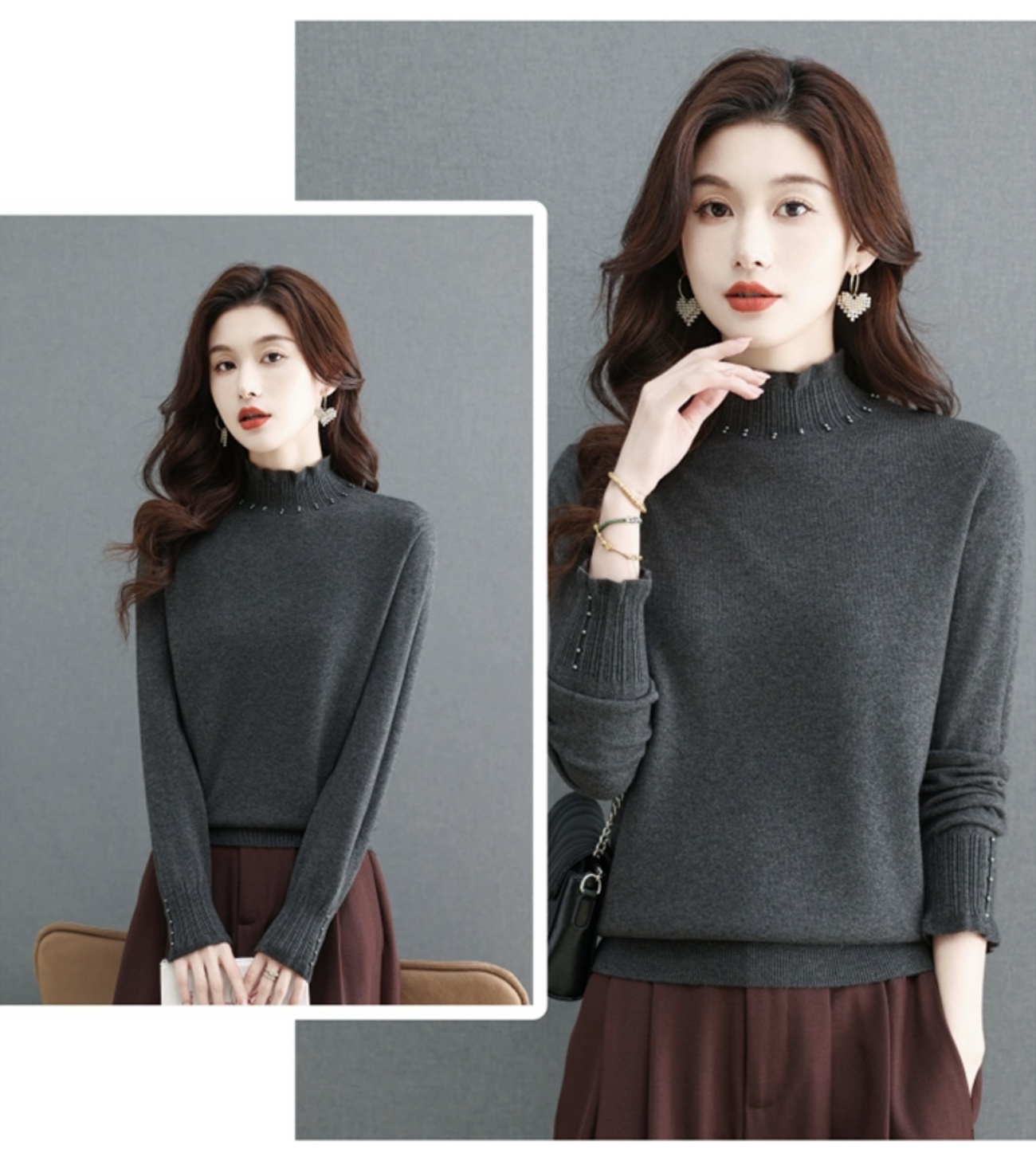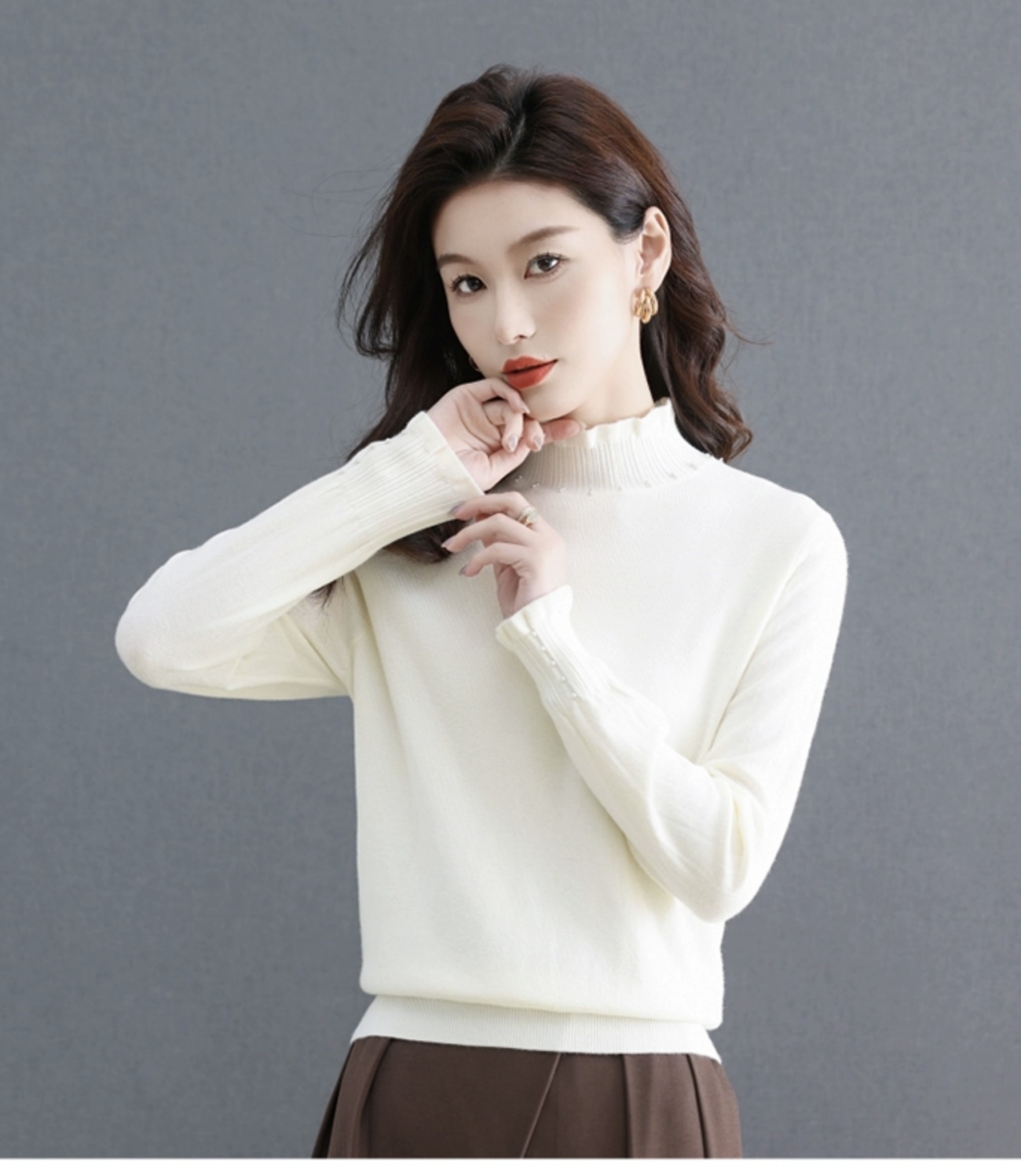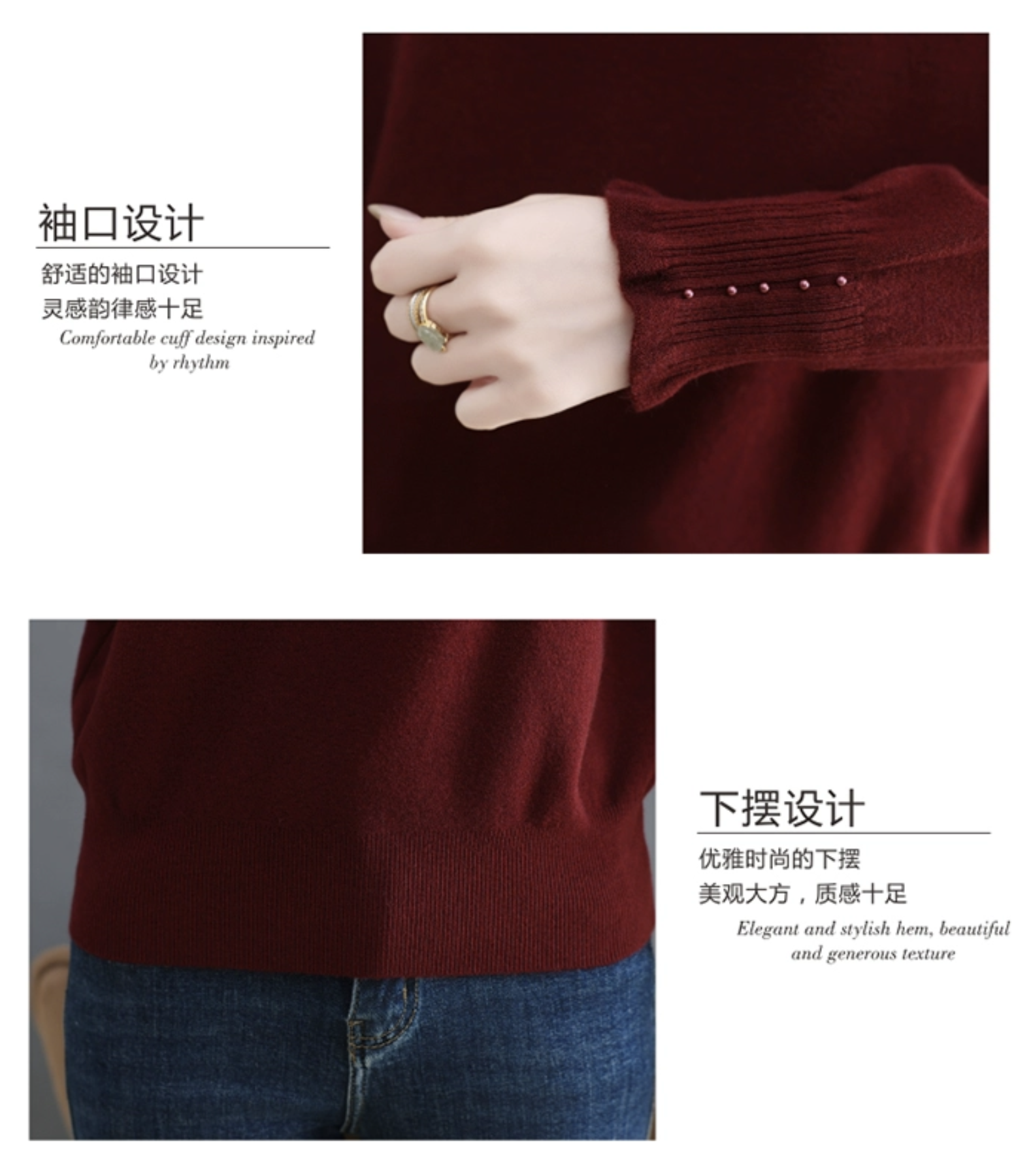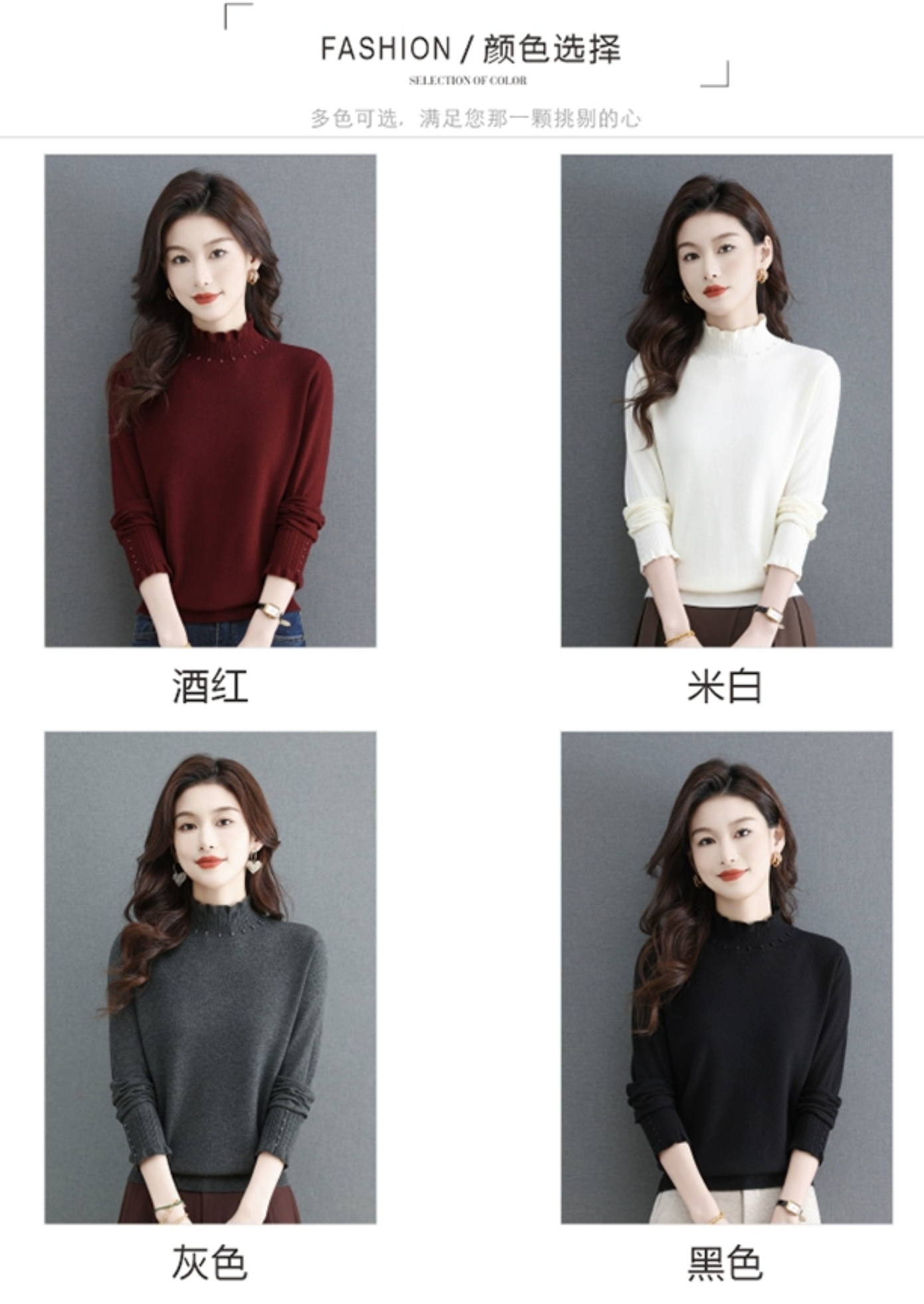 중년 엄마들을 위한 봄/가을용 프릴 칼라 스웨터, 넉넉한 플러스 사이즈 울 스웨터, 스타일리시한 탑, 얇은 니트 이너 레이어