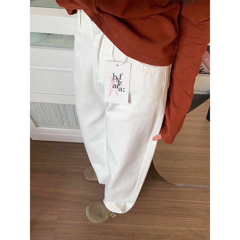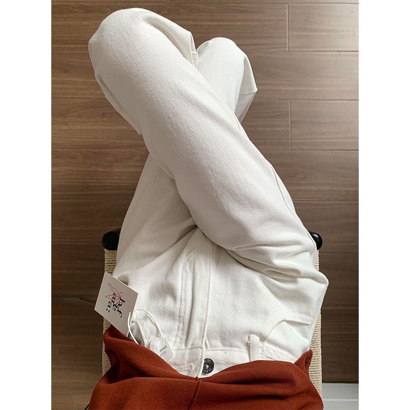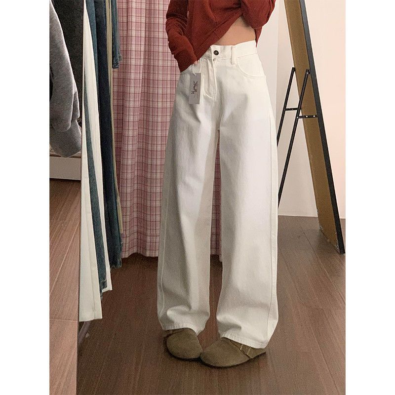 여성용 화이트 스트레이트 레그 진, 2025년 신상 스타일, 플리스 안감, 하이웨이스트, 슬림핏, 우아한 드레이프, 와이드 레그 플로어 길이 팬츠 (키가 작은 여성에게 적합).