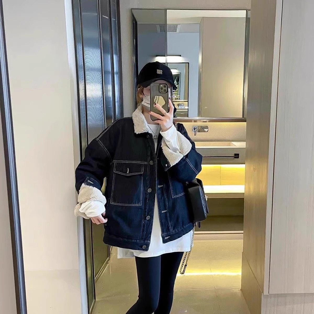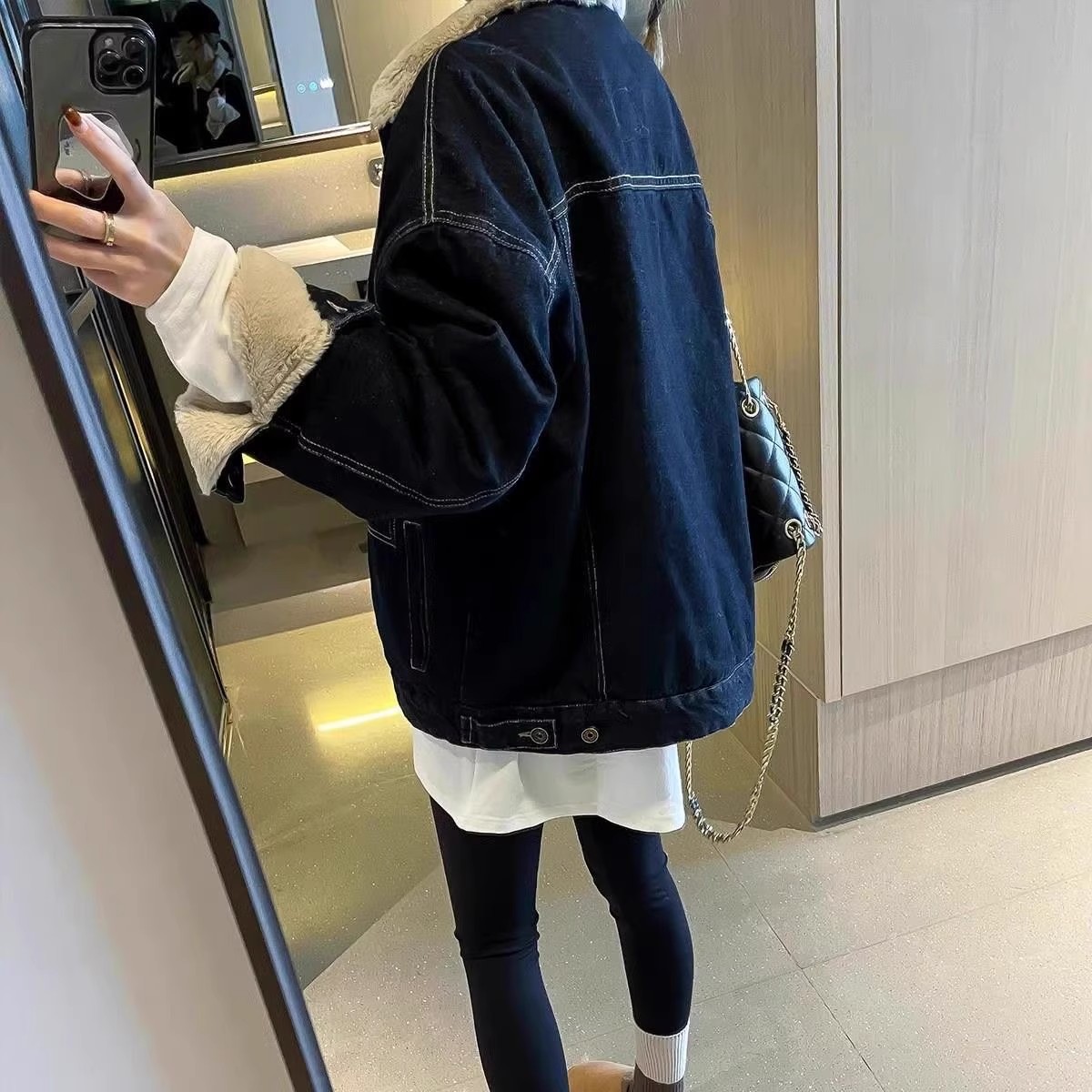 慵懒风加绒加厚牛仔外套棉服女冬季毛领复古宽松上衣