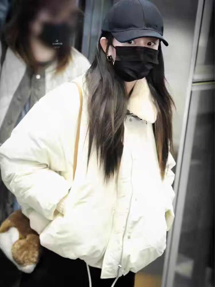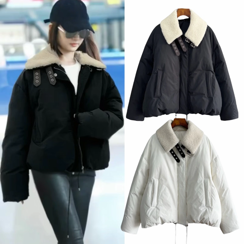 杨幂刘亦菲同款加棉羊羔毛翻领加厚面包服棉衣外套女冬季棉服网图