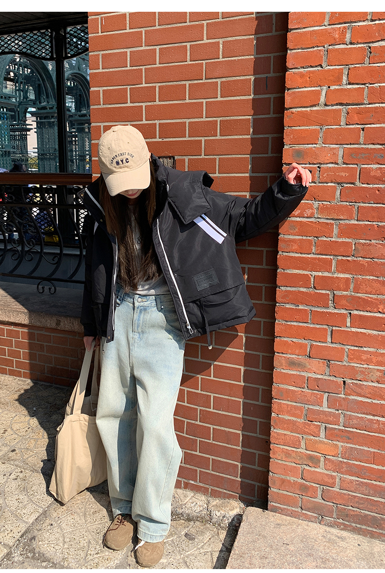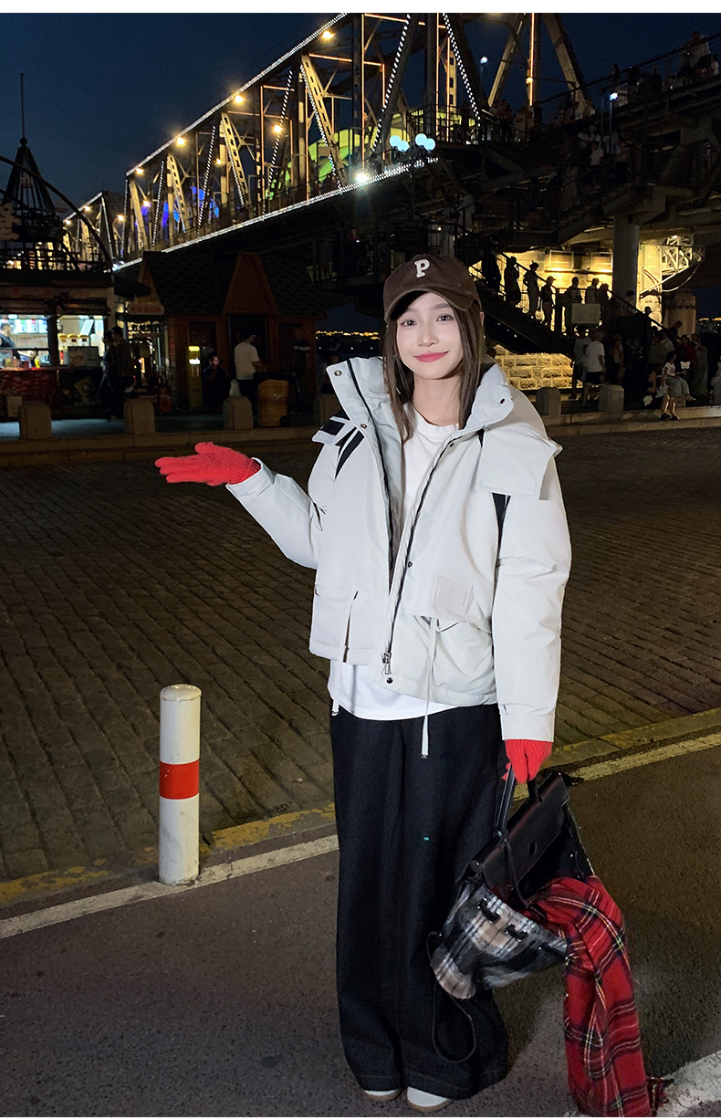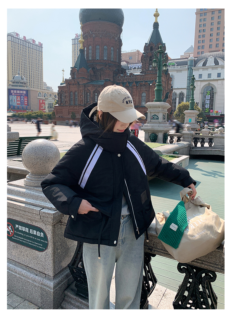 2025年冬季新款外穿韩版宽松洋气拼接撞色短款欧货潮流棉服外套