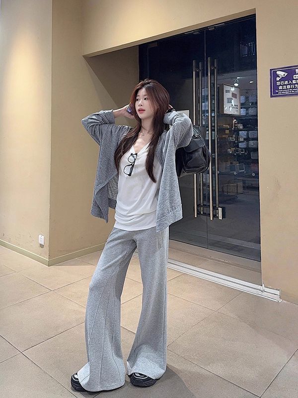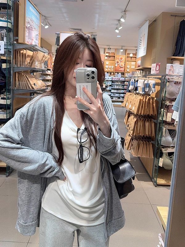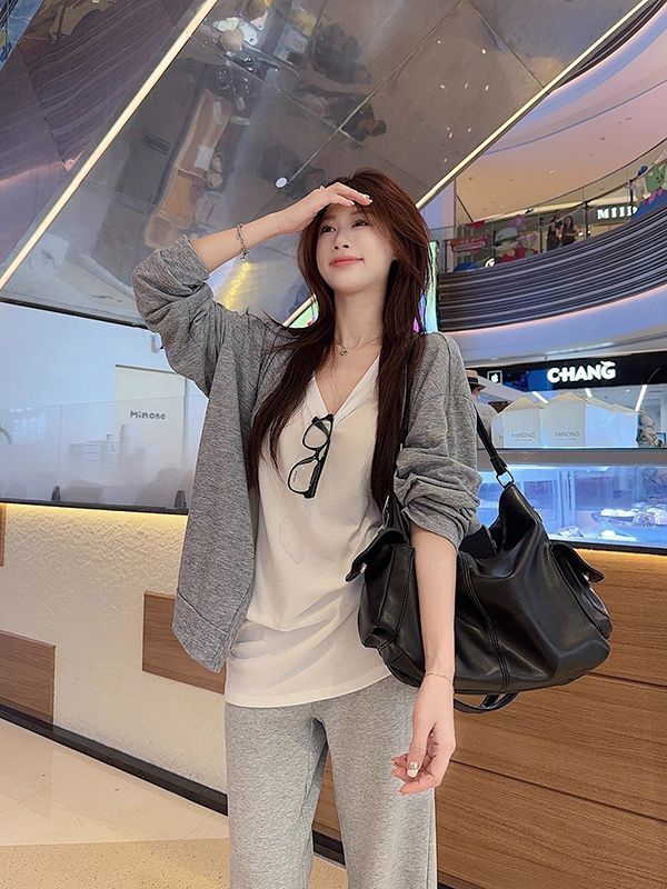 休闲慵懒风外套通勤小众V领T恤开衫上衣女