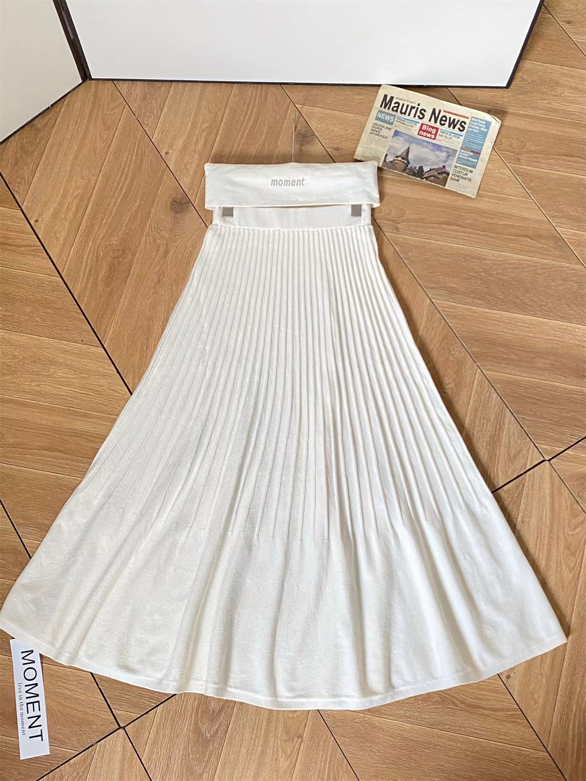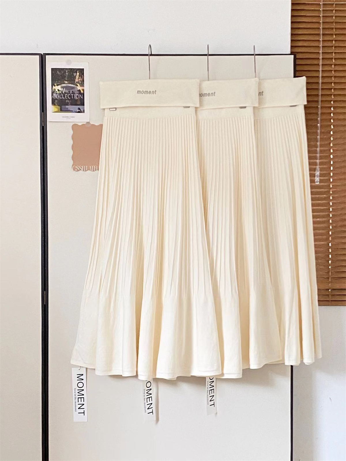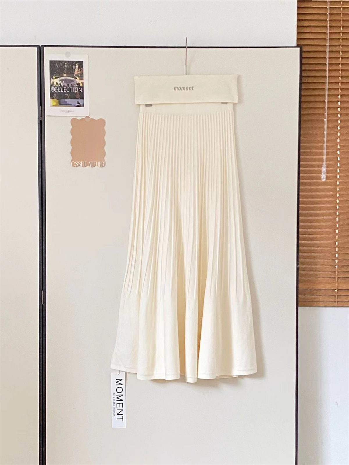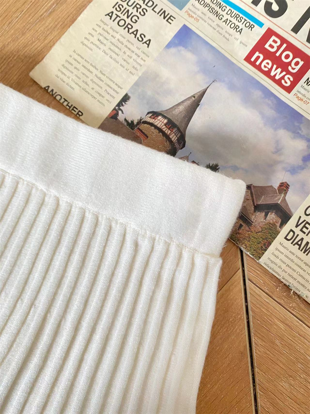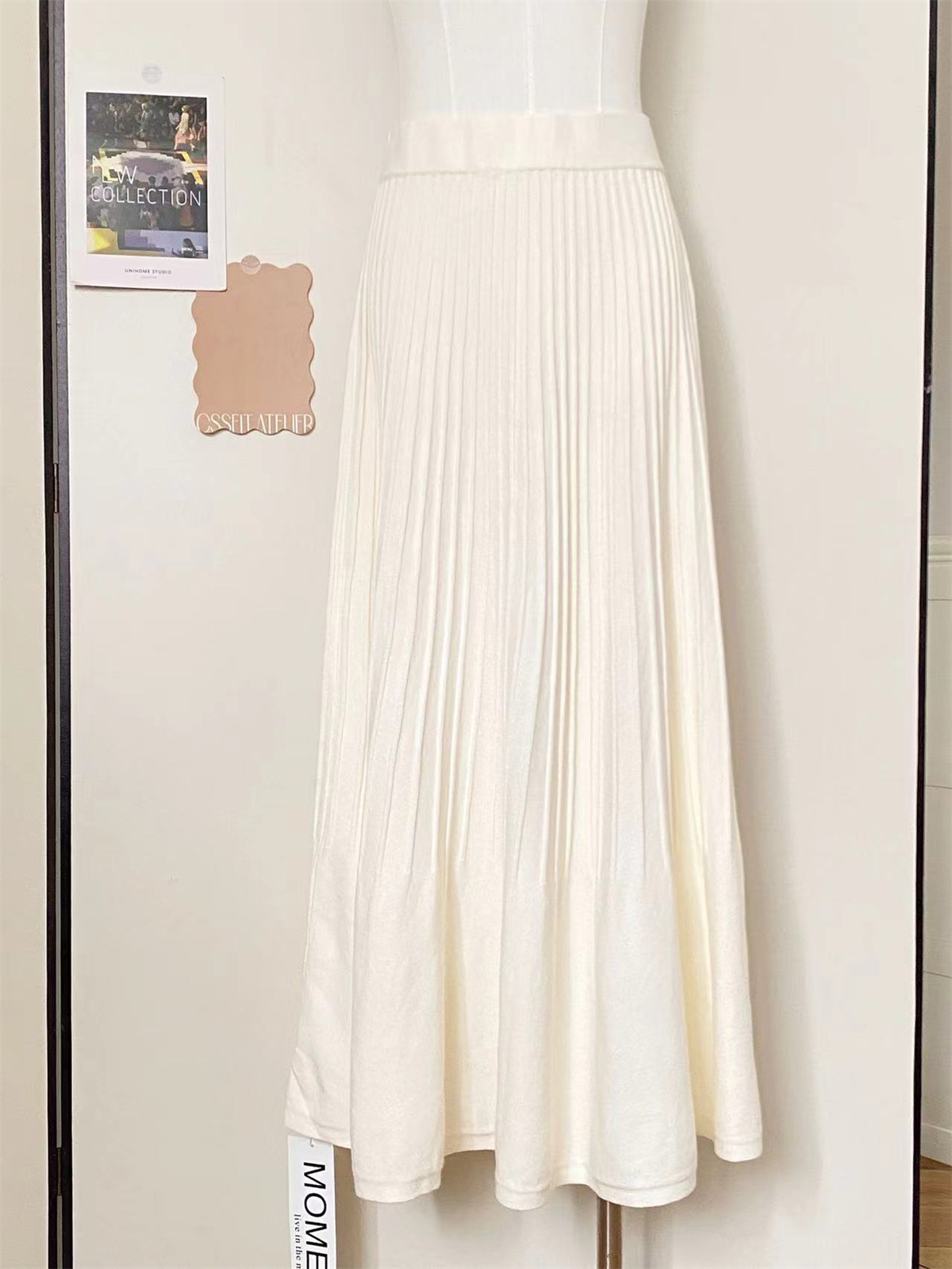 루오 씨의 배 모양 체형에는 이 니트 미디 스커트가 완벽하게 어울립니다. 엉덩이를 강조하지 않으면서도 가을과 겨울에 입기 좋은 주름 장식의 긴 스커트입니다.
