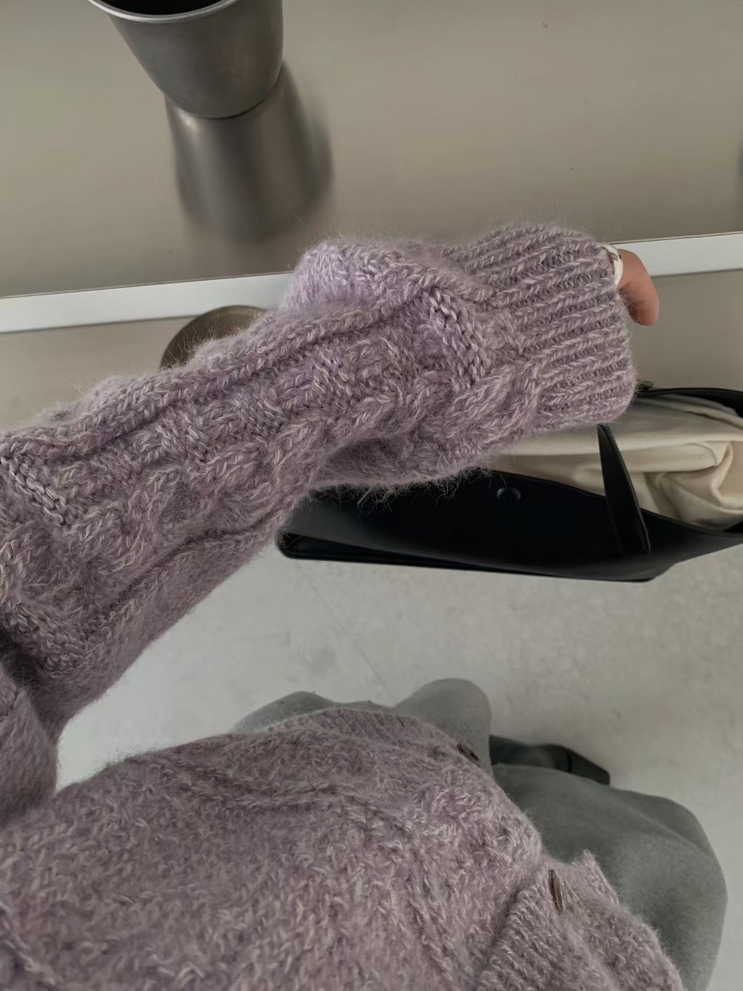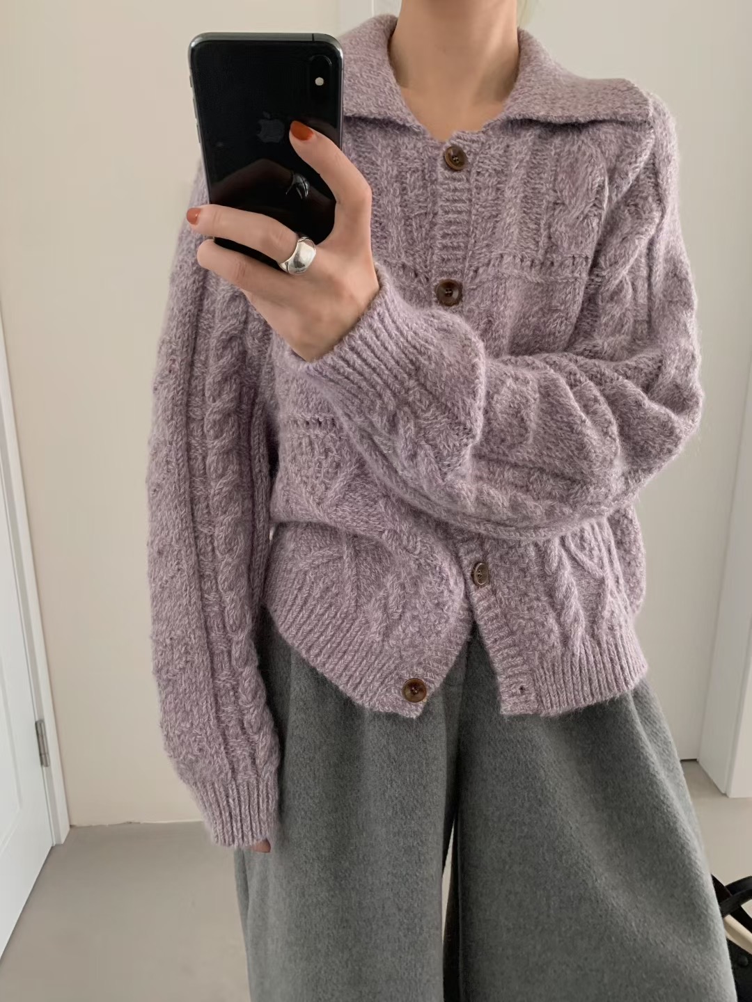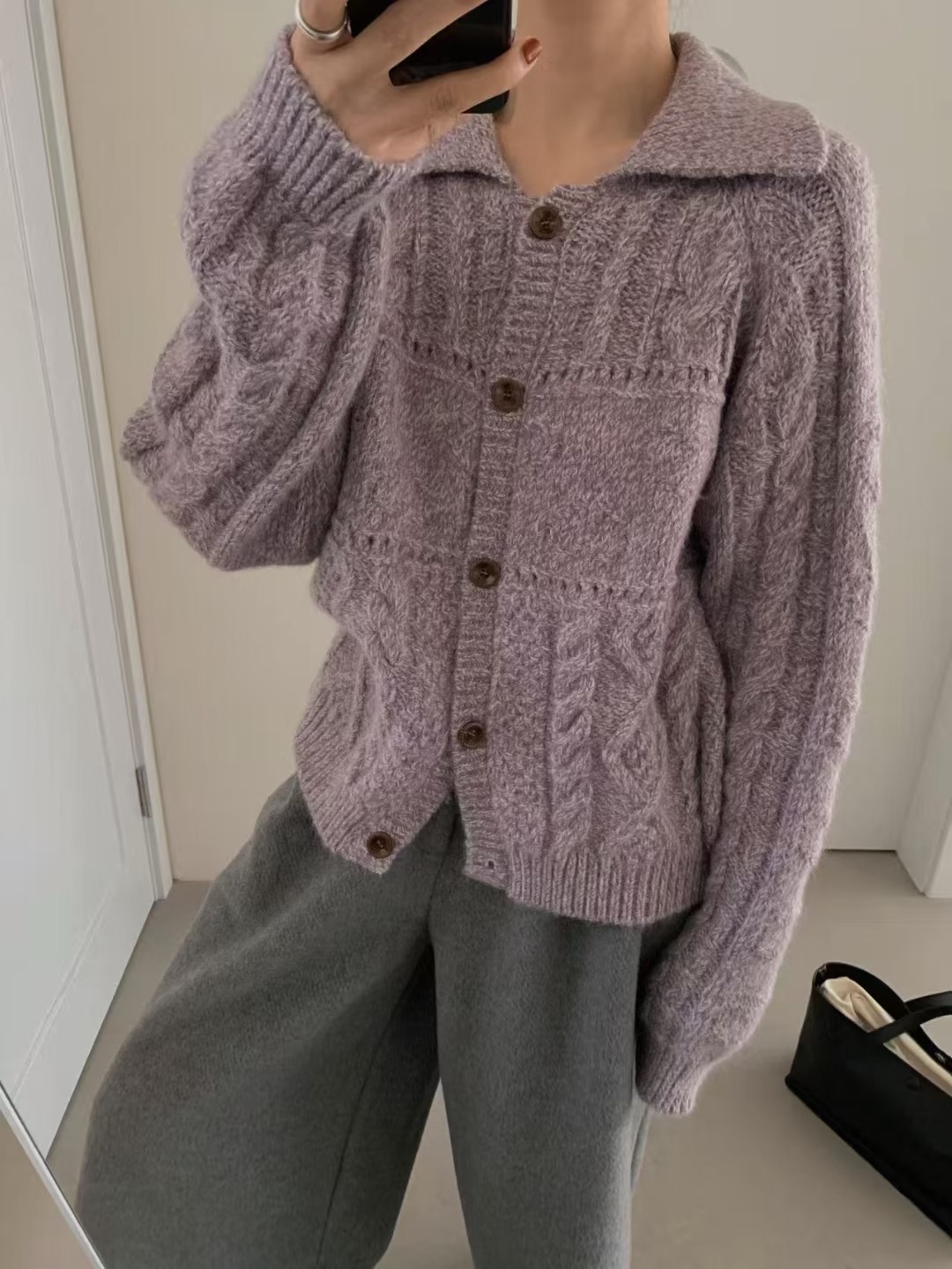 여성용 한국 복고풍 다이아몬드 케이블 니트 가디건, 가을/겨울용, 루즈하고 편안한 스타일, 보라색 스웨터 코트.