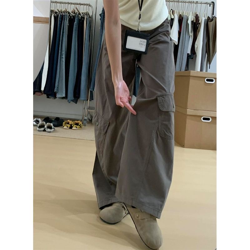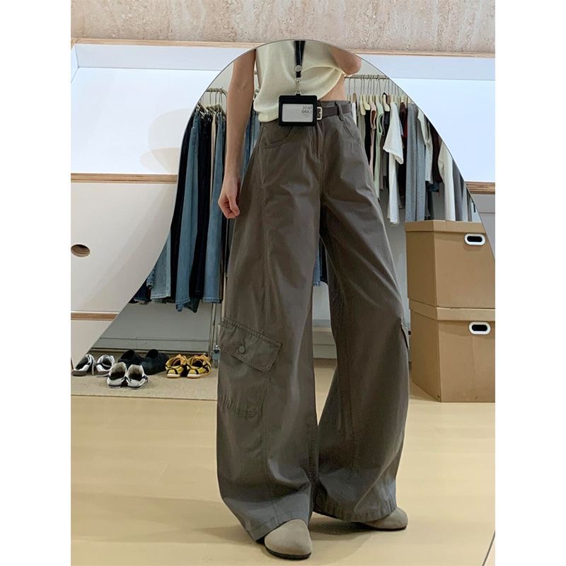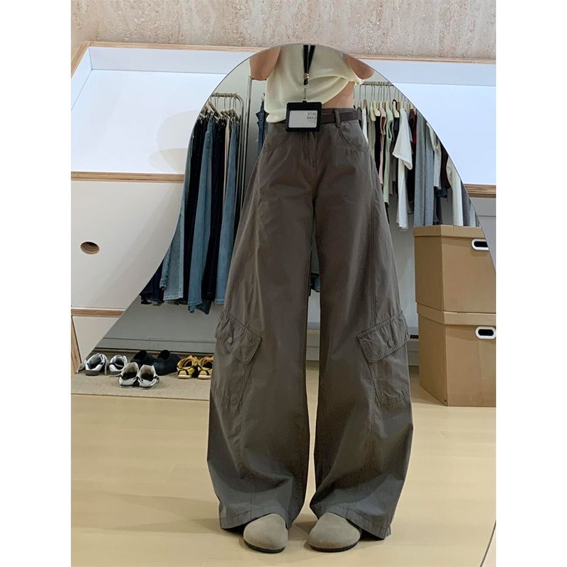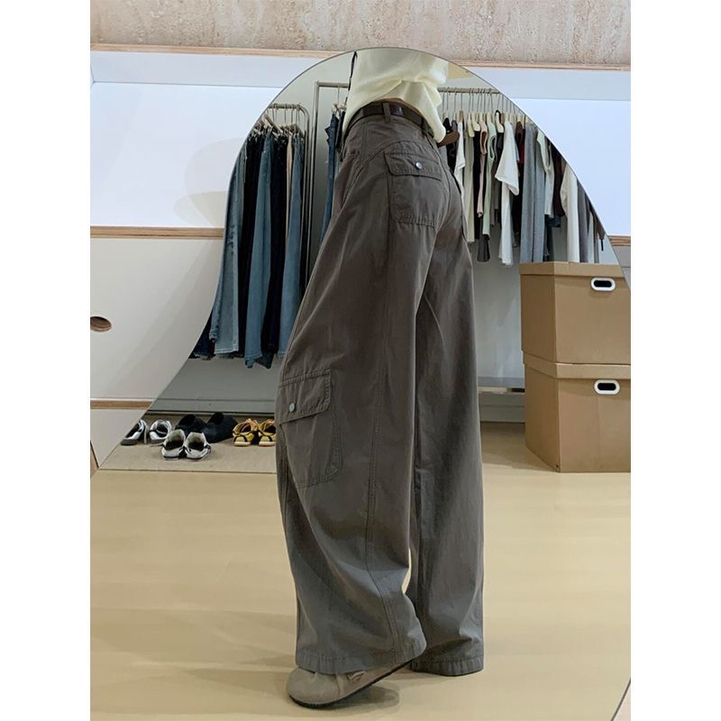 아담한 체형의 여성용 아메리칸 레트로 스타일 와이드 레그 진, 하이웨이스트 루즈핏 스트레이트 레그 캐주얼 카고 팬츠로 가을에 제격입니다.
