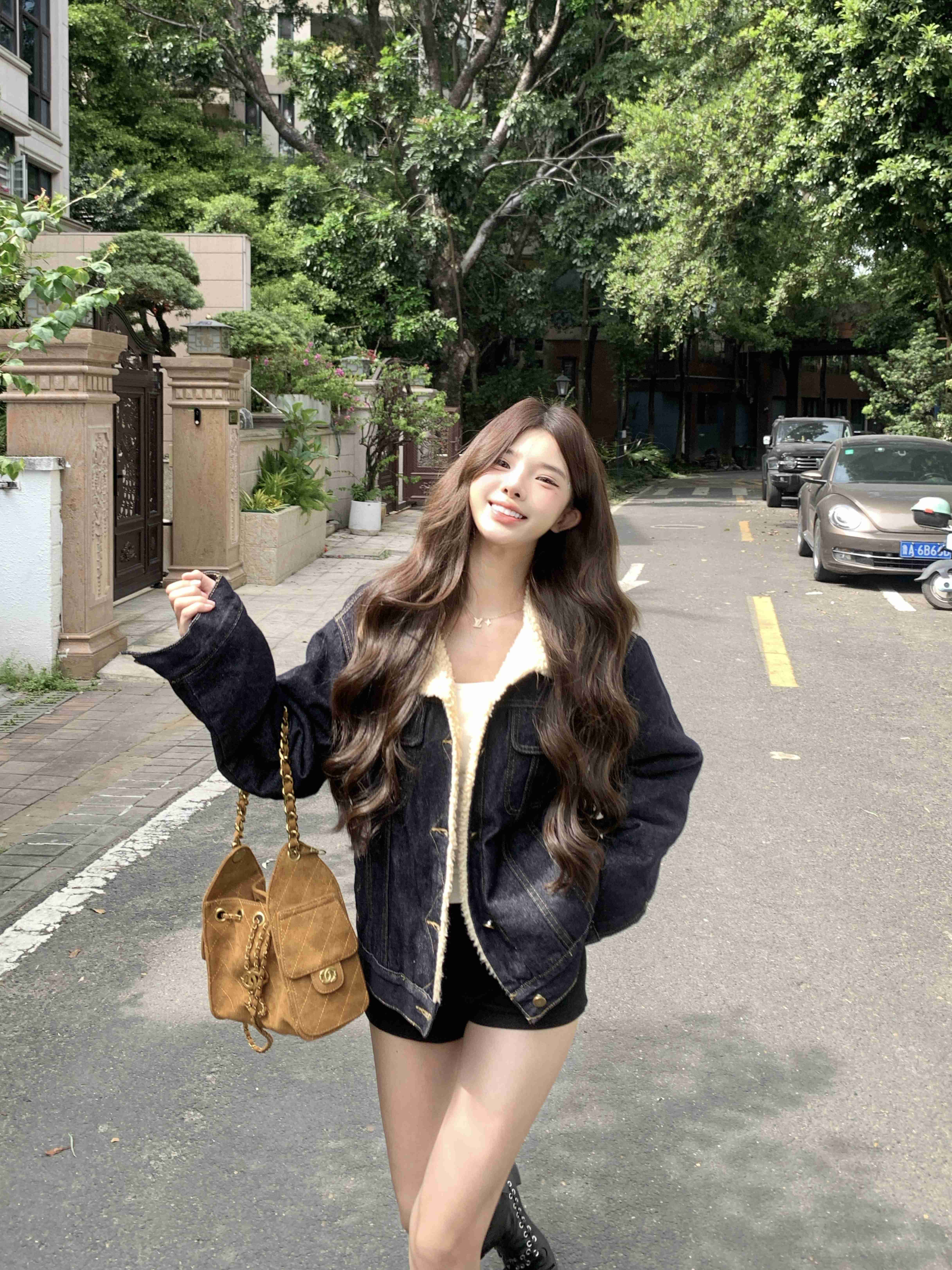 实拍 原色牛仔加绒牛仔外套明线女仿羊羔毛加厚保暖牛仔棉服