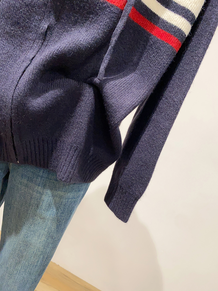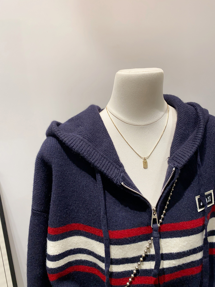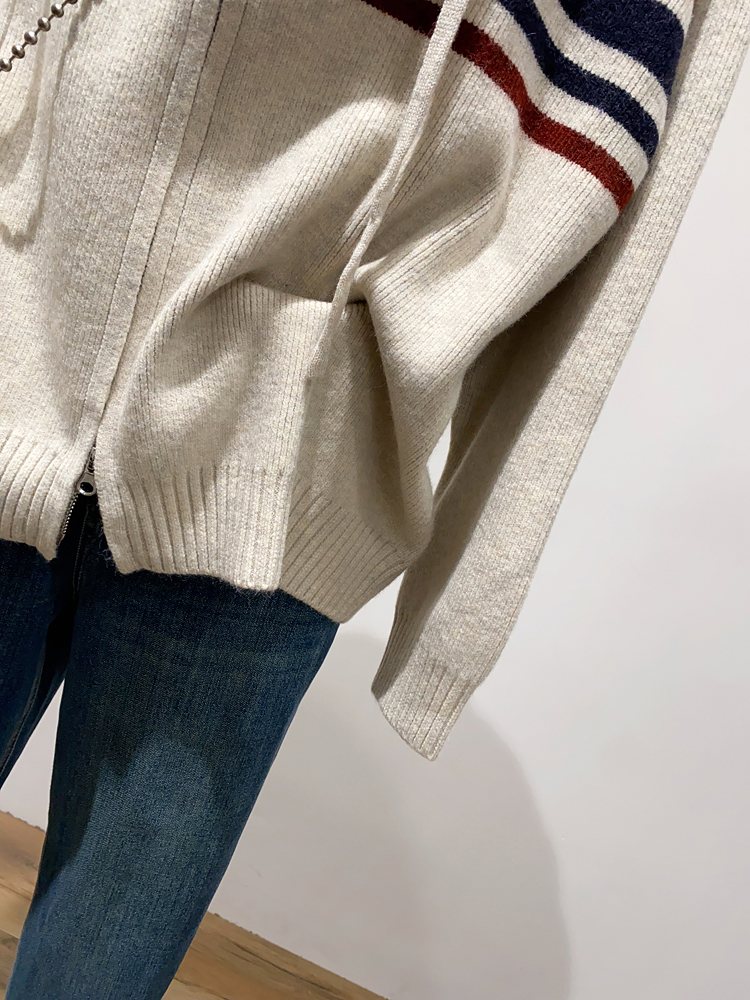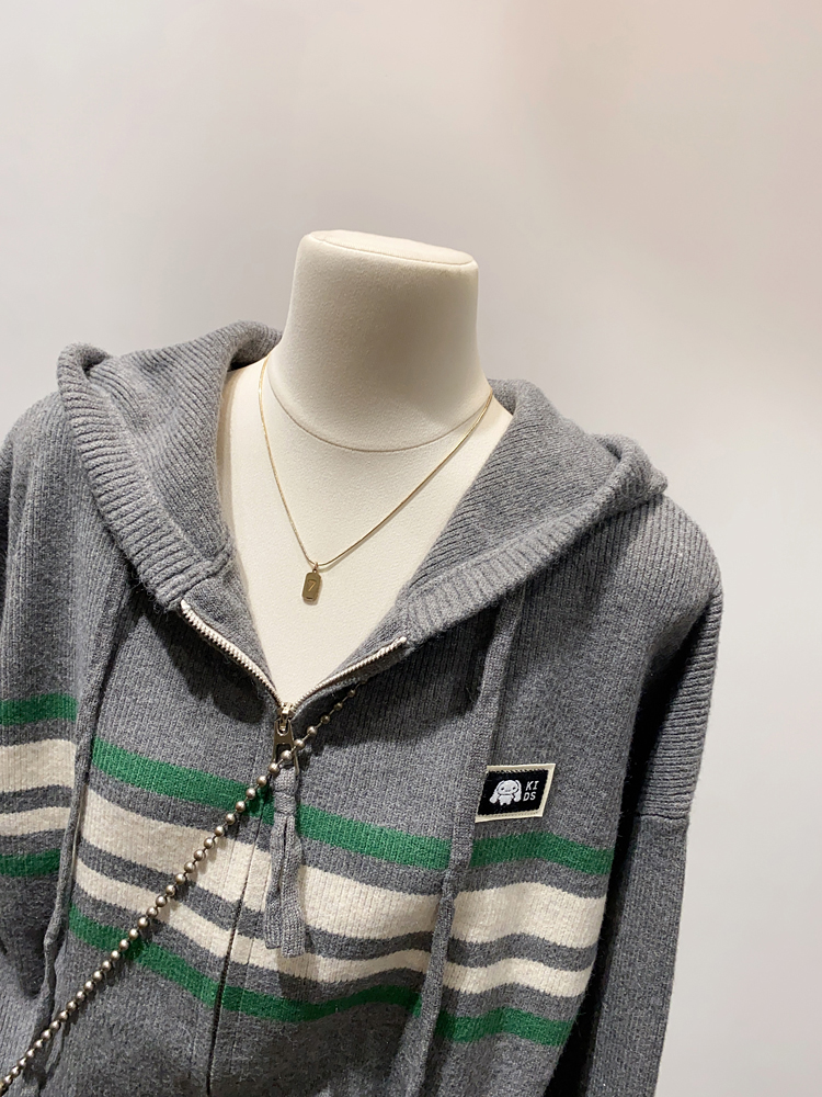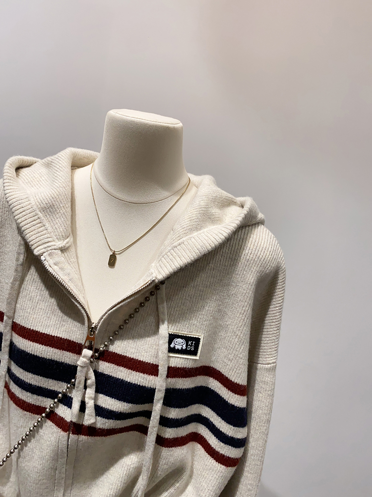 2025년 신상 슬림핏 한국 스타일 스트라이프 후드 니트 가디건 (여성용), 가을/겨울 디자인, 지퍼 포함, 두툼한 코트