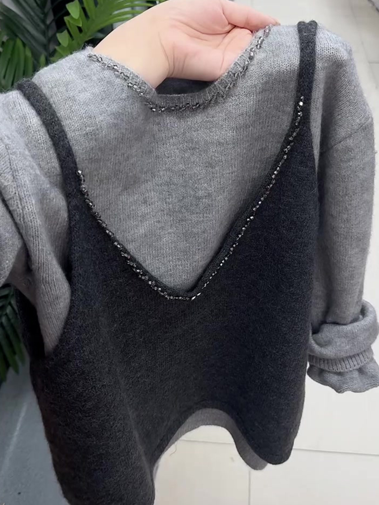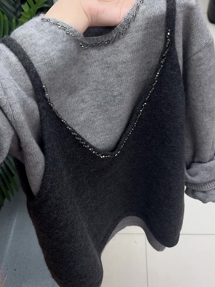 여성용 한국 스타일 니트 조끼와 긴팔 니트 상의 투피스 세트, 2025년 가을 신상, 트렌디하고 활용도 높은 귀여운 상의