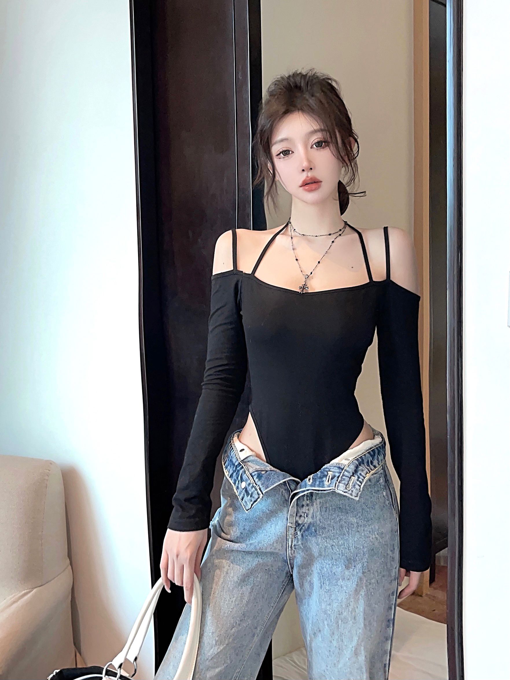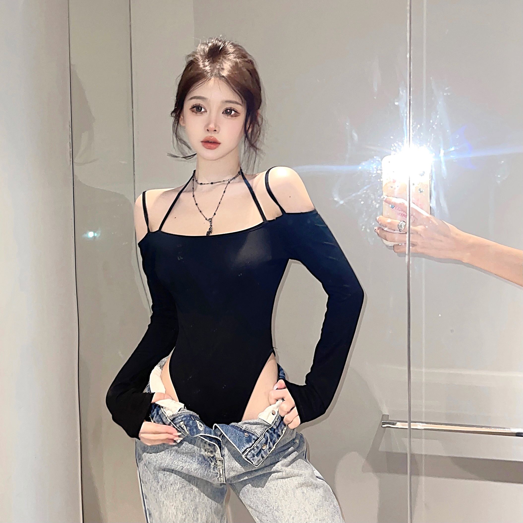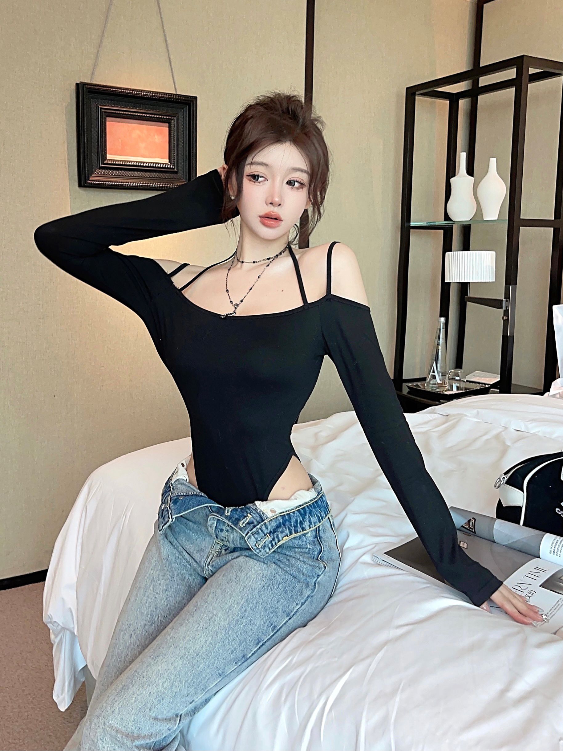 여성용 모달 40수, 레이온 260g 긴팔 캐미솔 바디수트, 초가을 오프숄더 섹시 탑