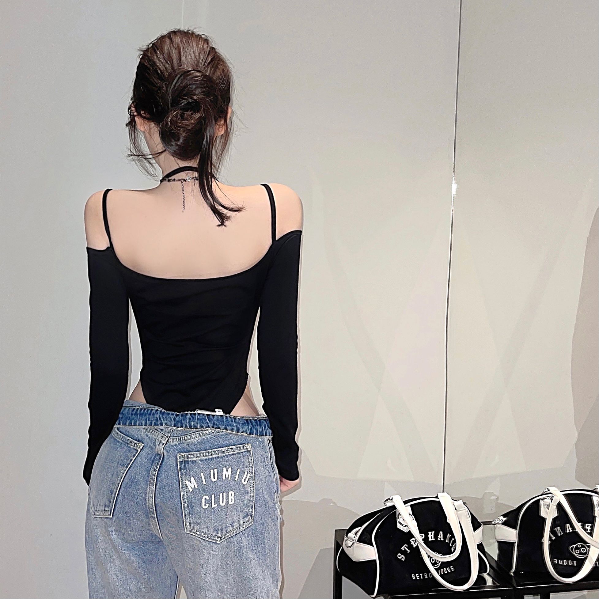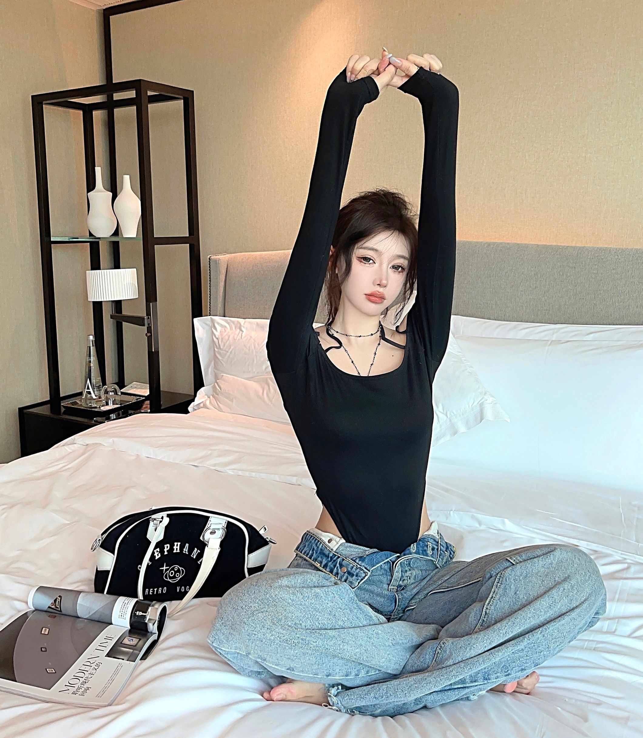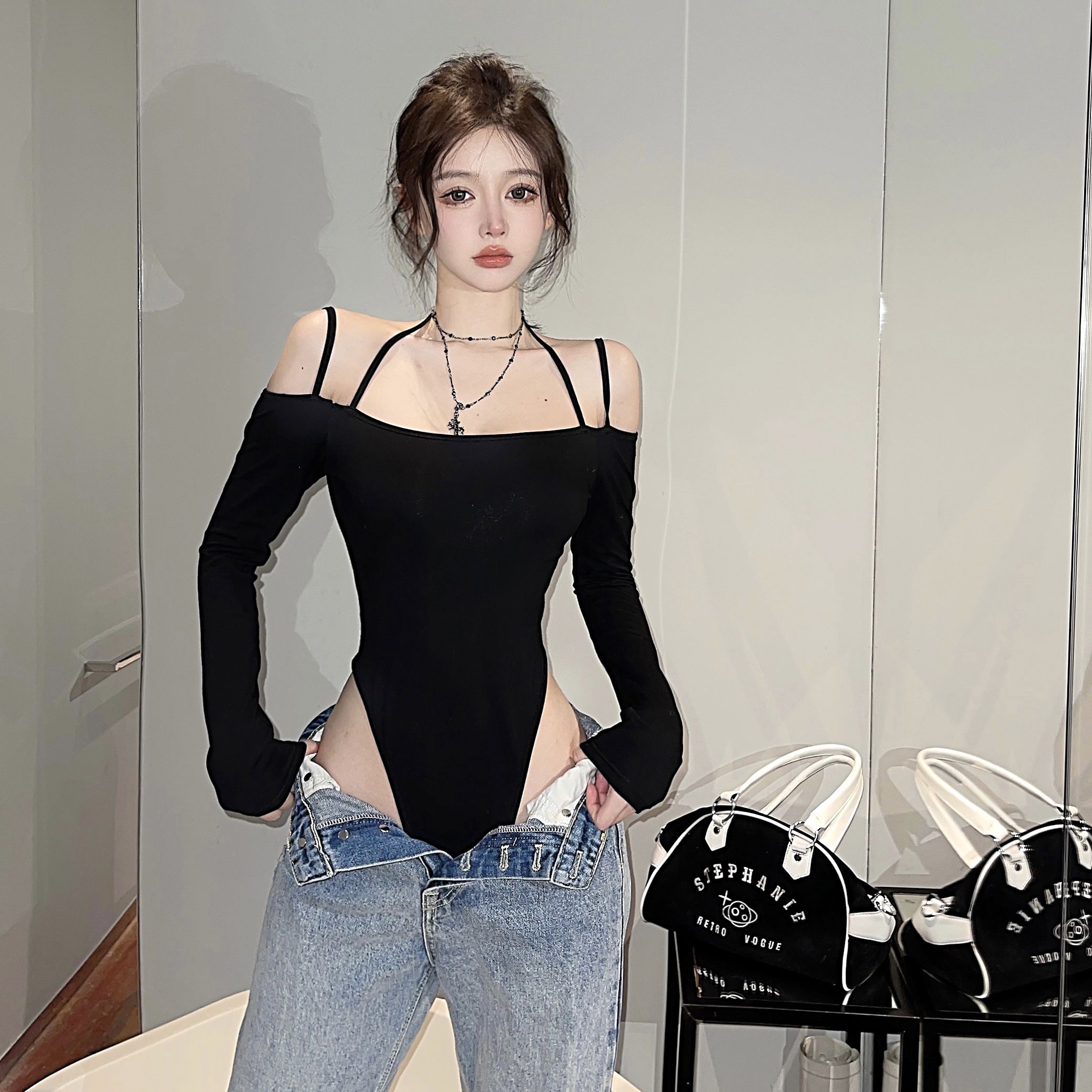 여성용 모달 40수, 레이온 260g 긴팔 캐미솔 바디수트, 초가을 오프숄더 섹시 탑